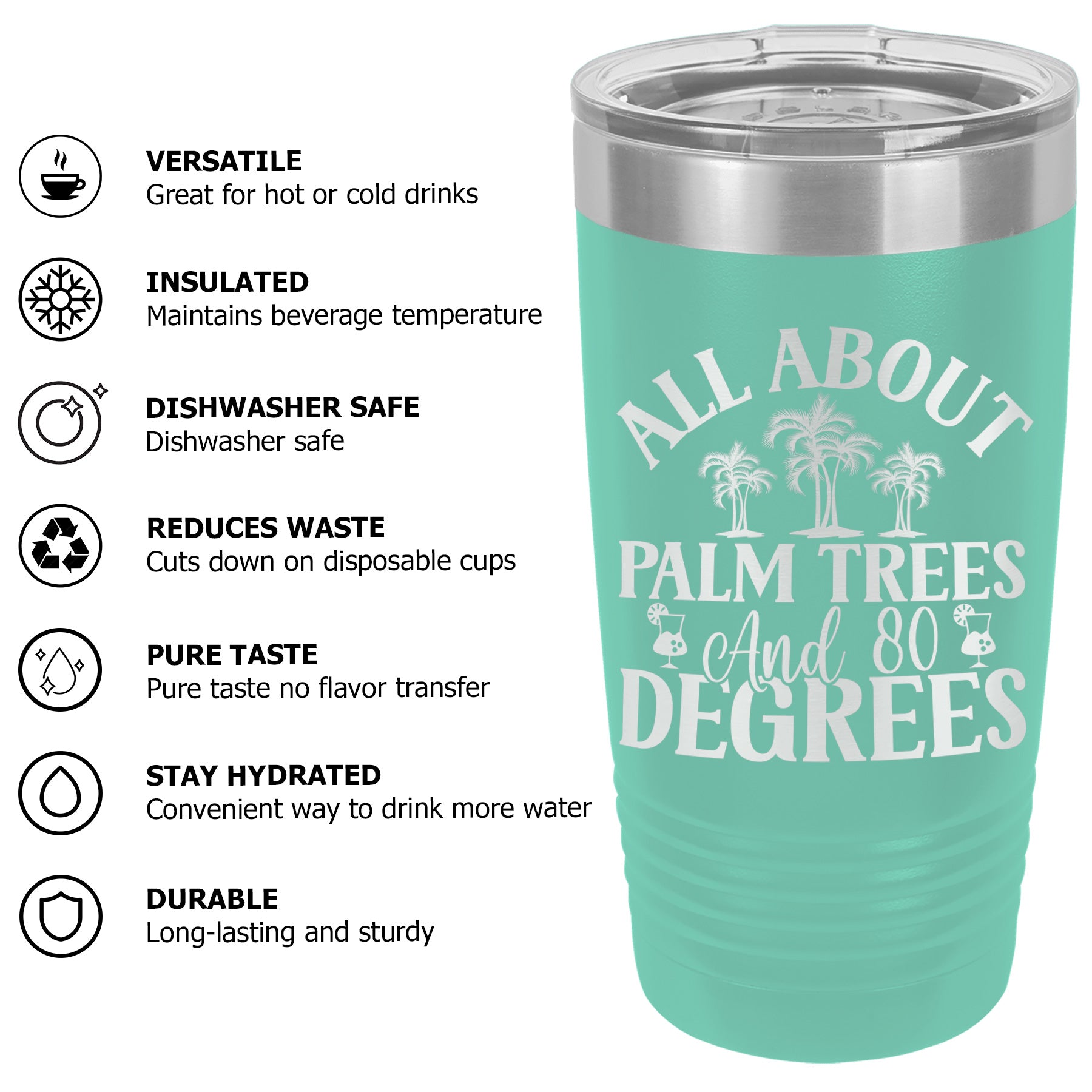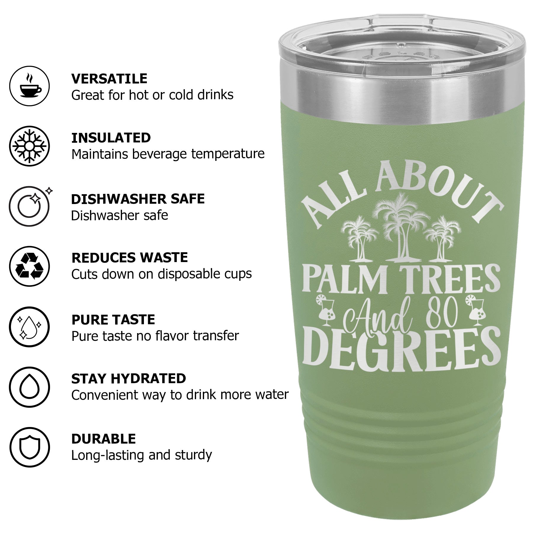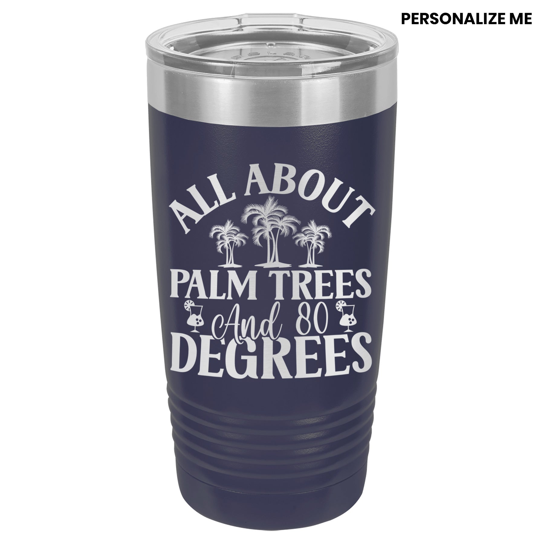 All About Palm Trees 80 Degrees Beach Vibe Tumbler Cup Mug