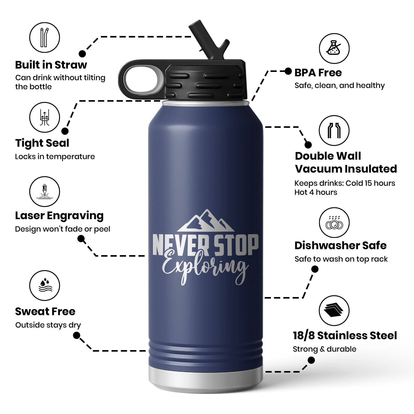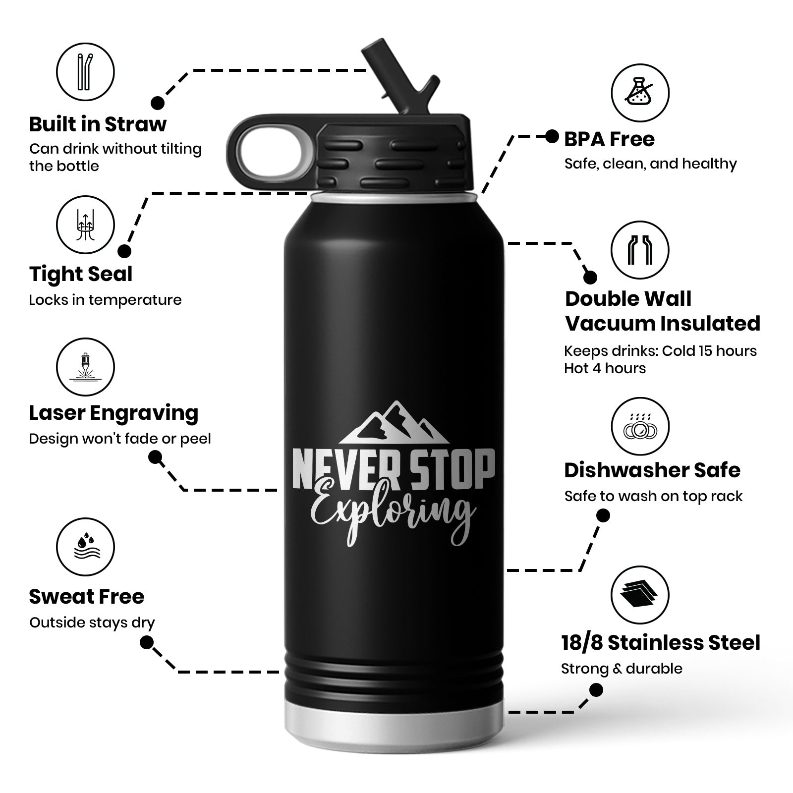 Don't Ever stop Exploring Mountains Water Bottle Mug