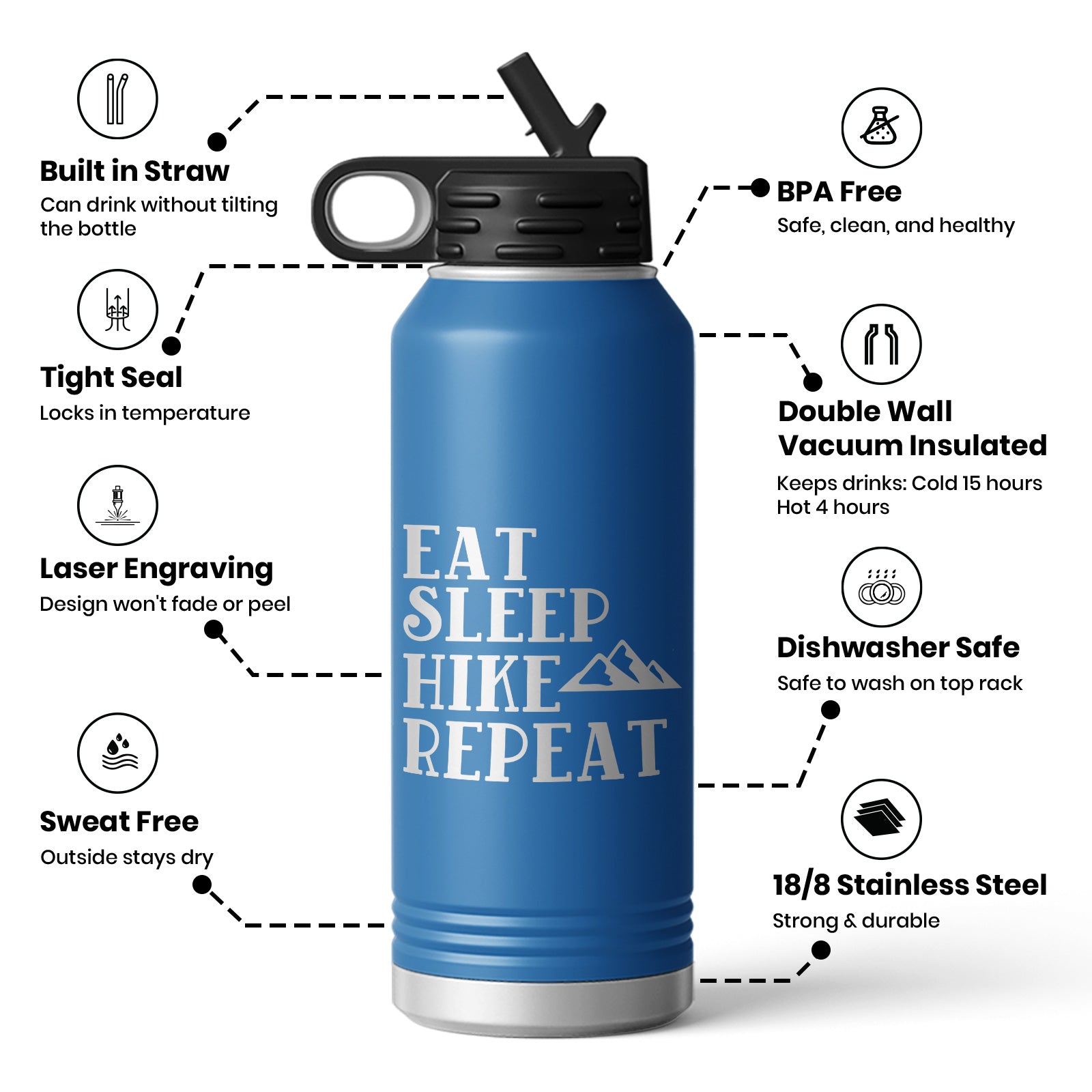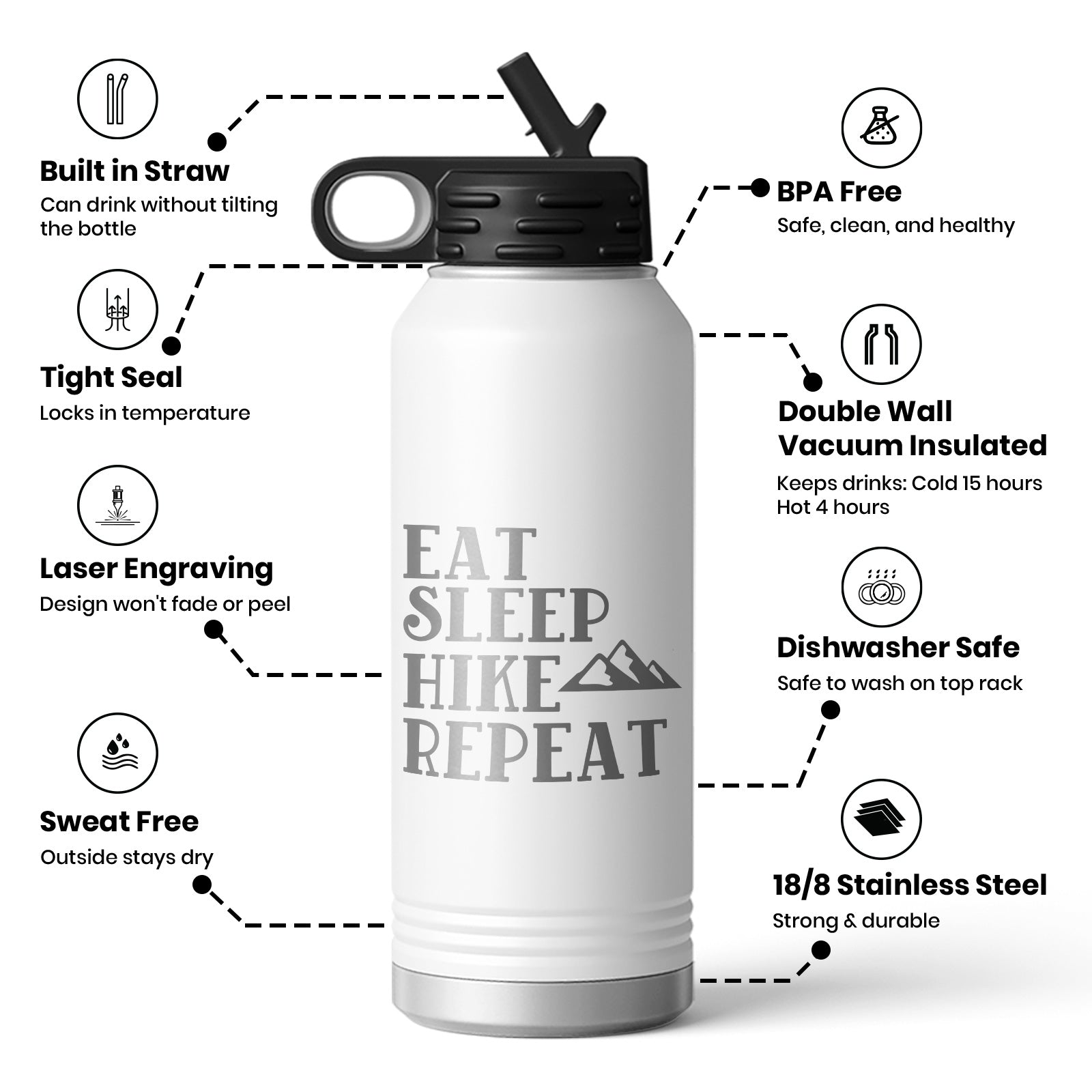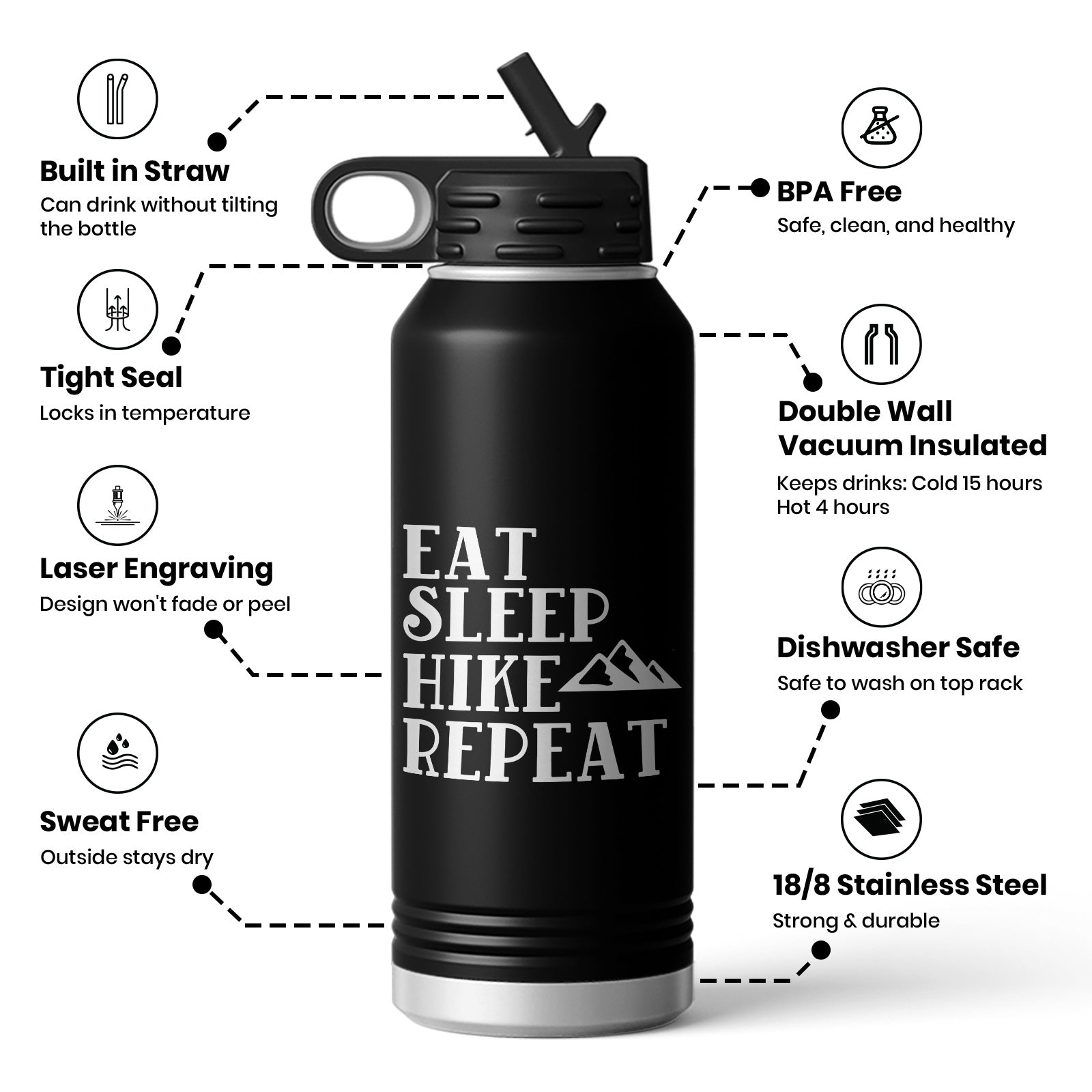 Eat Sleep Hike Repeat Life Water Bottle Mug $35.99