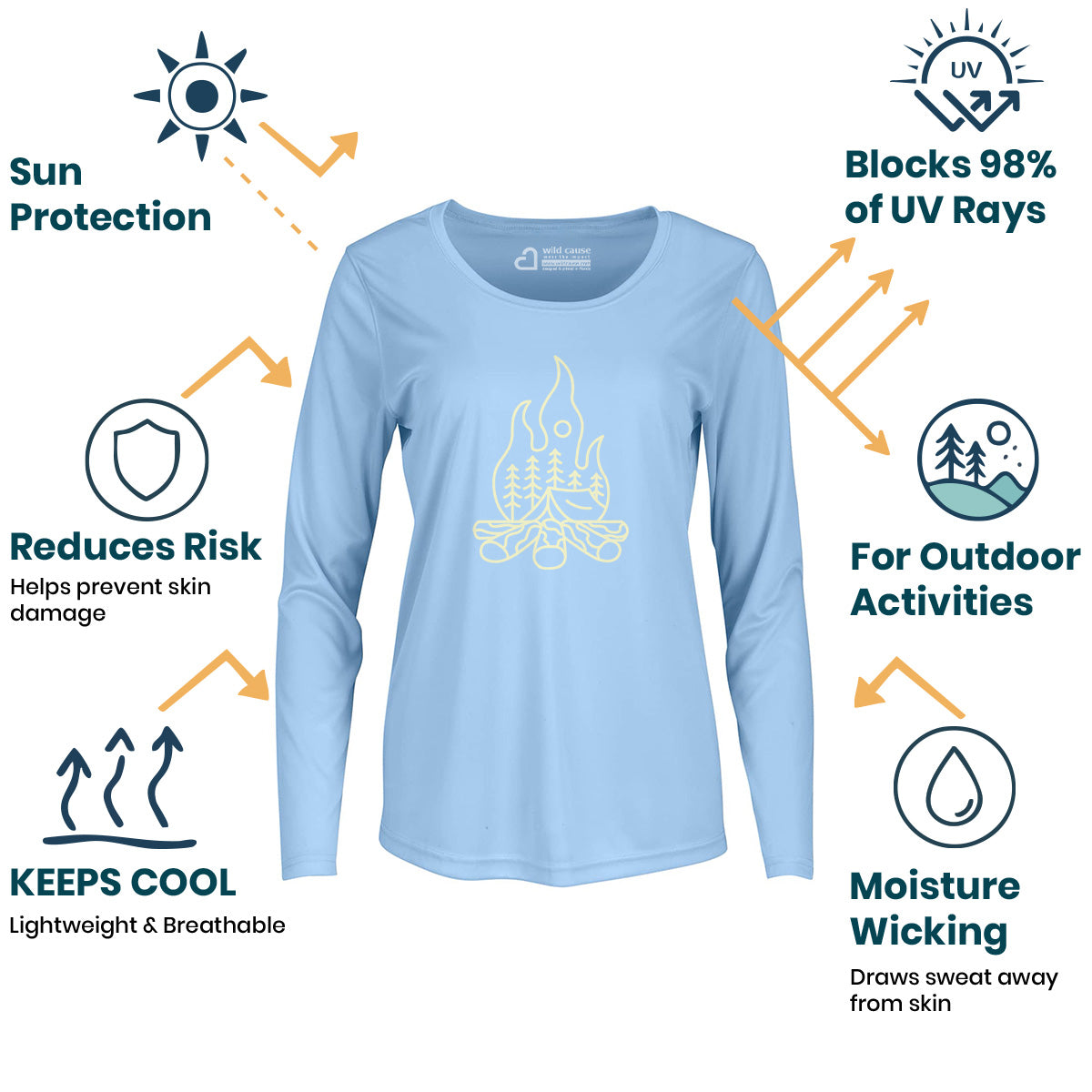 Cozy-Breeze Night Campfire Camping Vibes Women Sun Protection UV Performance Shirt UPF 50+