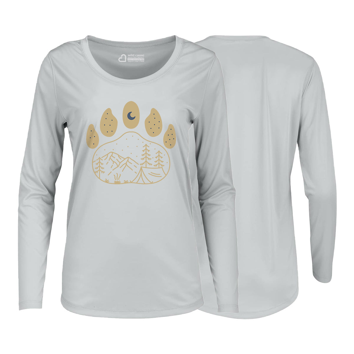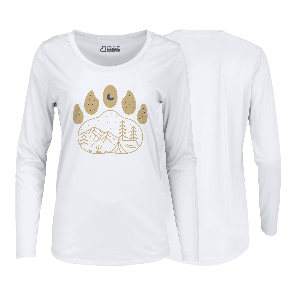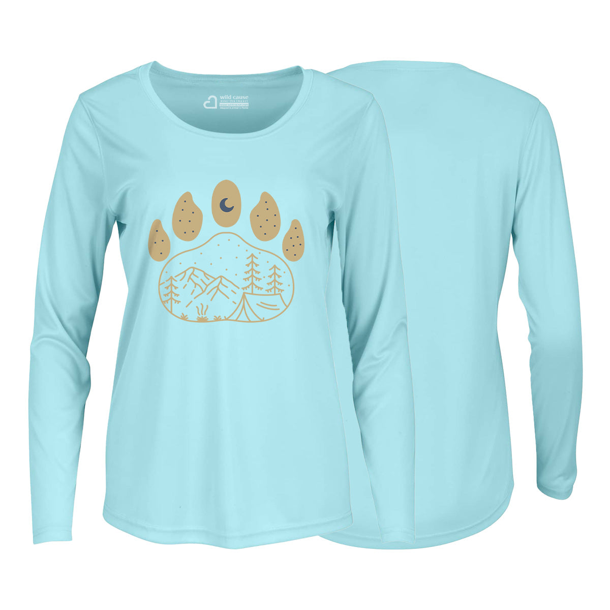 Camp wild bear footprints Women Sun Protection UV Performance Shirt UPF 50+ is ideal for forest exploration trips and camp and discover wild creatures. Perfect for forest night adventures and nature campfire adventures. Stay comfortable during adventures by the campfire.