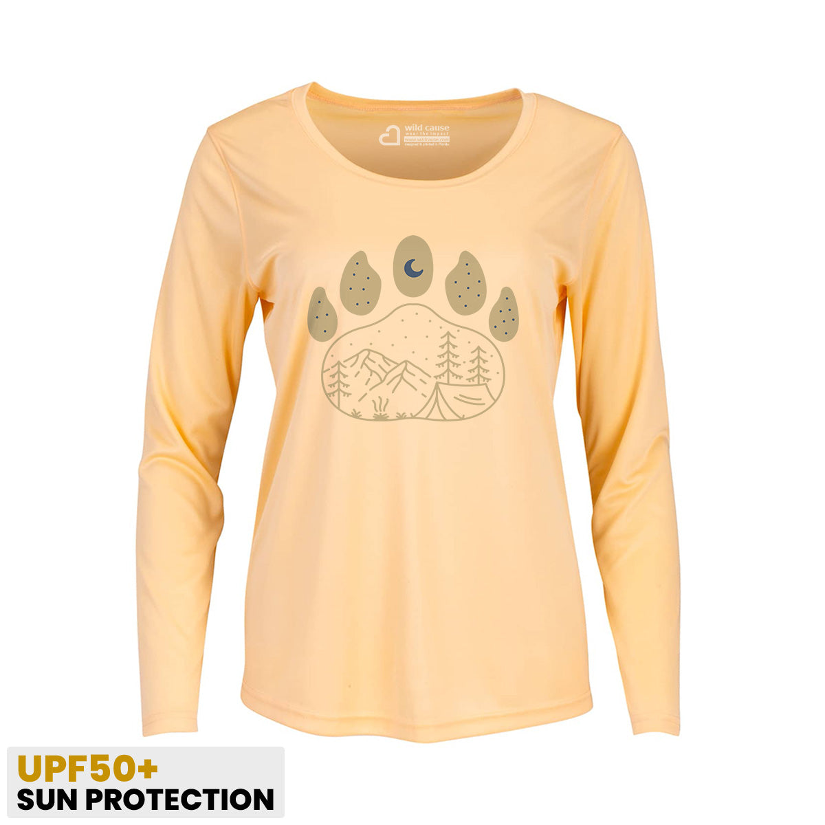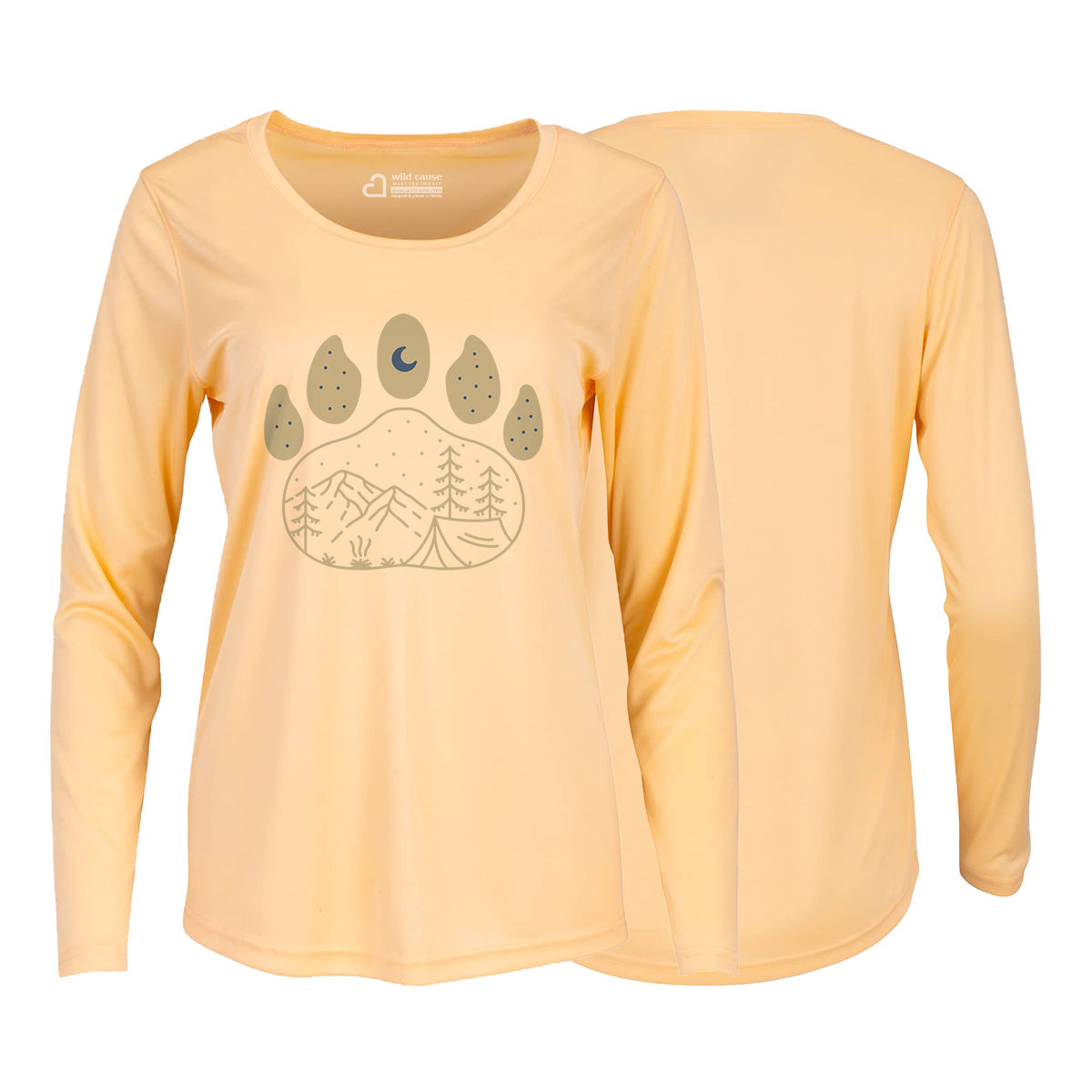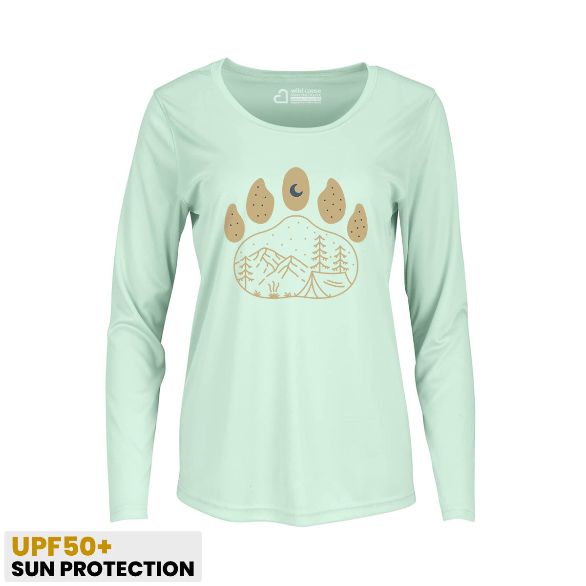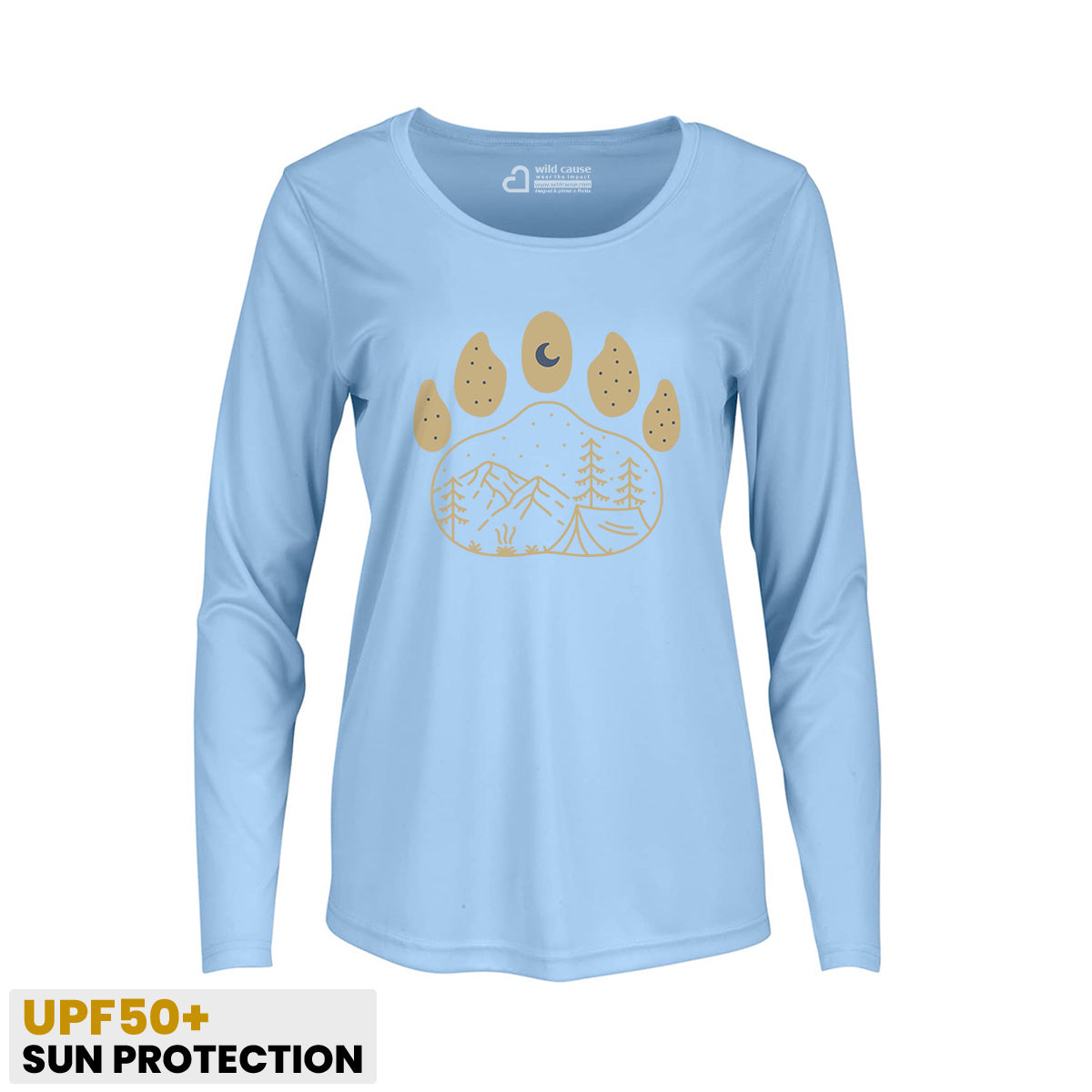 Camp wild bear footprints Women Sun Protection UV Performance Shirt UPF 50+ is ideal for forest exploration trips and camp and discover wild creatures. Perfect for forest night adventures and nature campfire adventures. Stay comfortable during adventures by the campfire.