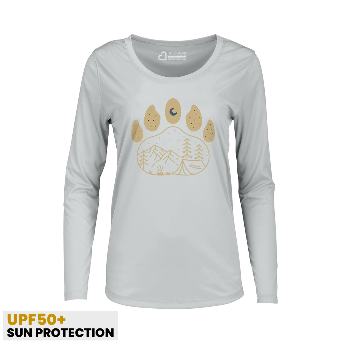 Forest Camping Wild Bear Footprint Fun Women Sun Protection UV Performance Shirt UPF 50+