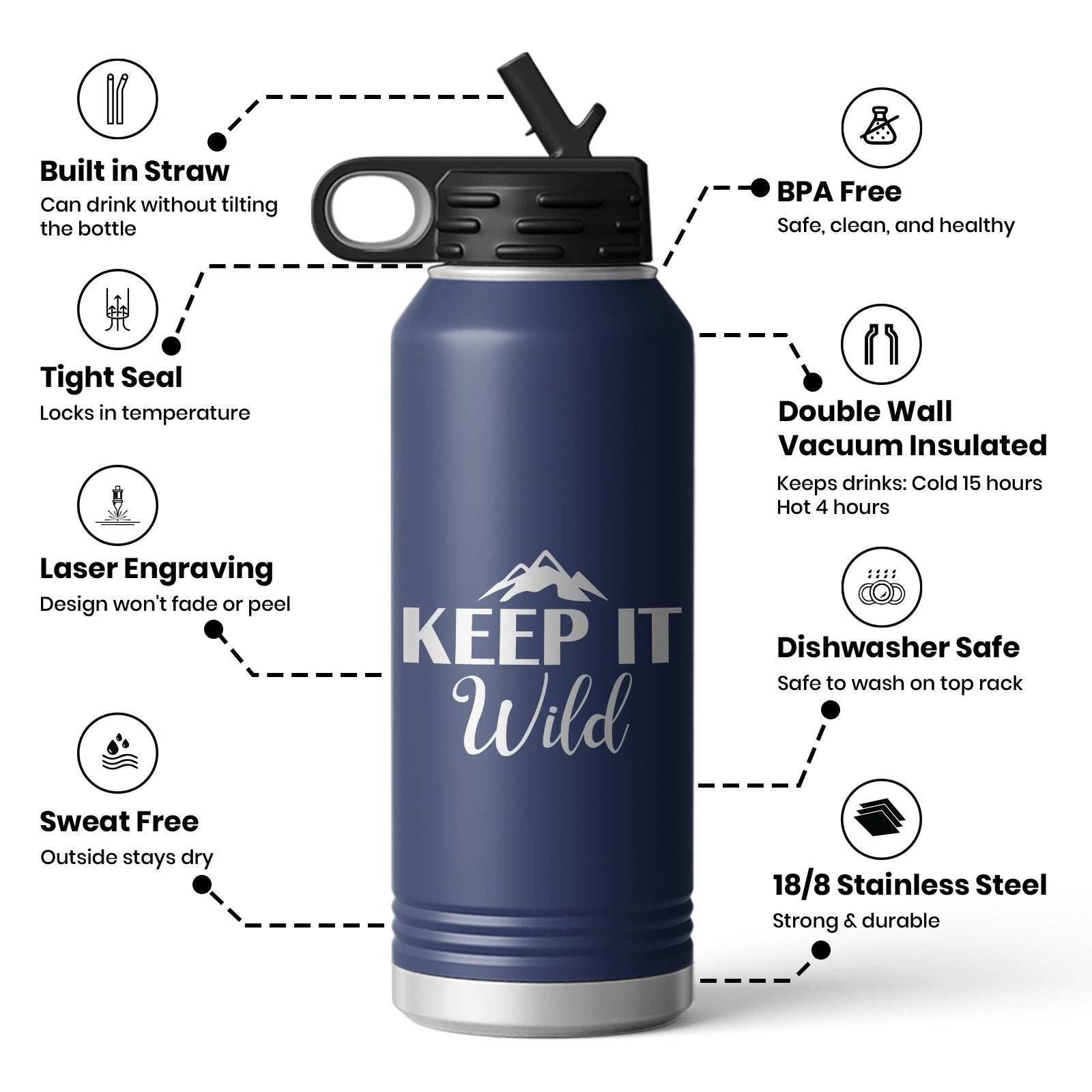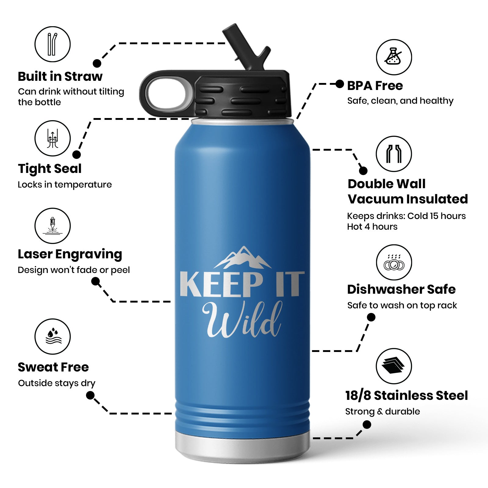 The Wild Adventure water bottle is a must-have for nature explorers and wild fest enthusiasts. Stay wild spirit with this durable bottle, perfect for your outdoor lifestyle. Explore nature with every sip.