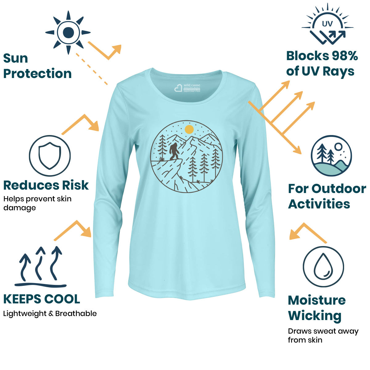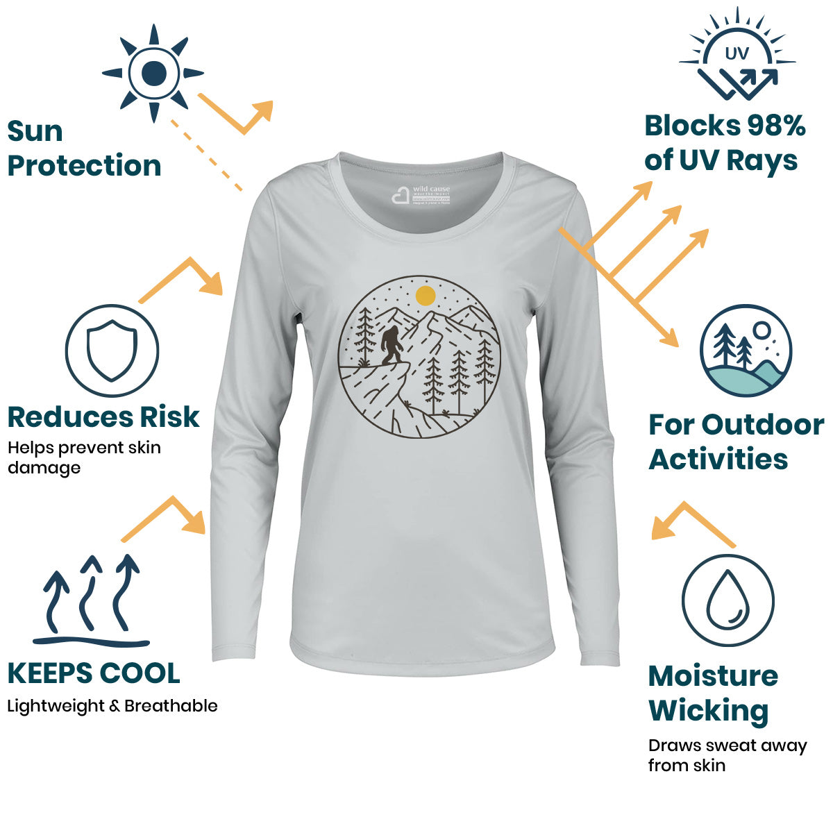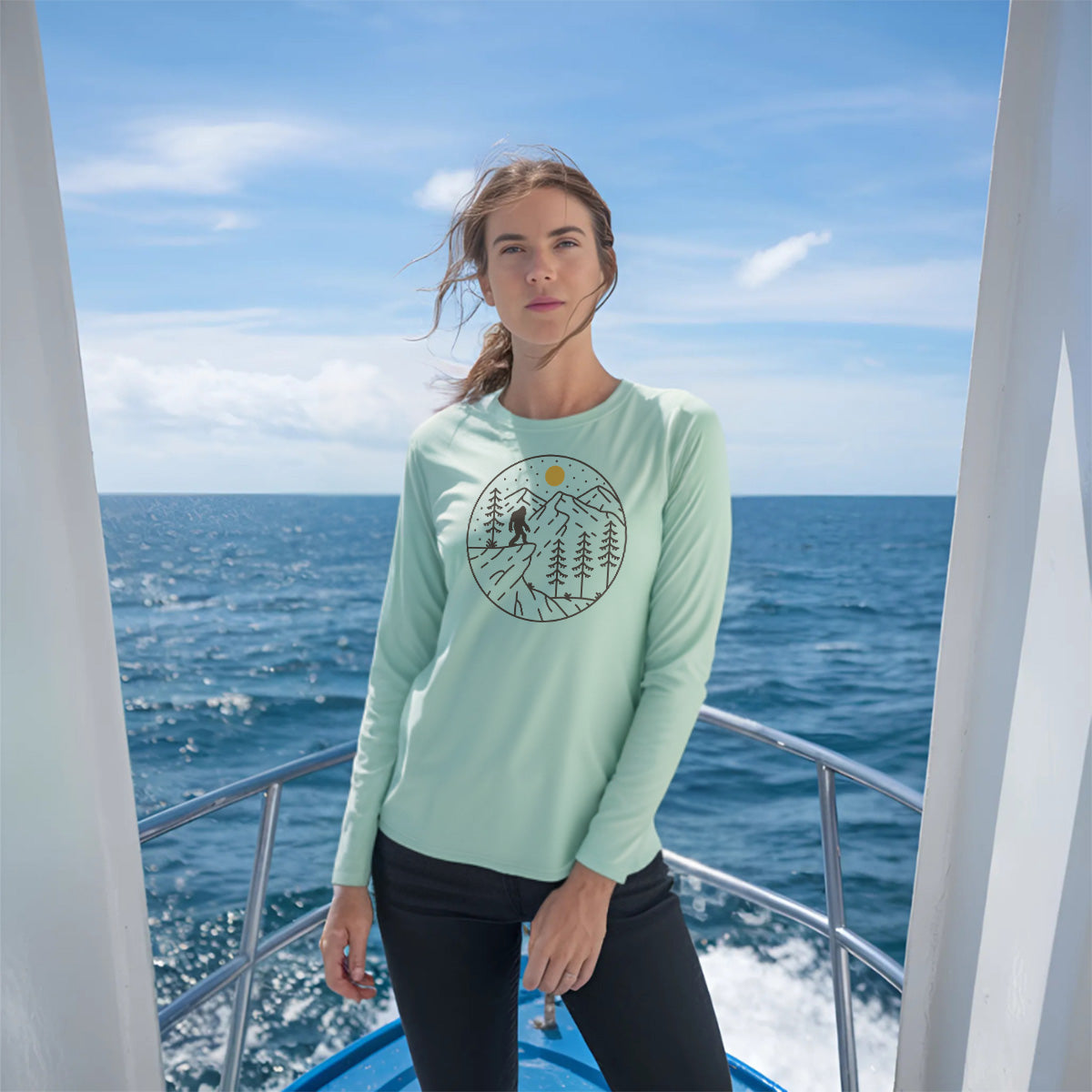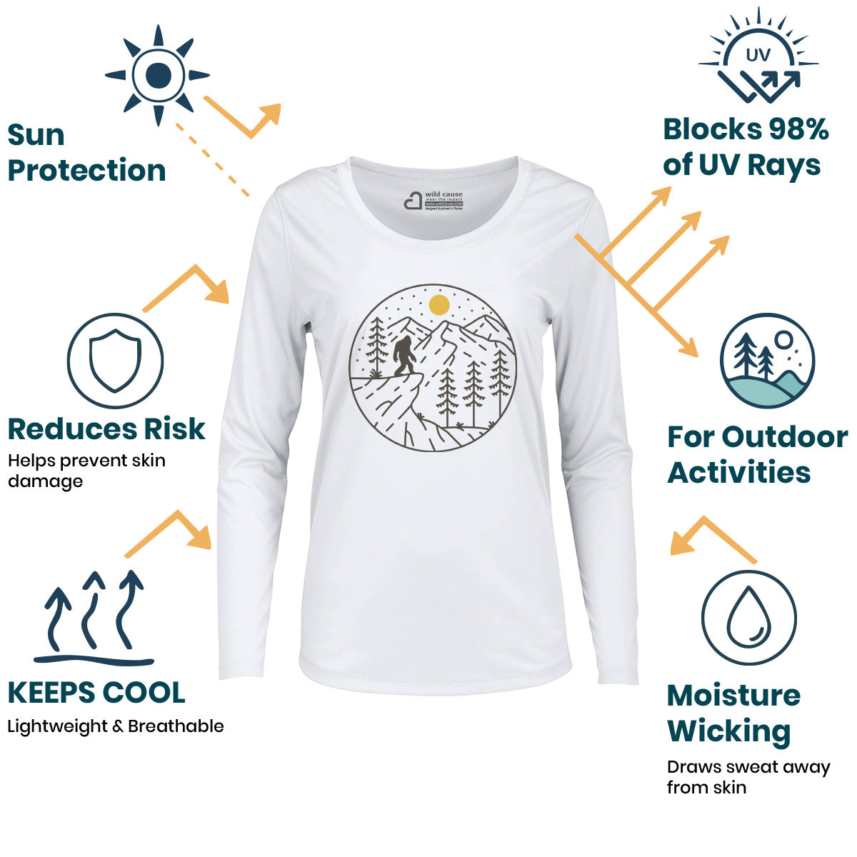 Minimalist Bigfoot Hunt Adventure Trekking Women Sun Protection UV Performance Shirt UPF 50+