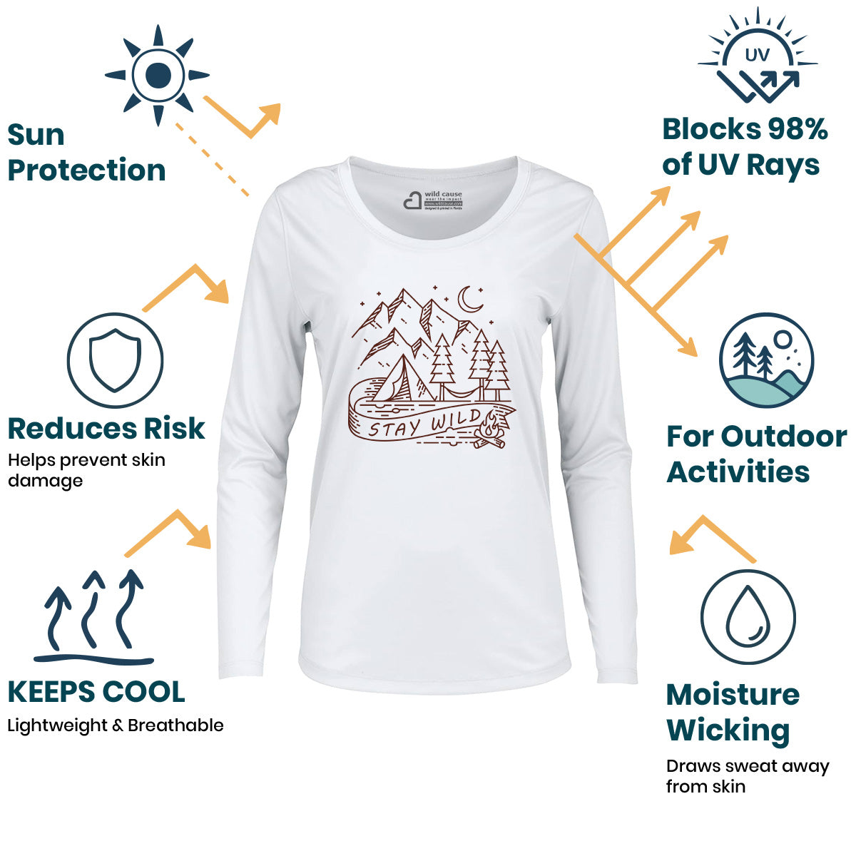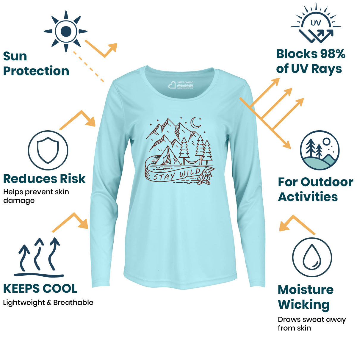 Stay Wild Nature Camping Fun Escapes Women Sun Protection UV Performance Shirt UPF 50+