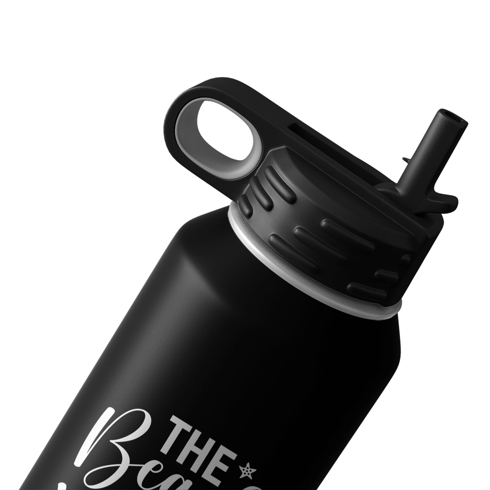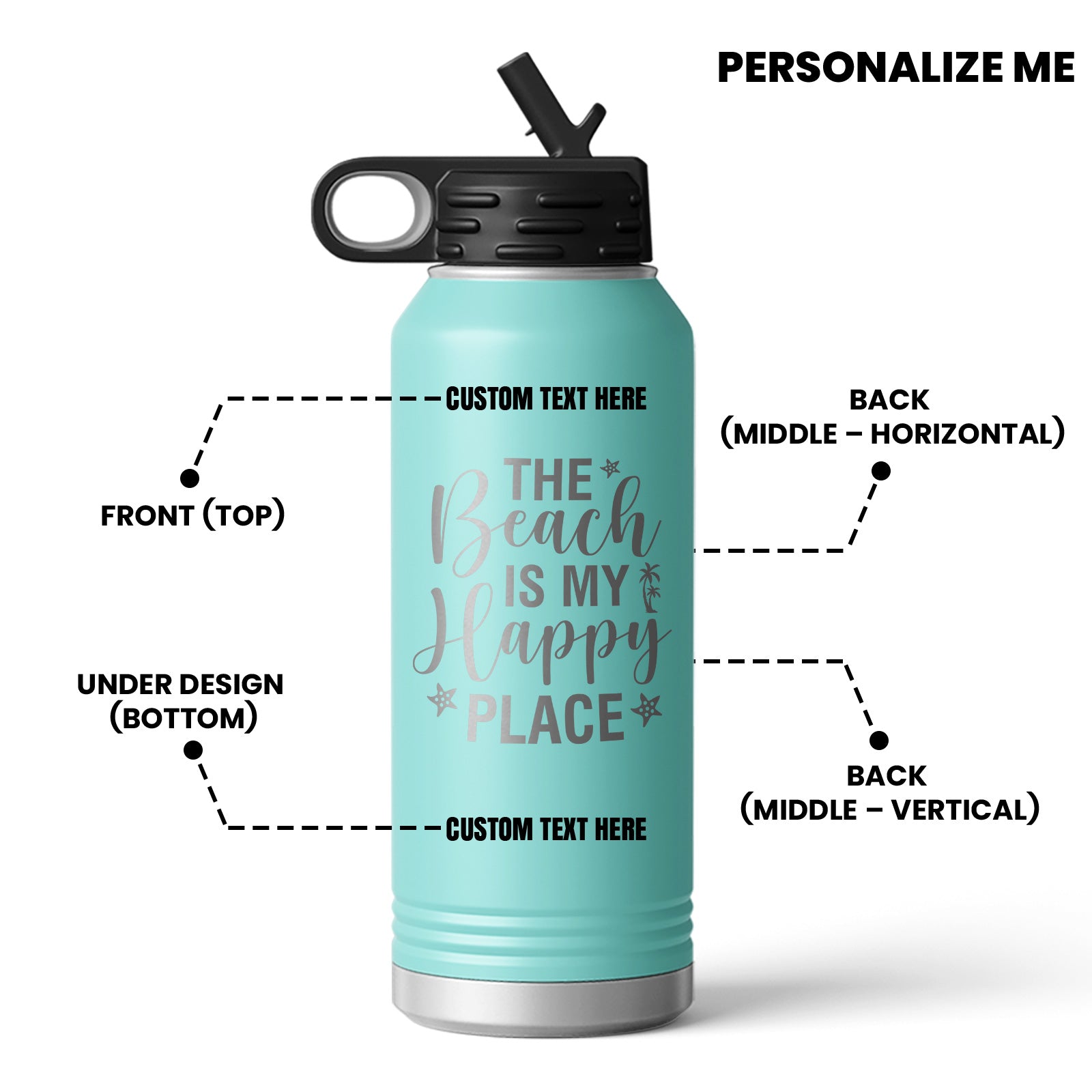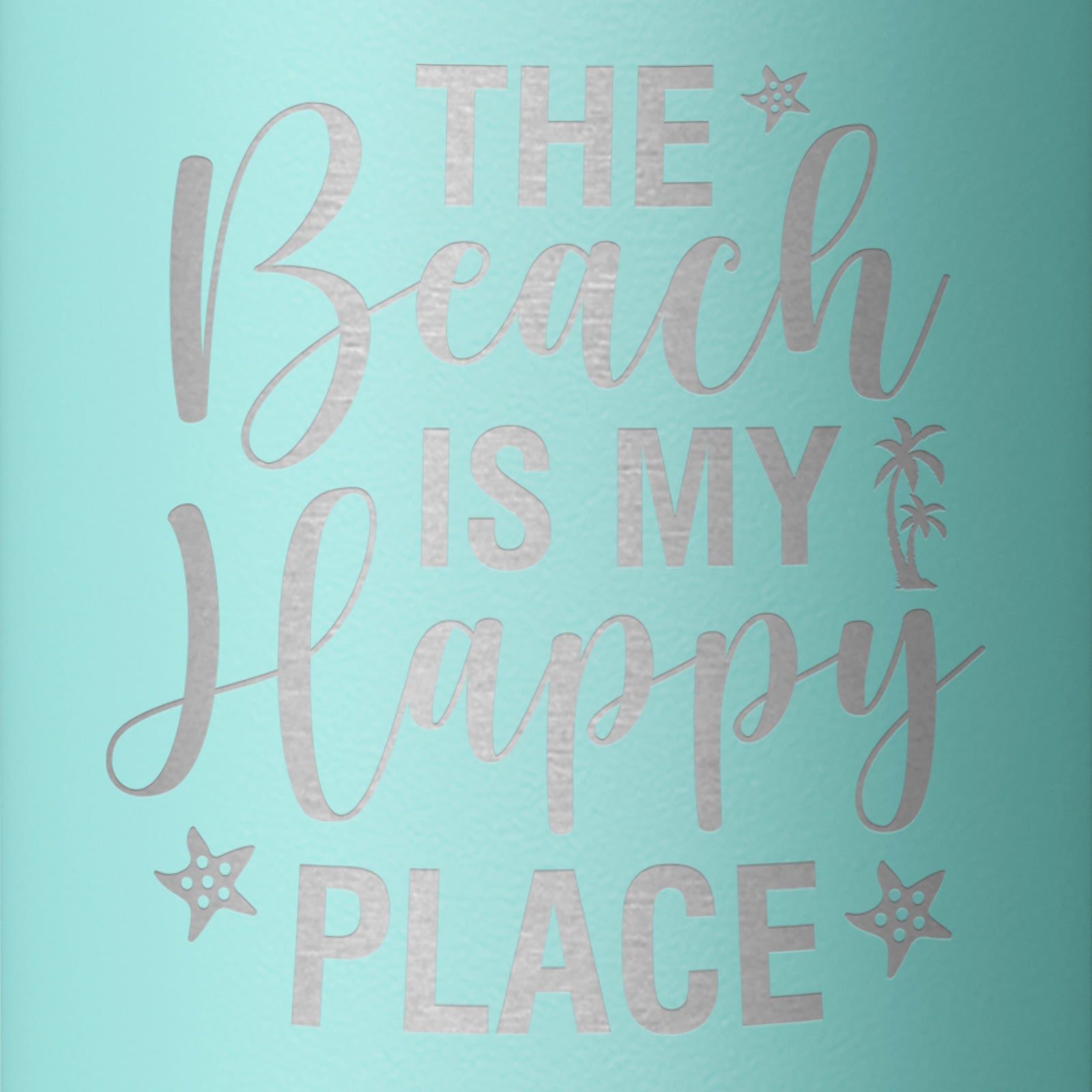 Stay hydrated with the My happy place is the beach water bottle, perfect for beach vibes only. This durable bottle features a design that captures happy beach days and my beachside happy place. Take it with you for endless summer feel and beach happiness.