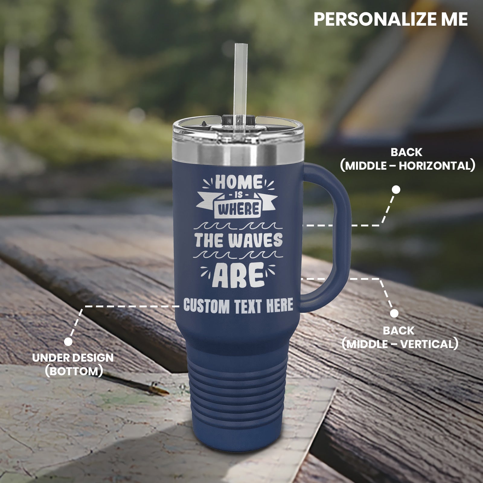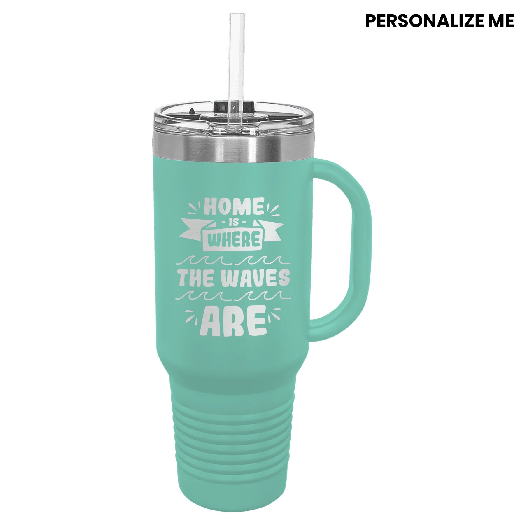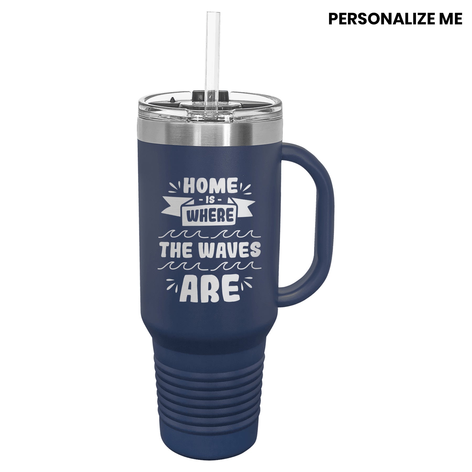 Beach Vacation Home Is Where The Waves Are Tumbler with Handle