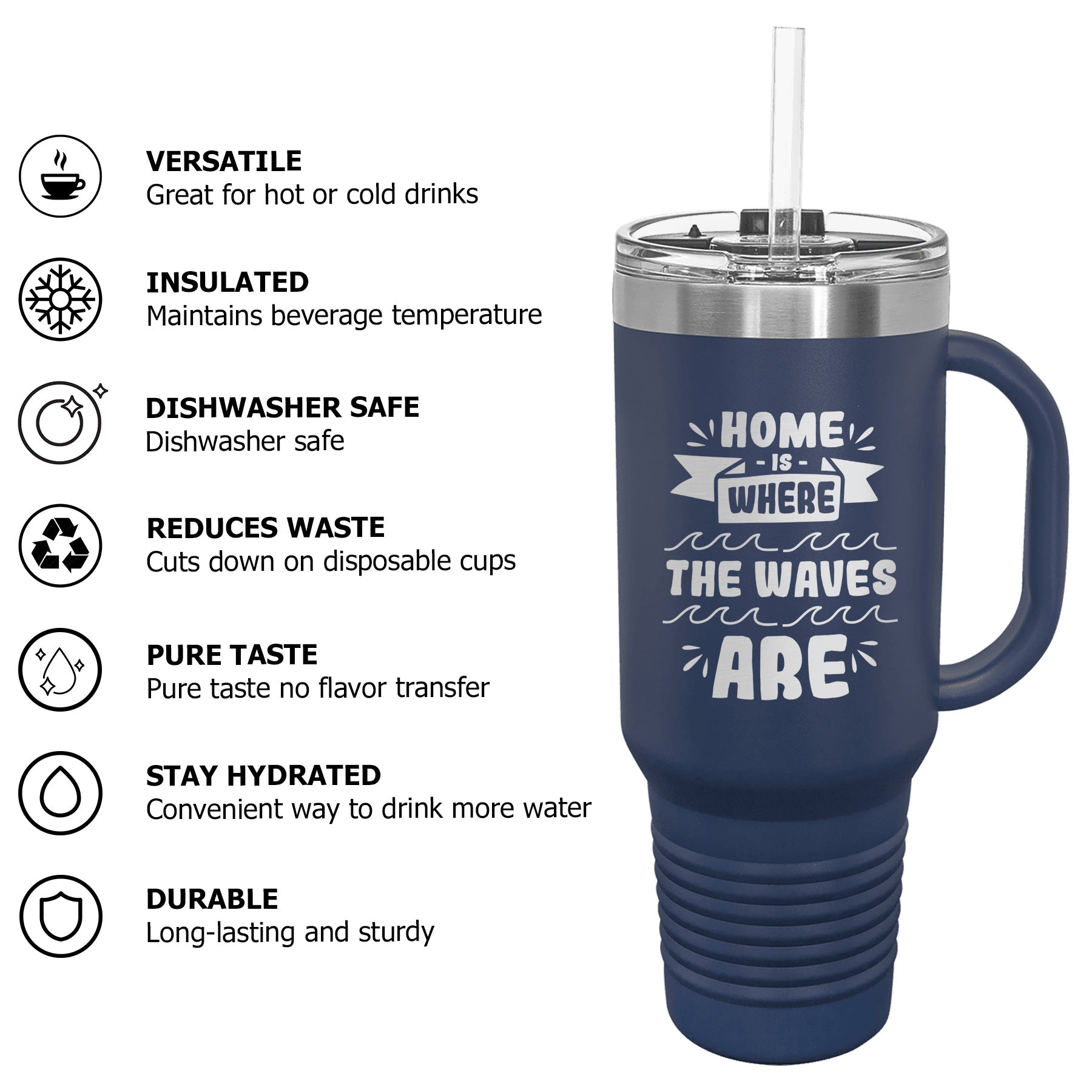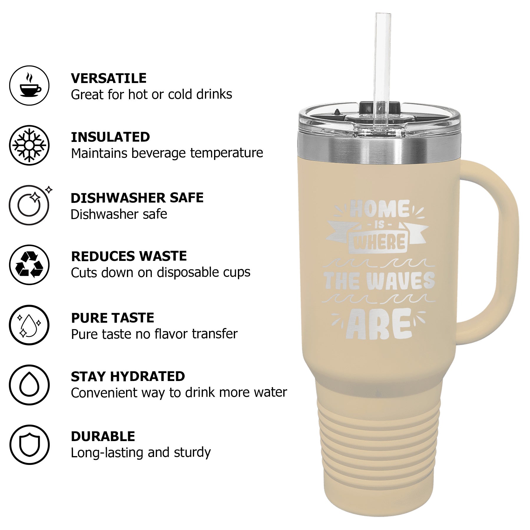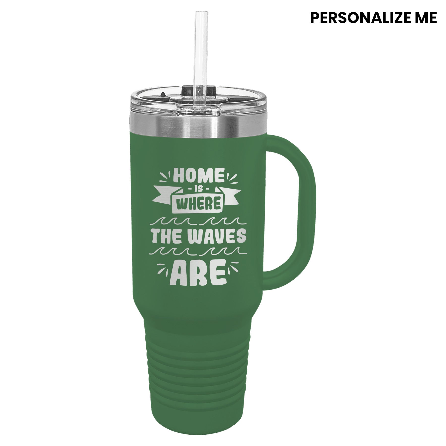 Beach Vacation Home Is Where The Waves Are Tumbler with Handle