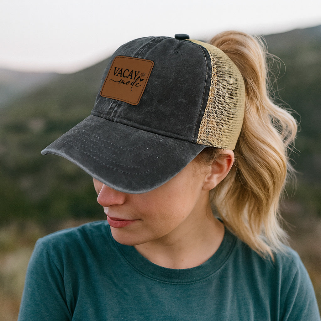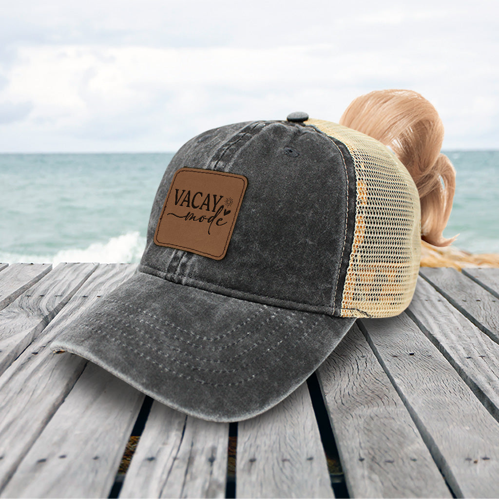 Get ready to switch to vacay mode with the beach fun Ponytail Cap Hat. Embrace vacation vibes and live free with this stylish accessory. Perfect for beach life forever, it exudes vacay vibes and sunshine all day long. Stay forever in vacay mode with this must-have hat.