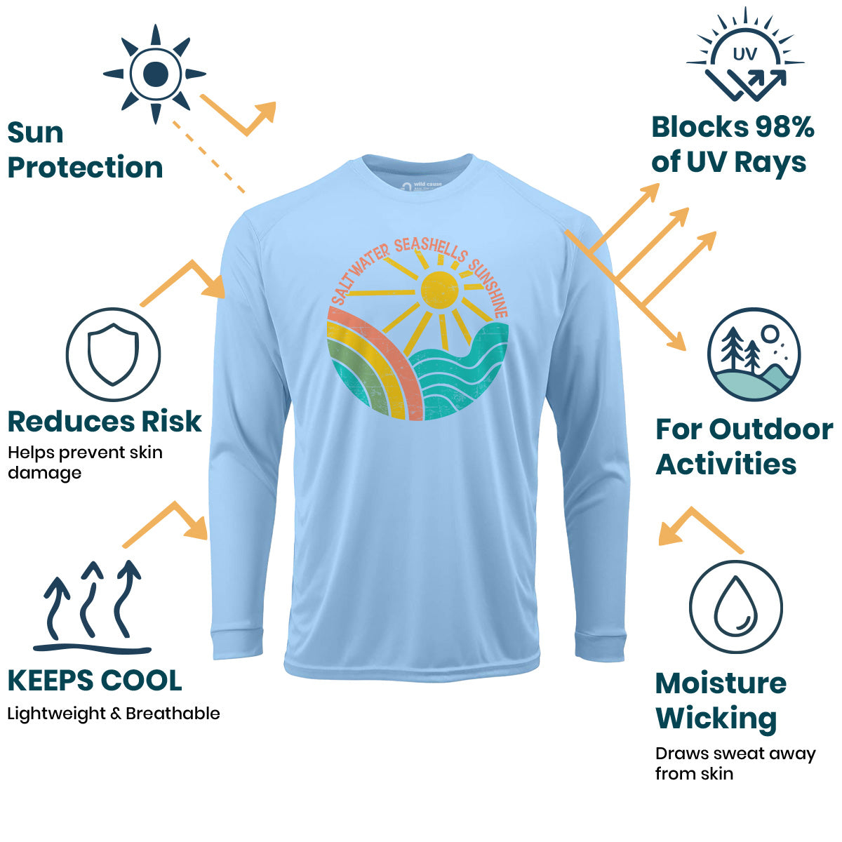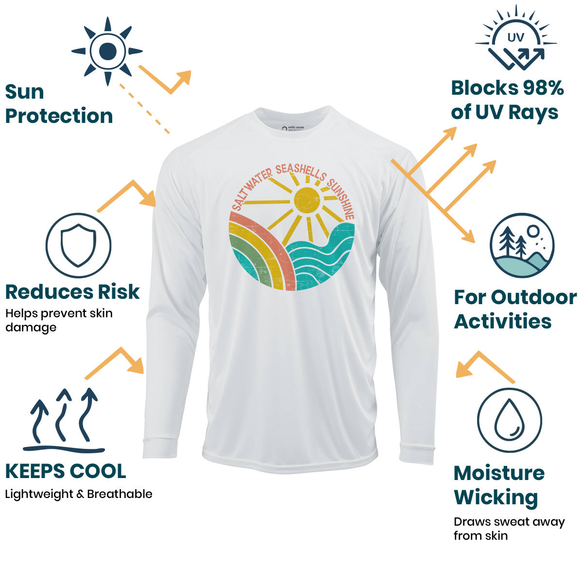 Stay cool, protected, and comfortable with this lightweight, moisture-wicking long-sleeve sun shirt. No more scratches, sunburns, or irritated skin. Made from 100% microfiber performance polyester, it provides UPF 50+ sun protection, keeping you safe from harmful UV rays during outdoor adventures. With moisture-wicking and anti-microbial properties, this shirt helps you stay dry and fresh all day.