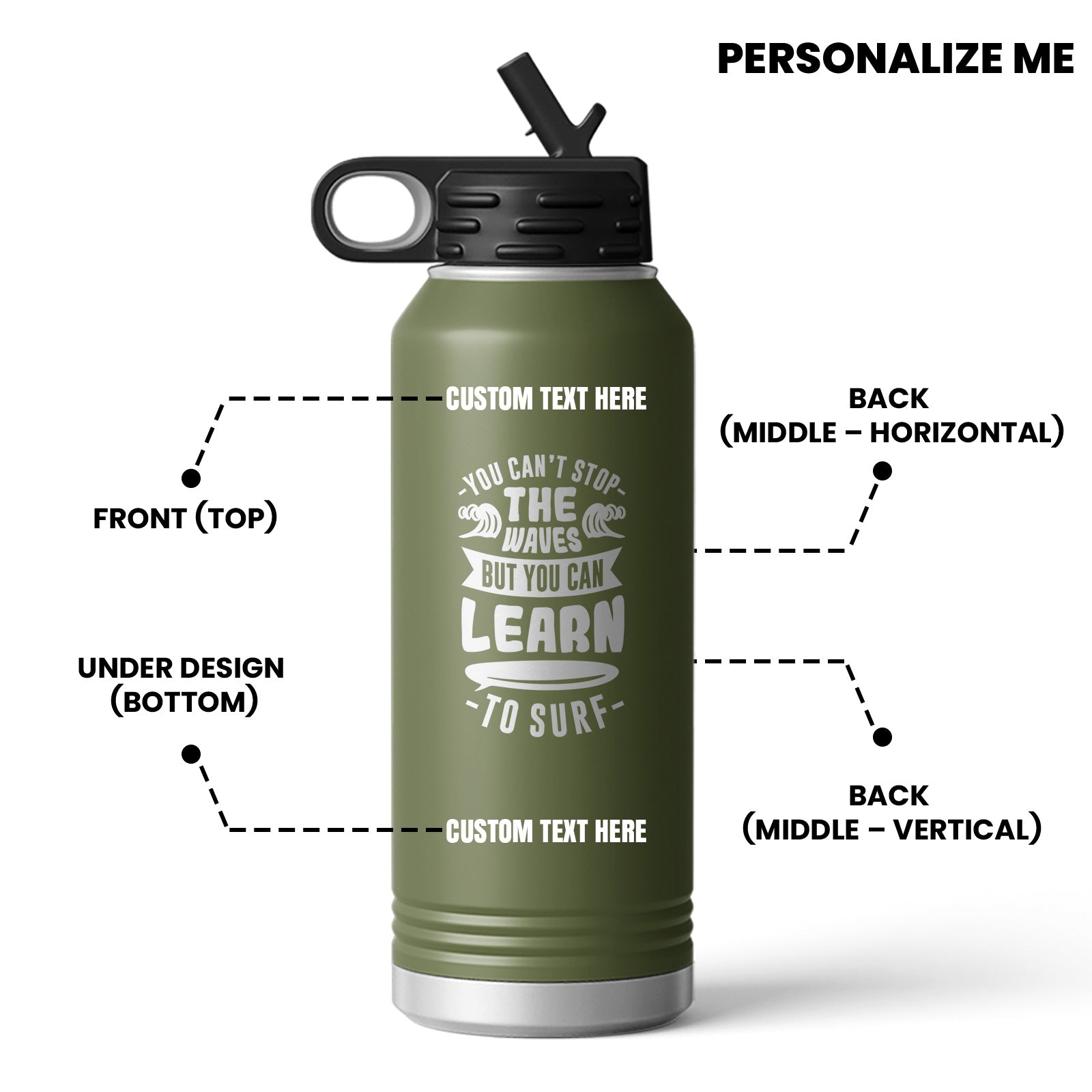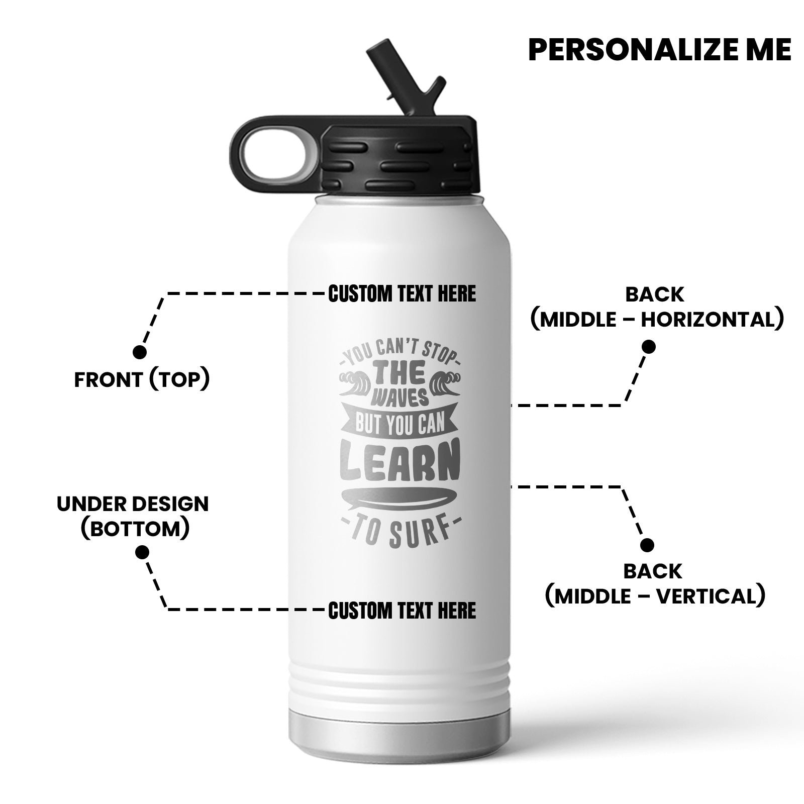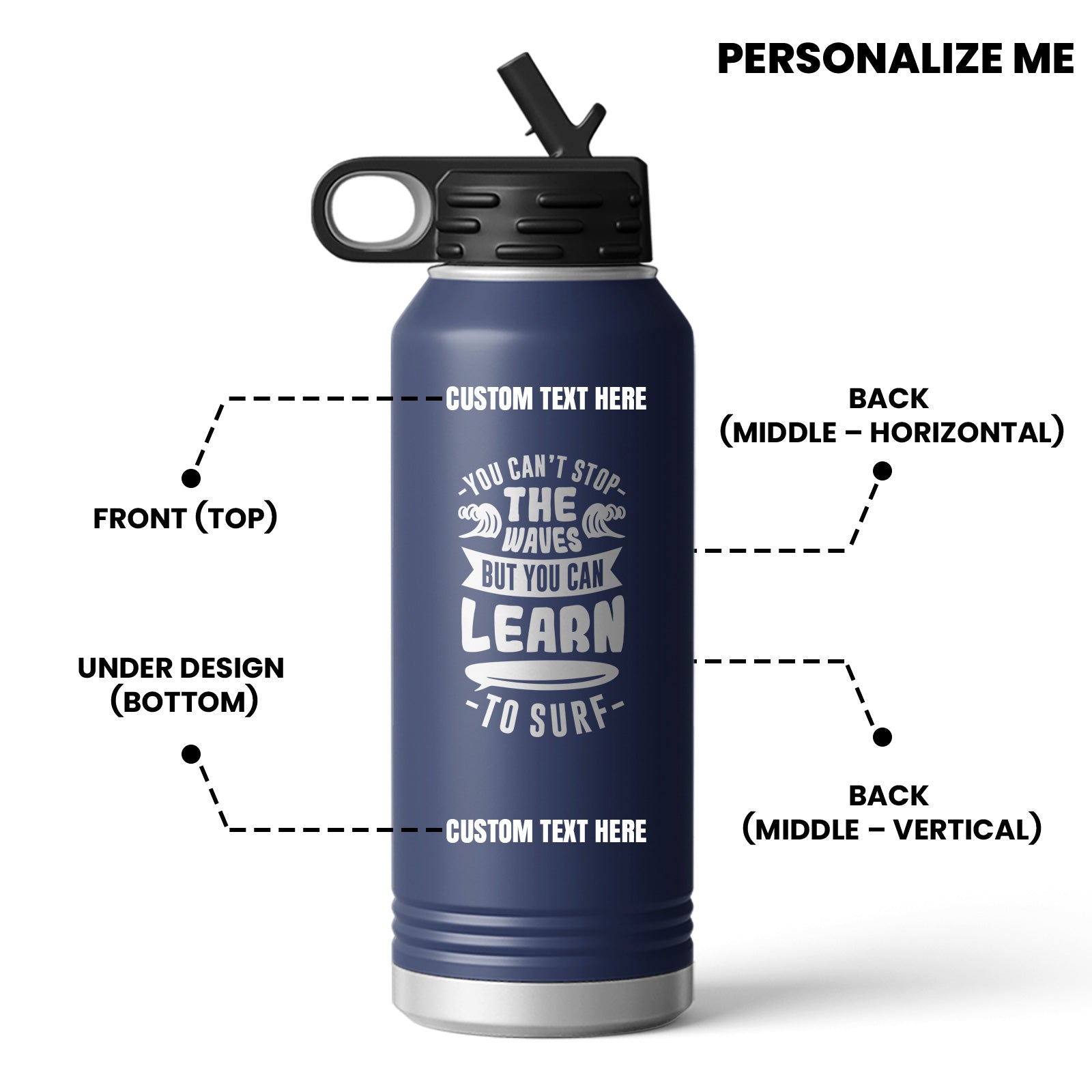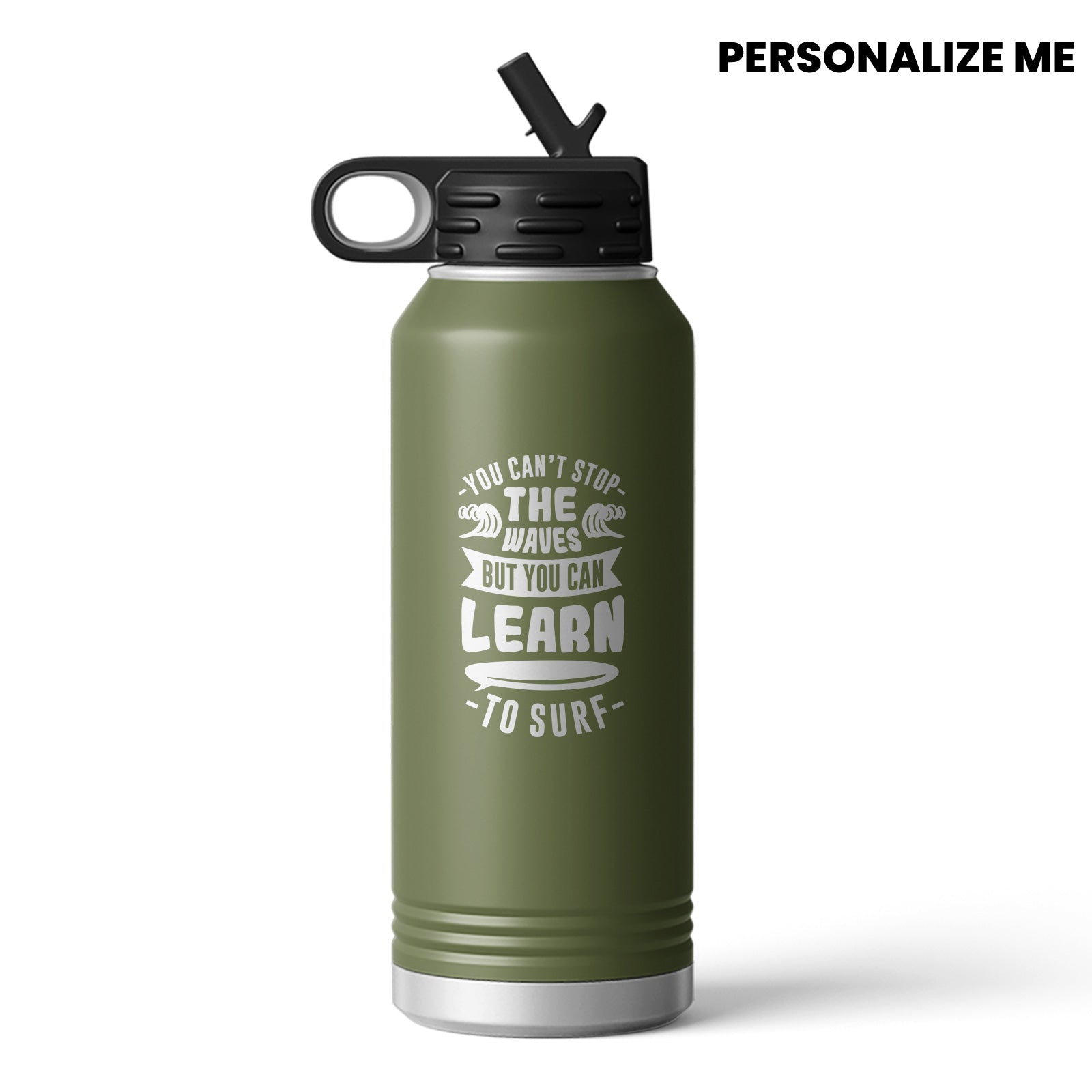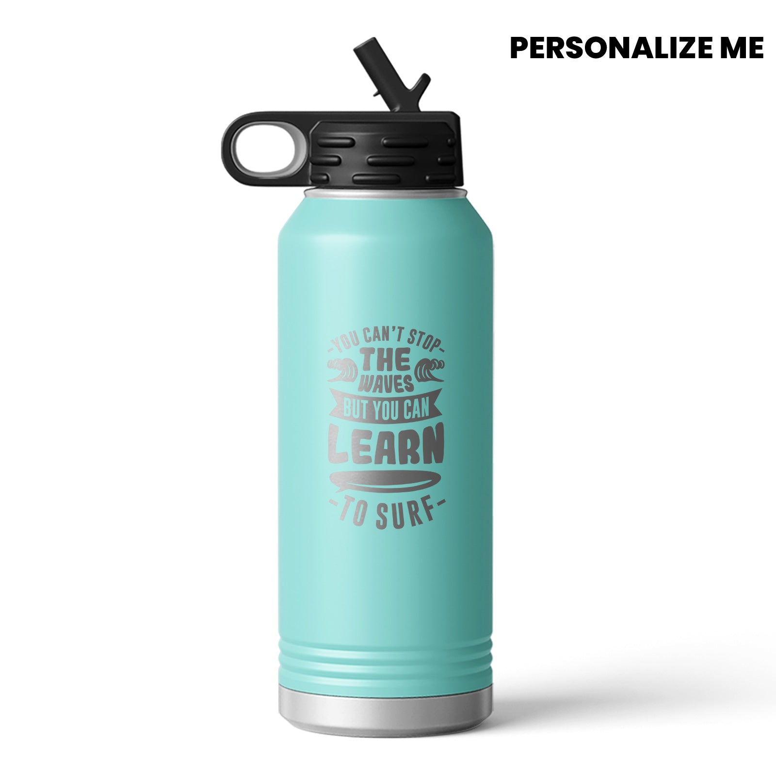The Can’t Stop the Wave, Learn to Surf. water bottle is a reminder that every wave brings a lesson. Improve your surfing skills daily and surf the waves with confidence. Waves may win, but you surf better with this stylish water bottle.