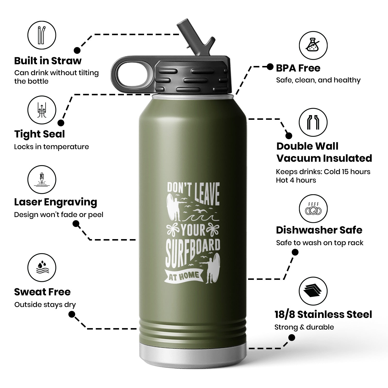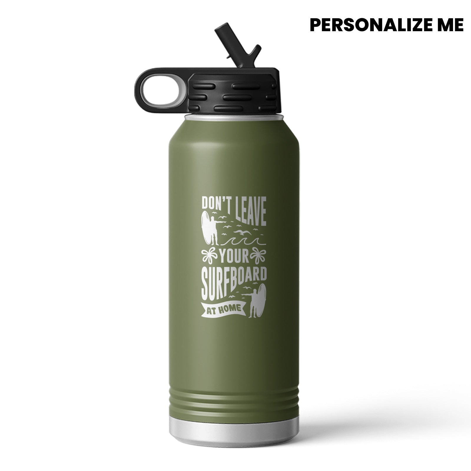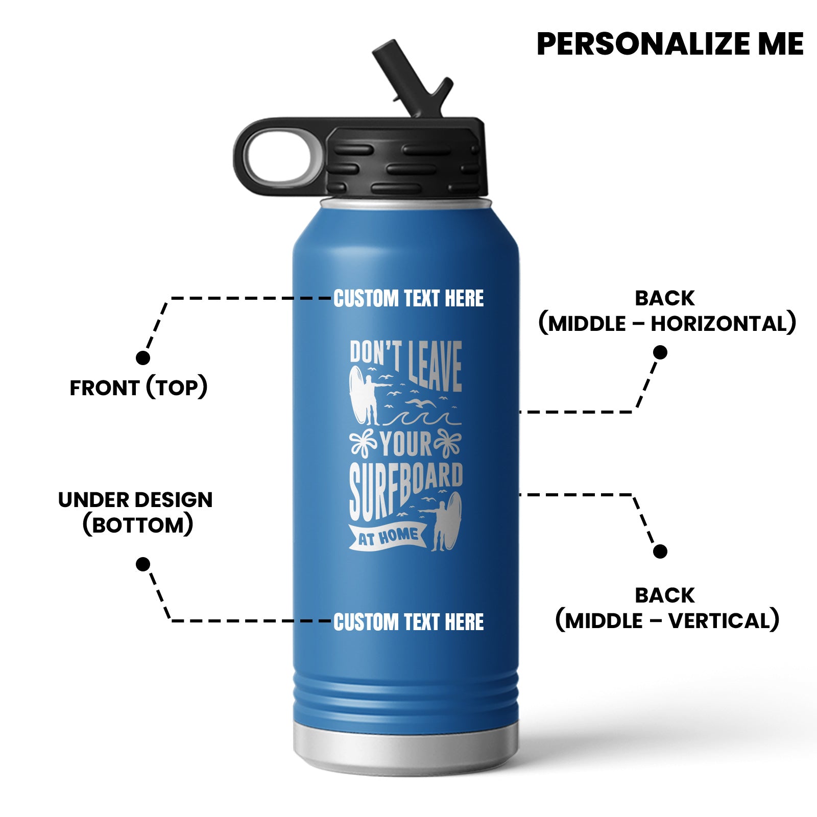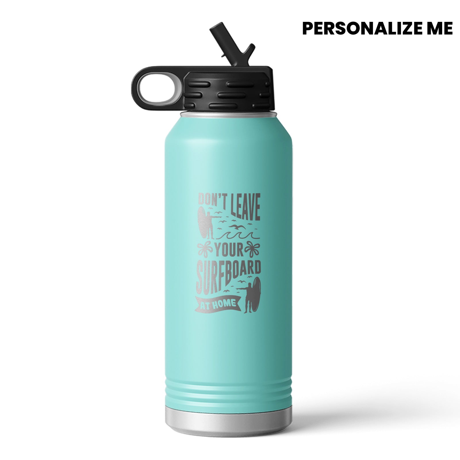 The Don't forget your surfboard, ride on. water bottle is essential for surf trip vacation days. Keep your surfboard always ready with this handy bottle. Surf and beach essentials for those who lost my surfboard again.