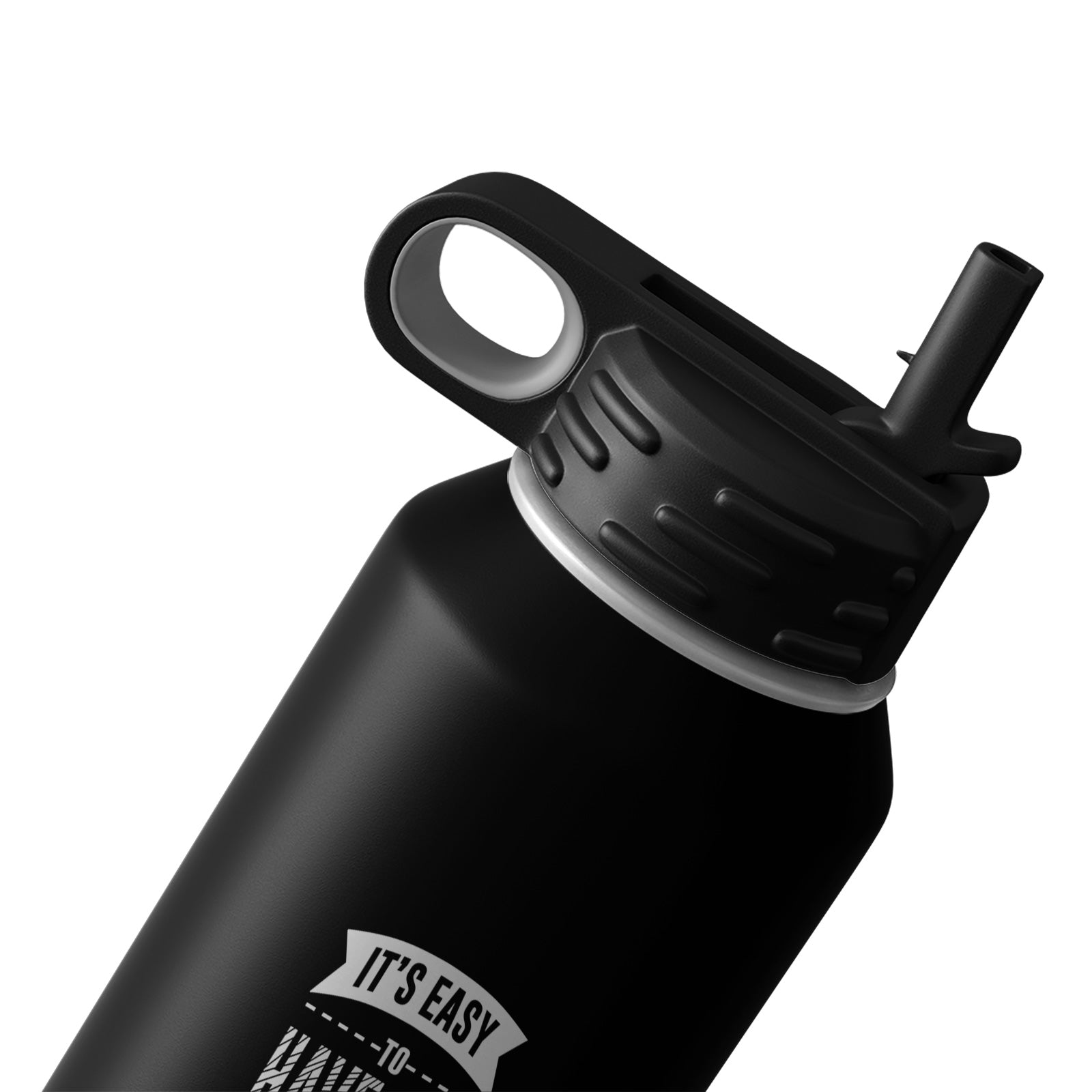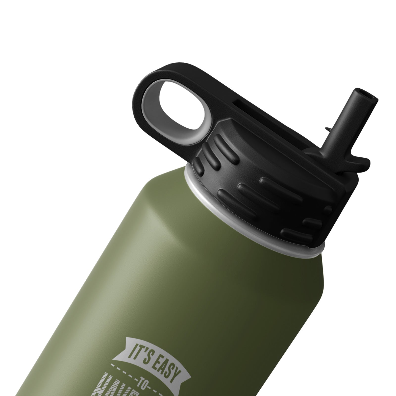 Take your hydration to the next level with this rugged 32 oz insulated water bottle, designed for those who push the limits. Whether you're hiking mountain trails, conquering workouts, road-tripping, or exploring the great outdoors, this double-wall vacuum insulated bottle keeps your water ice-cold for 24+ hours or your coffee steaming hot for 12+ hours. The flip-up straw lid with a rubber finger hold allows for effortless, one-handed drinking, while the sweat-proof matte finish provides a secure grip—even in extreme conditions.