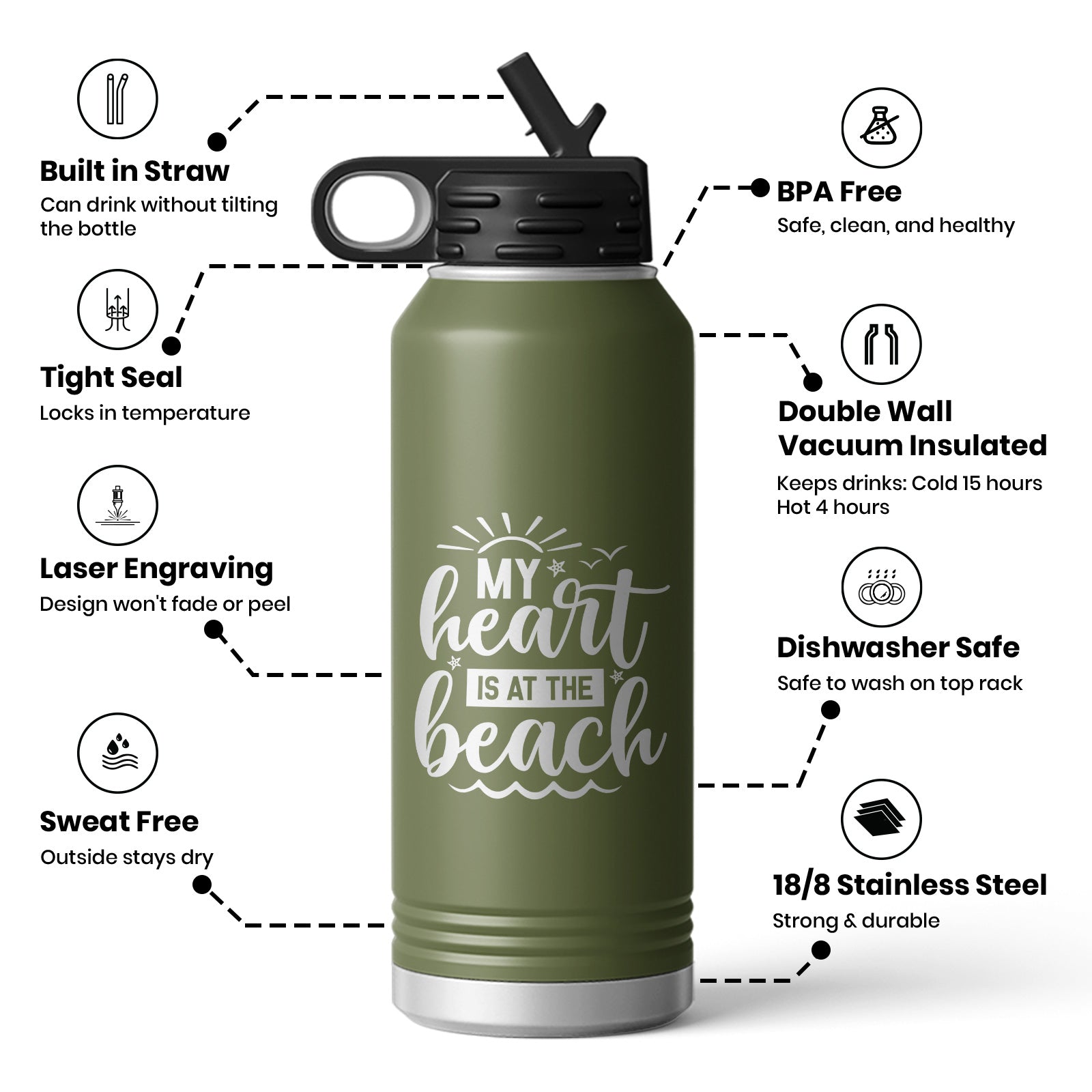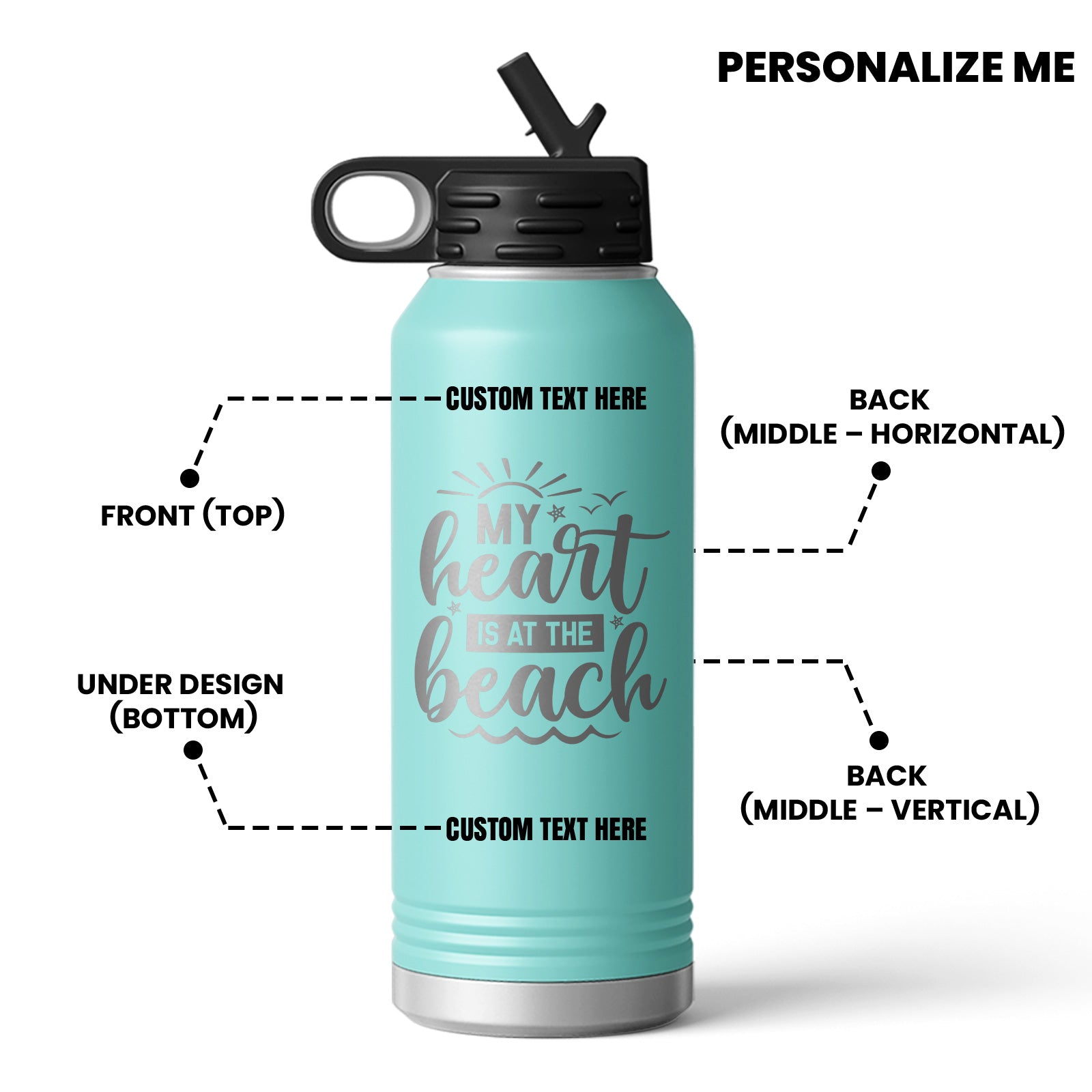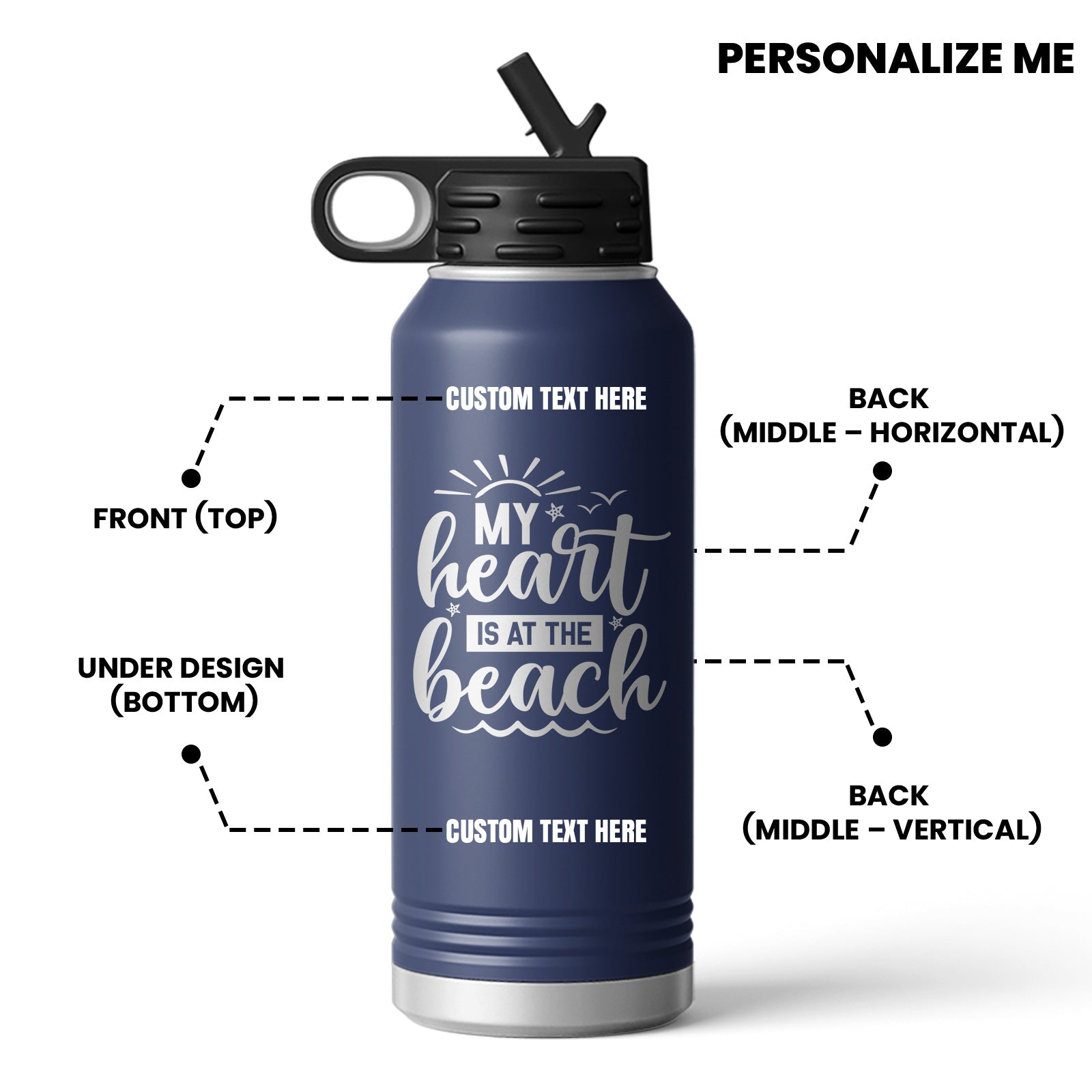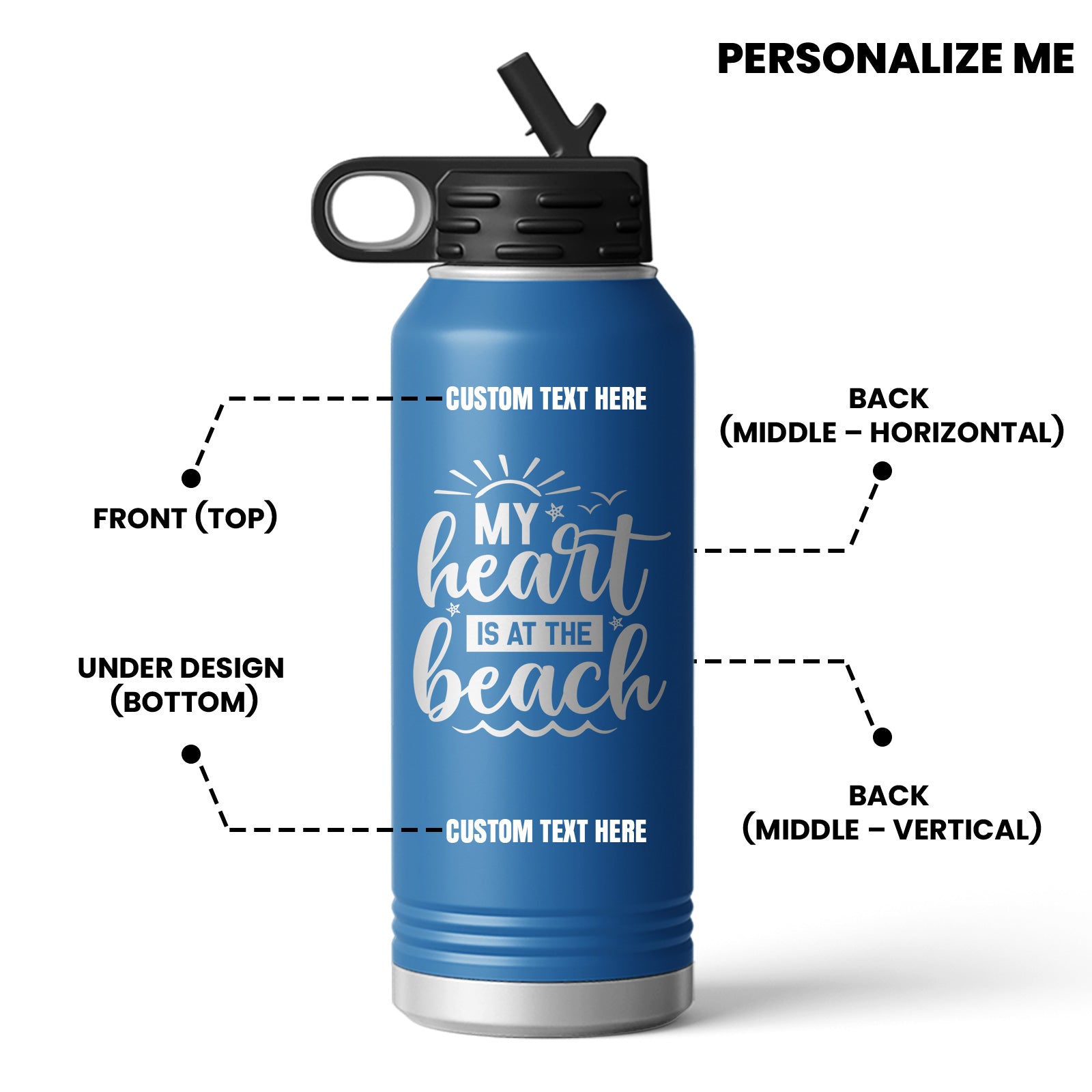 The Heart belongs to beach adventures water bottle is a must-have for beach lovers. With a design that captures beach vibes and the love for walking barefoot in the sand, this bottle is perfect for those who live for the beach life. The beach has my heart!