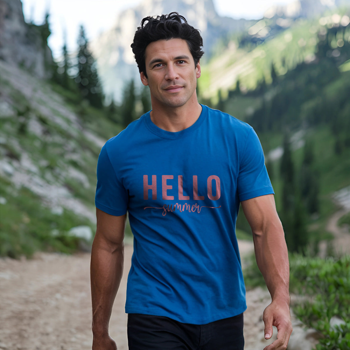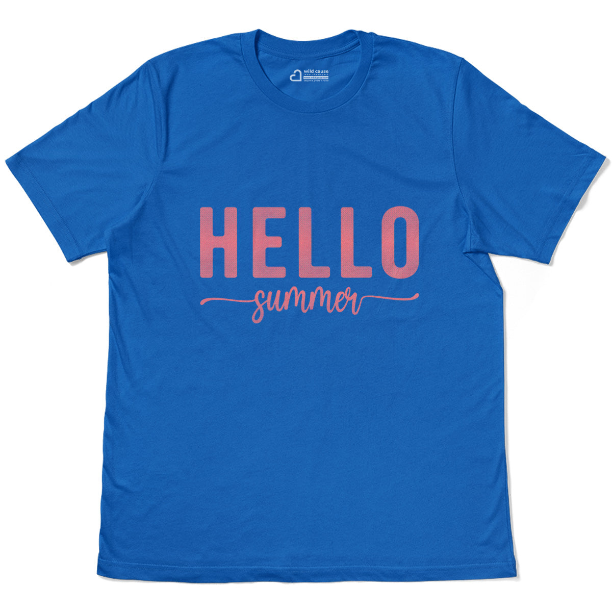 The Hello summer, fun beach vibes Adult Cotton Tee T-Shirt welcomes summer sunshine with its vibrant design. Perfect for sunny days full of joy, this tee lets you have fun all day. Hello summer time starts with this comfortable and stylish shirt.