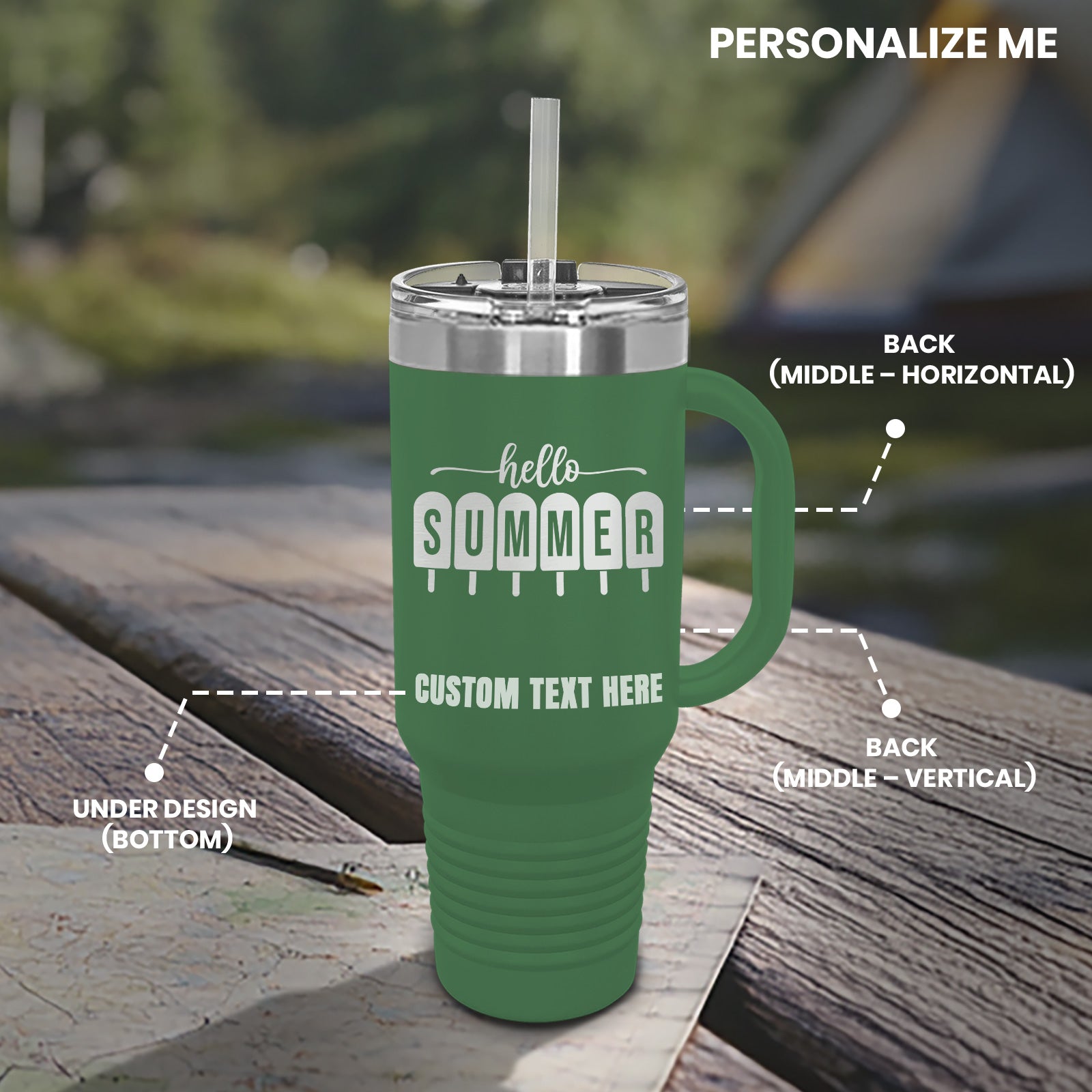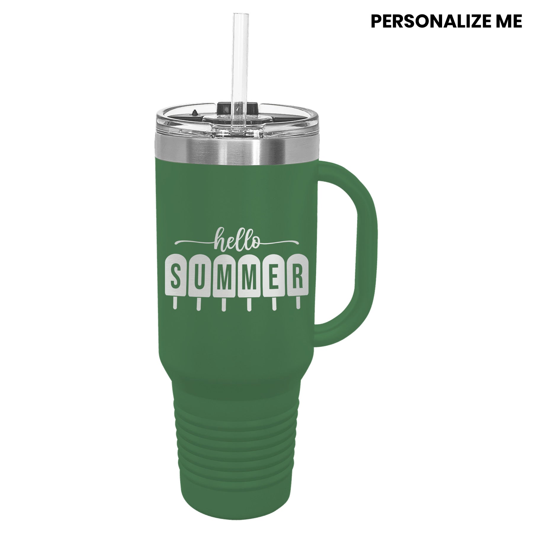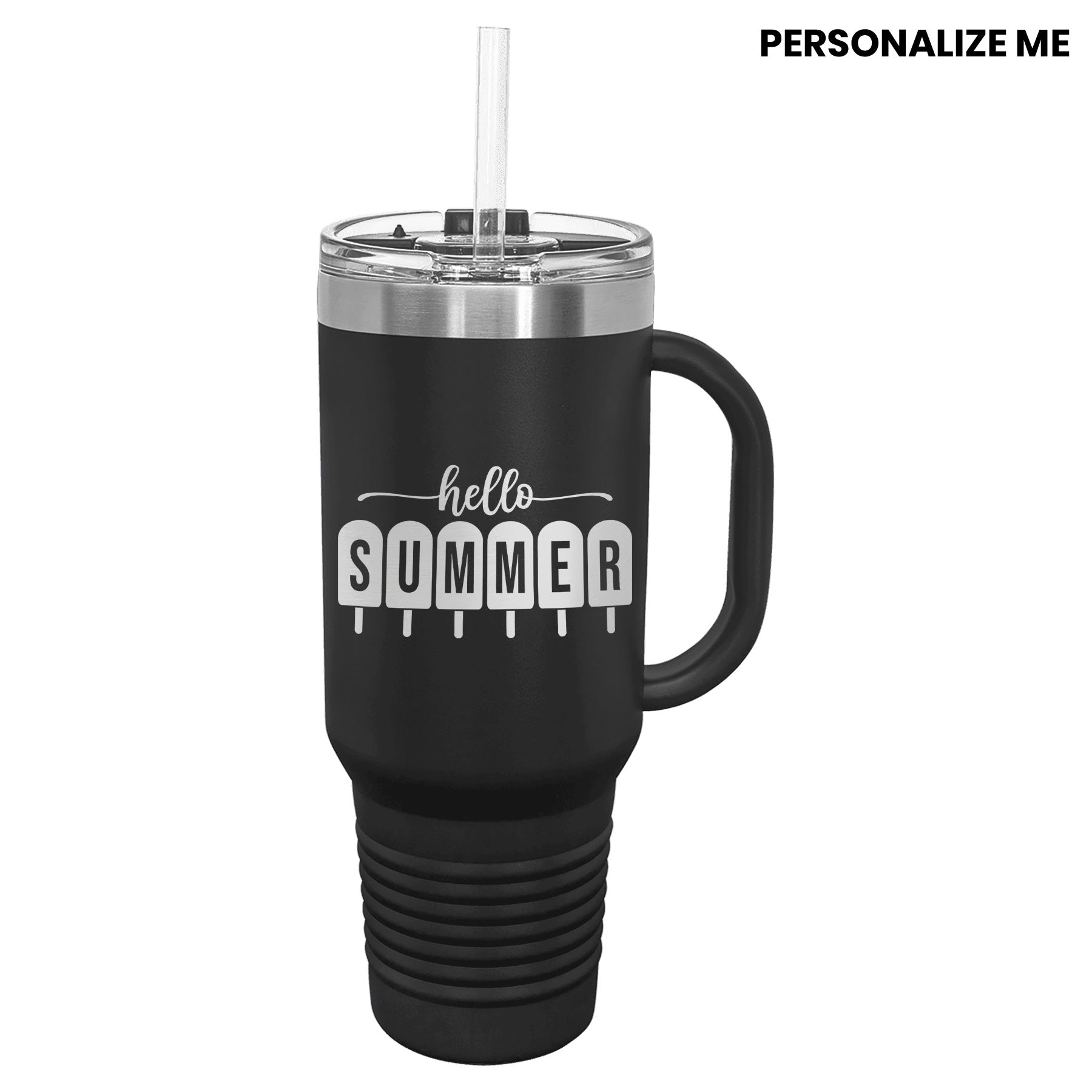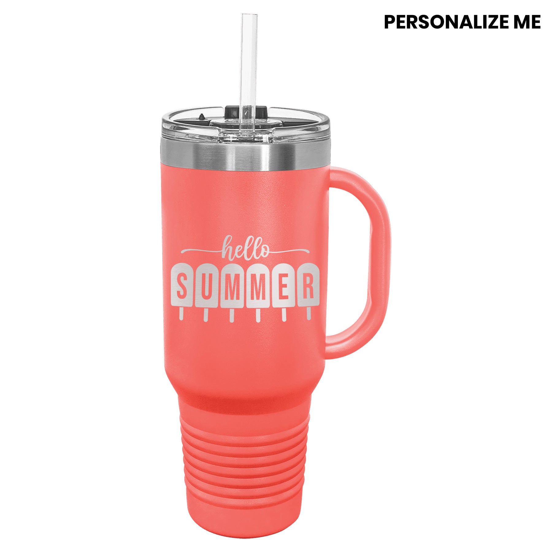 Hello Summer Outdoor Beach Paradise Tumbler with Handle