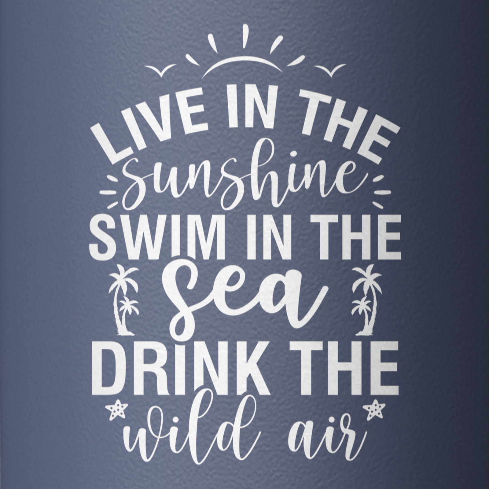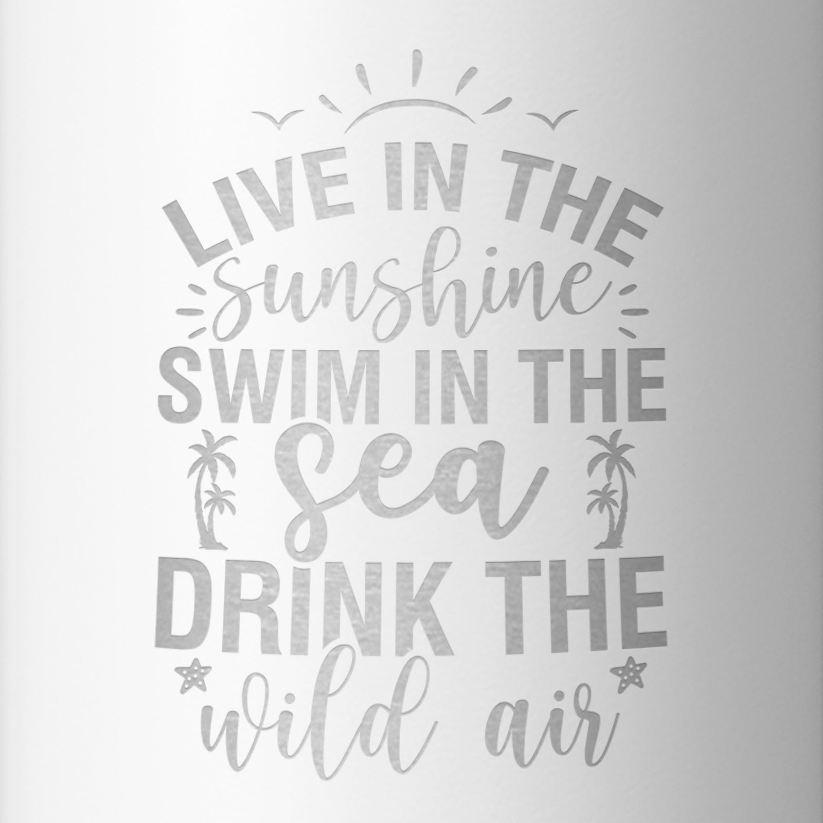 Live In Sunshine Swim In Sea Drink Wild Air Beachfun Water Bottle Mug