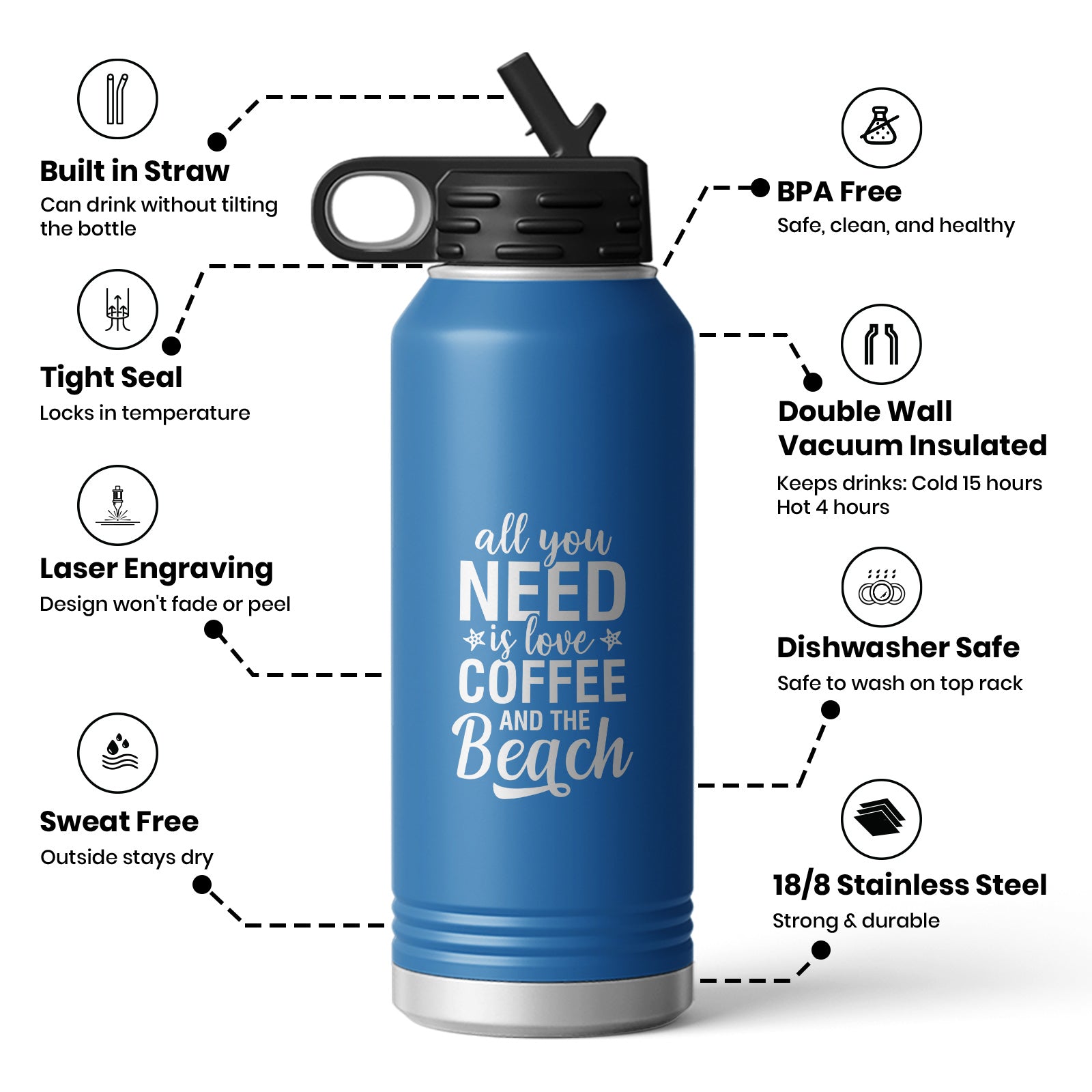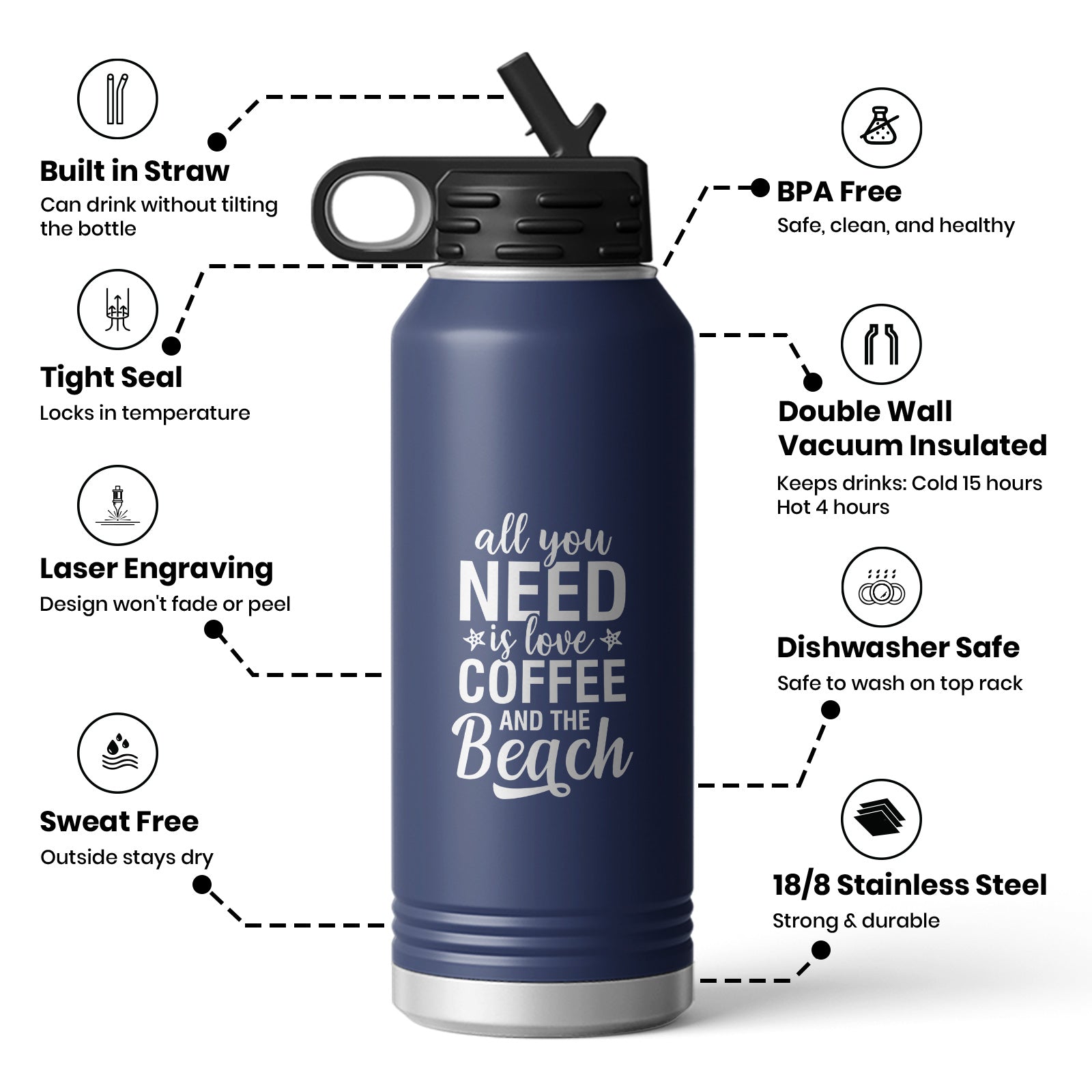 All You Need Love Coffee Beach For Fun Vibes Water Bottle Mug