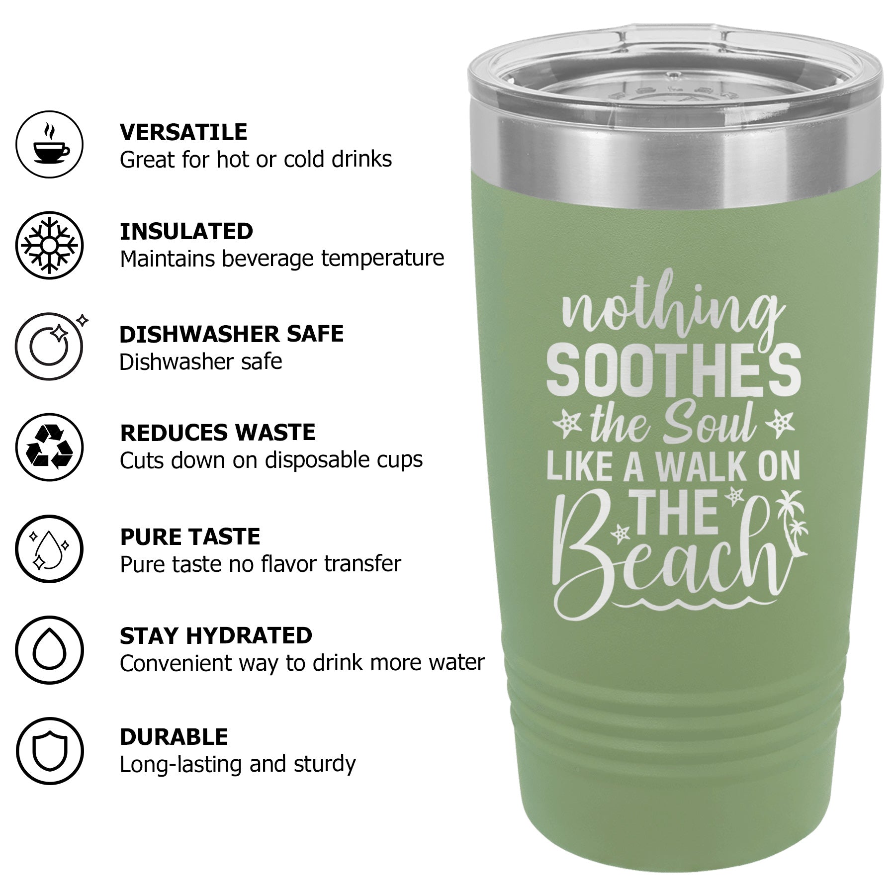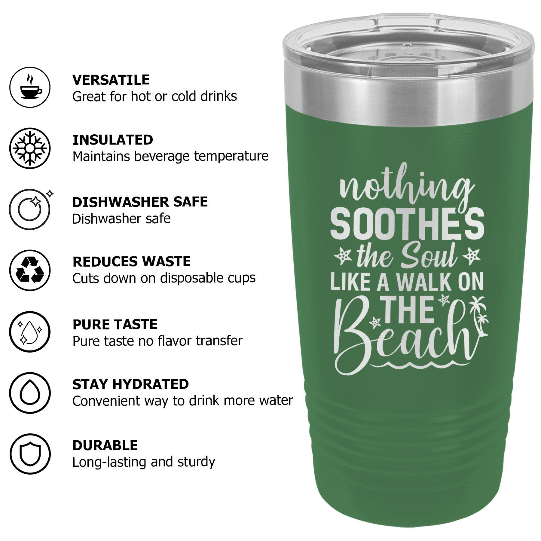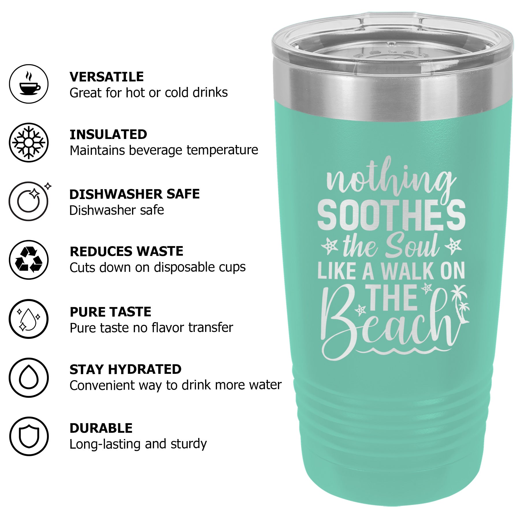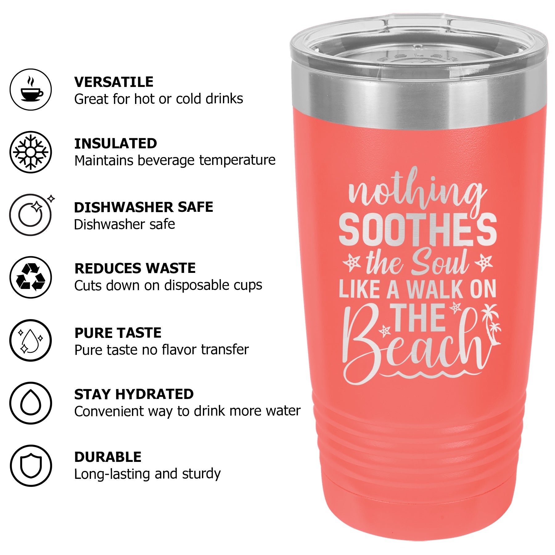 The Beach walks soothe the soul deeply Tumbler Cup Mug is a serene reminder of calm walks on the beach. With a soothing design, this mug captures the healing by the ocean vibes. Enjoy your favorite drink in this shoreline walks themed cup.