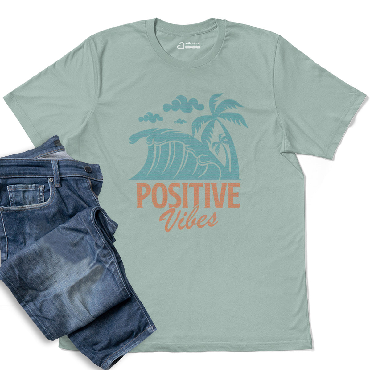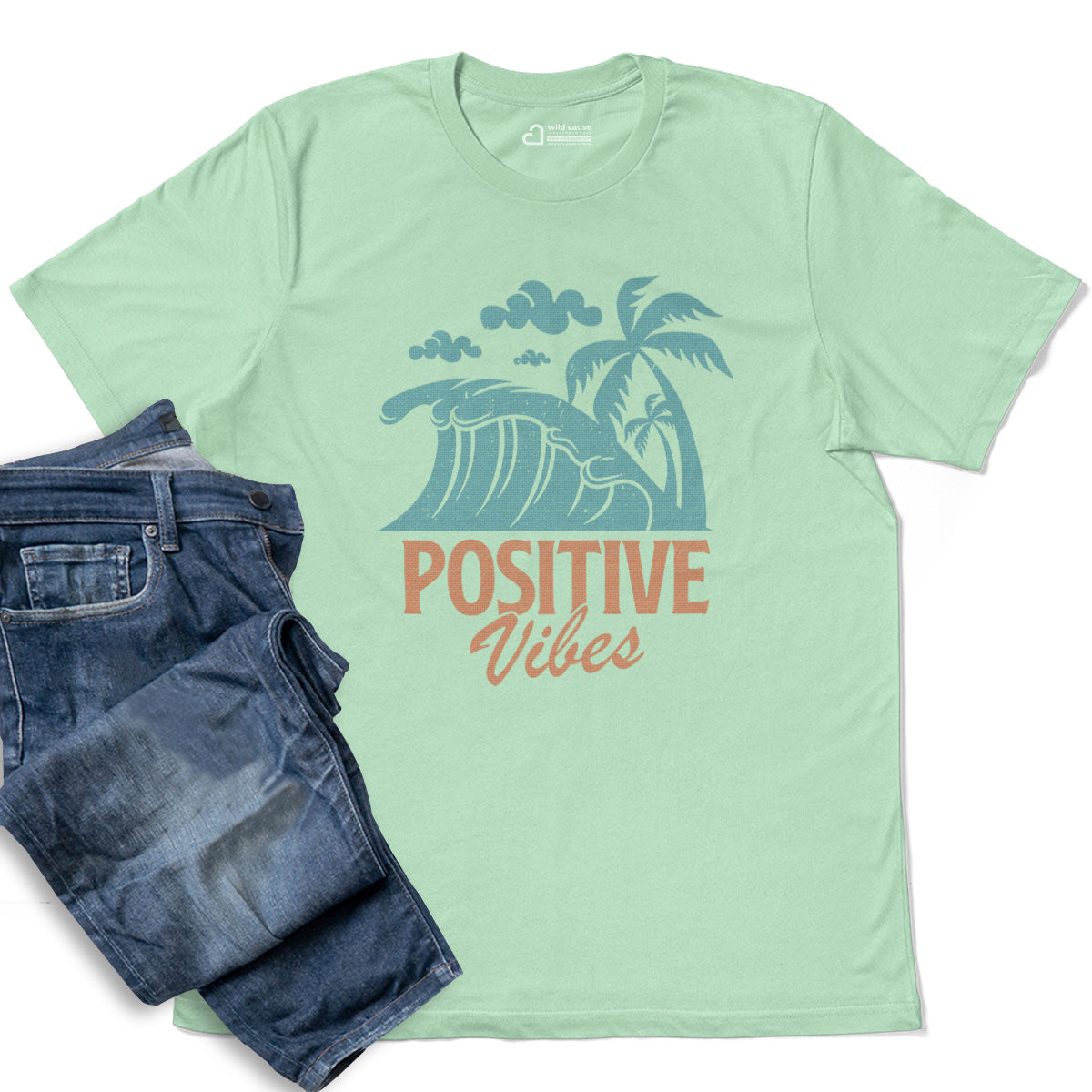 Positive Vibes Beach Waves For Fun Adult Cotton Tee T-Shirt