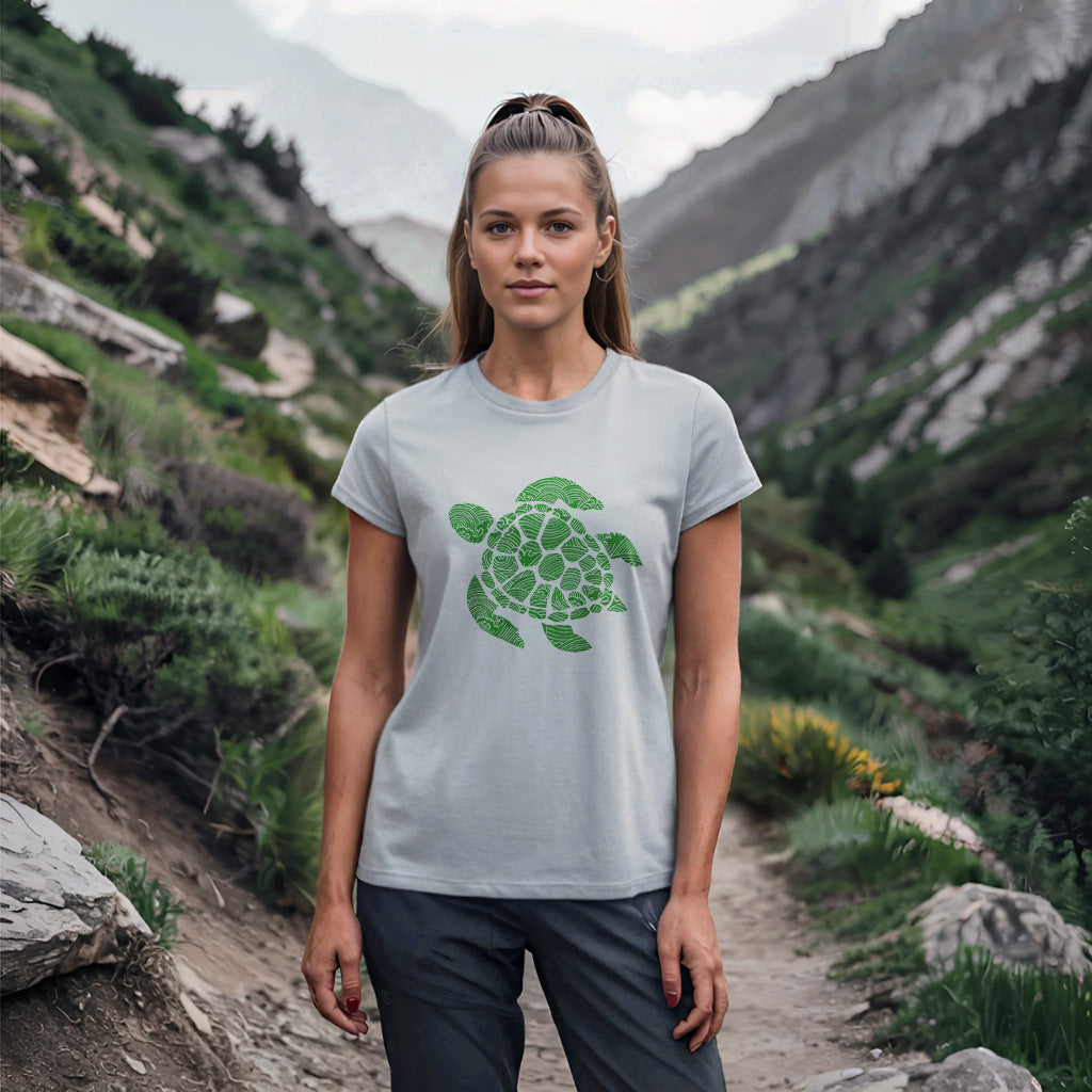 The Turtle silhouette Adult Cotton Tee T-Shirt features an artistic turtle pattern inspired by Turtle Conservation Day. Show your love for turtle and nature with this unique design, perfect for those who want to protect marine biodiversity. Dive into style with this Turtle Ocean Design tee.
