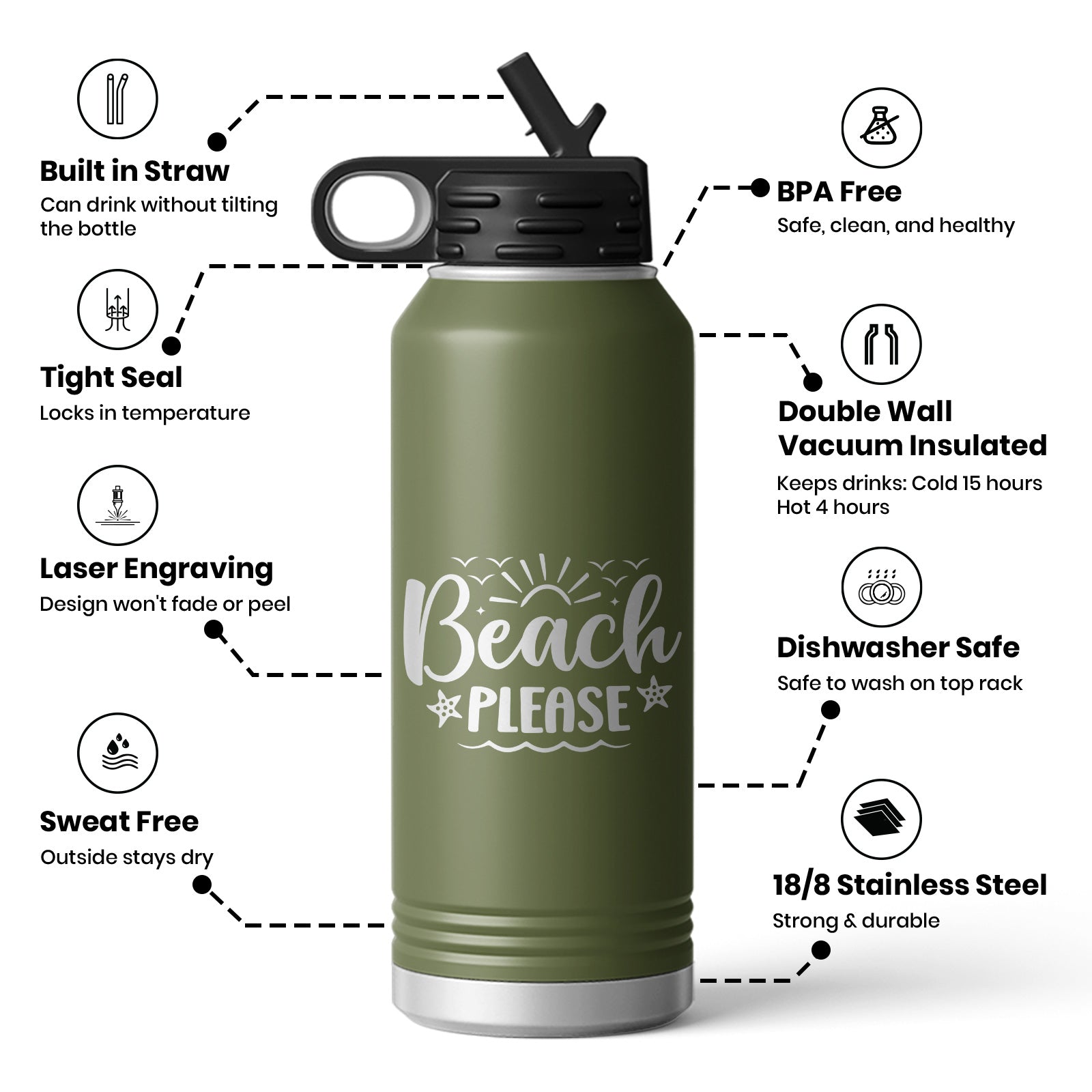 Sun-Sand Beach Please Ocean Waves Surfing Water Bottle Mug
