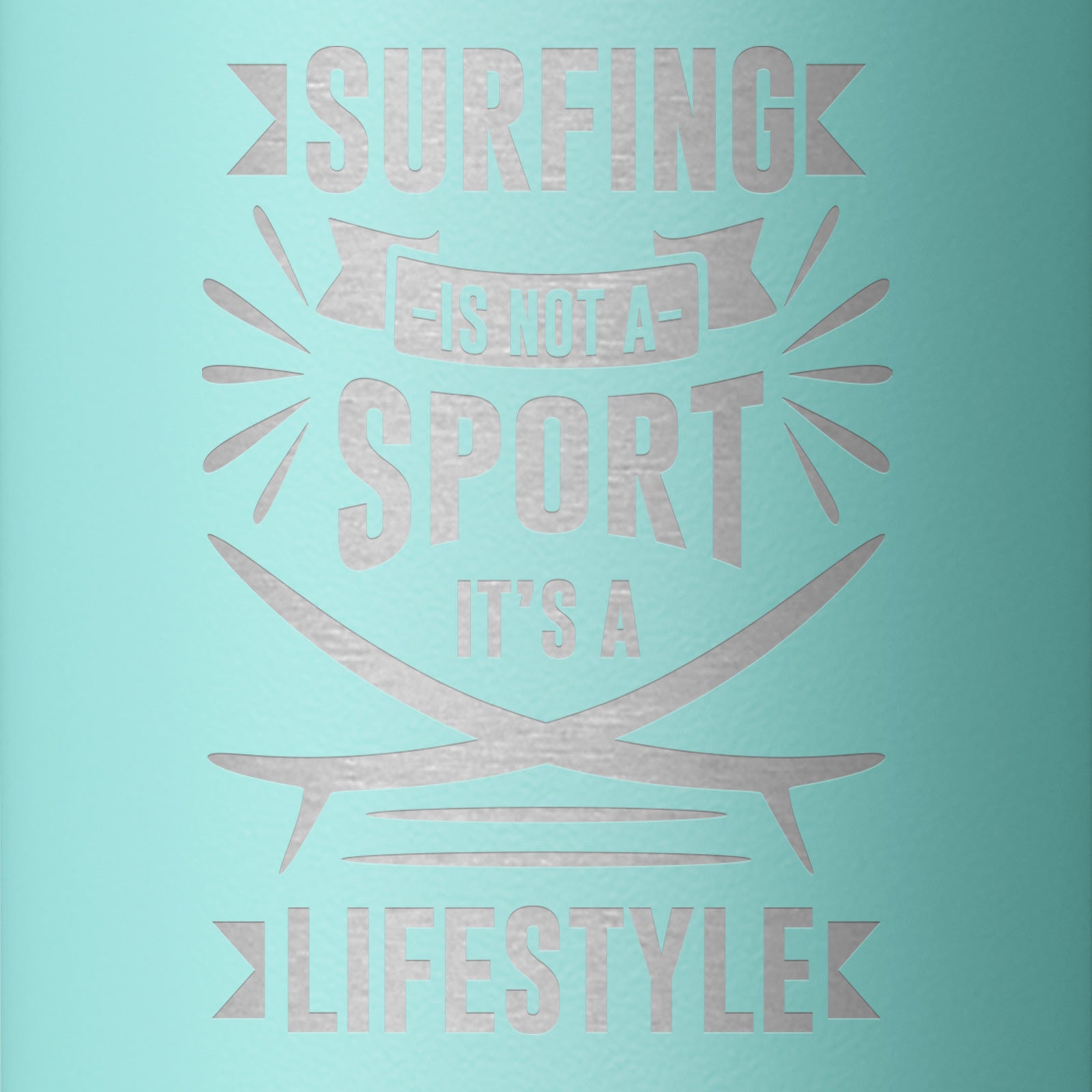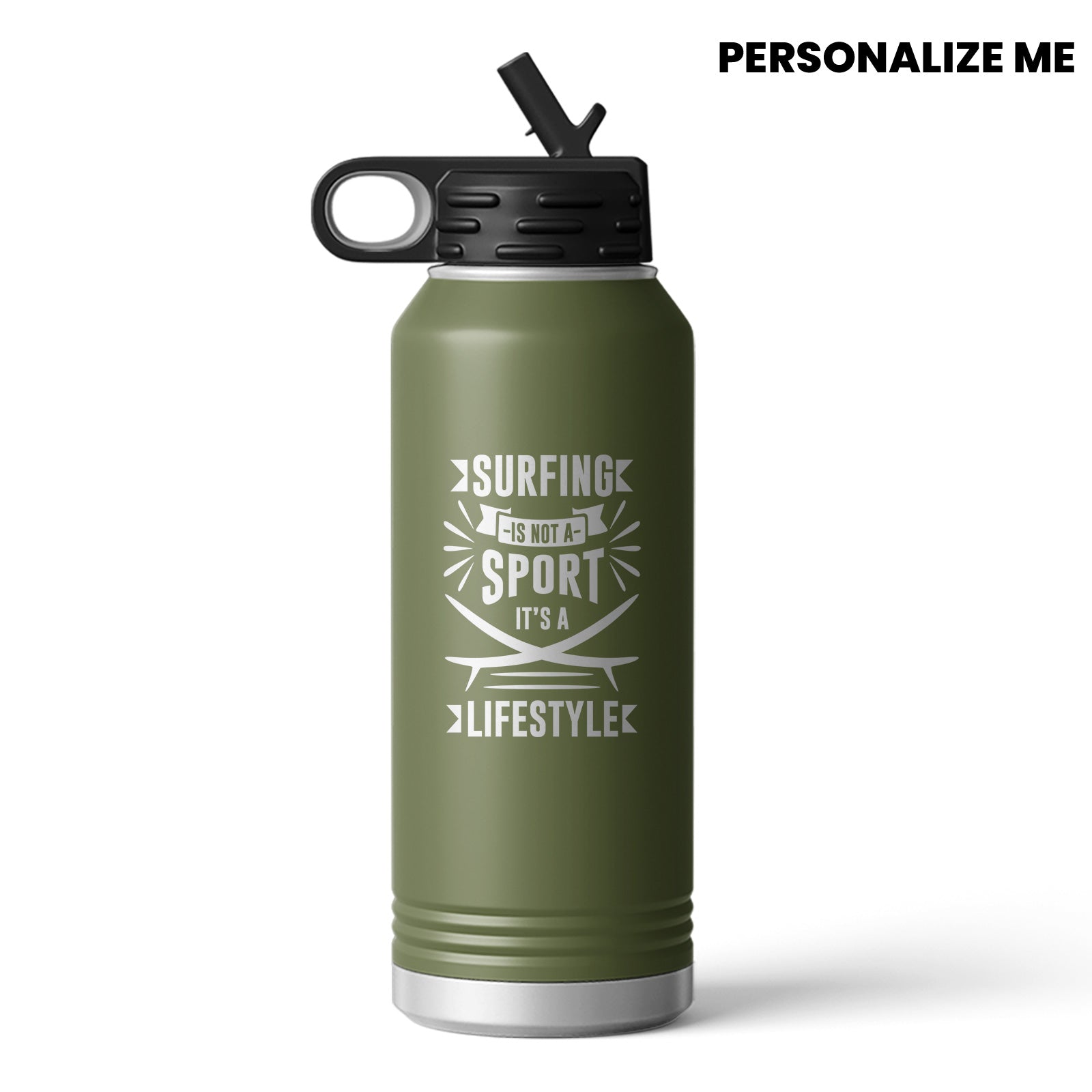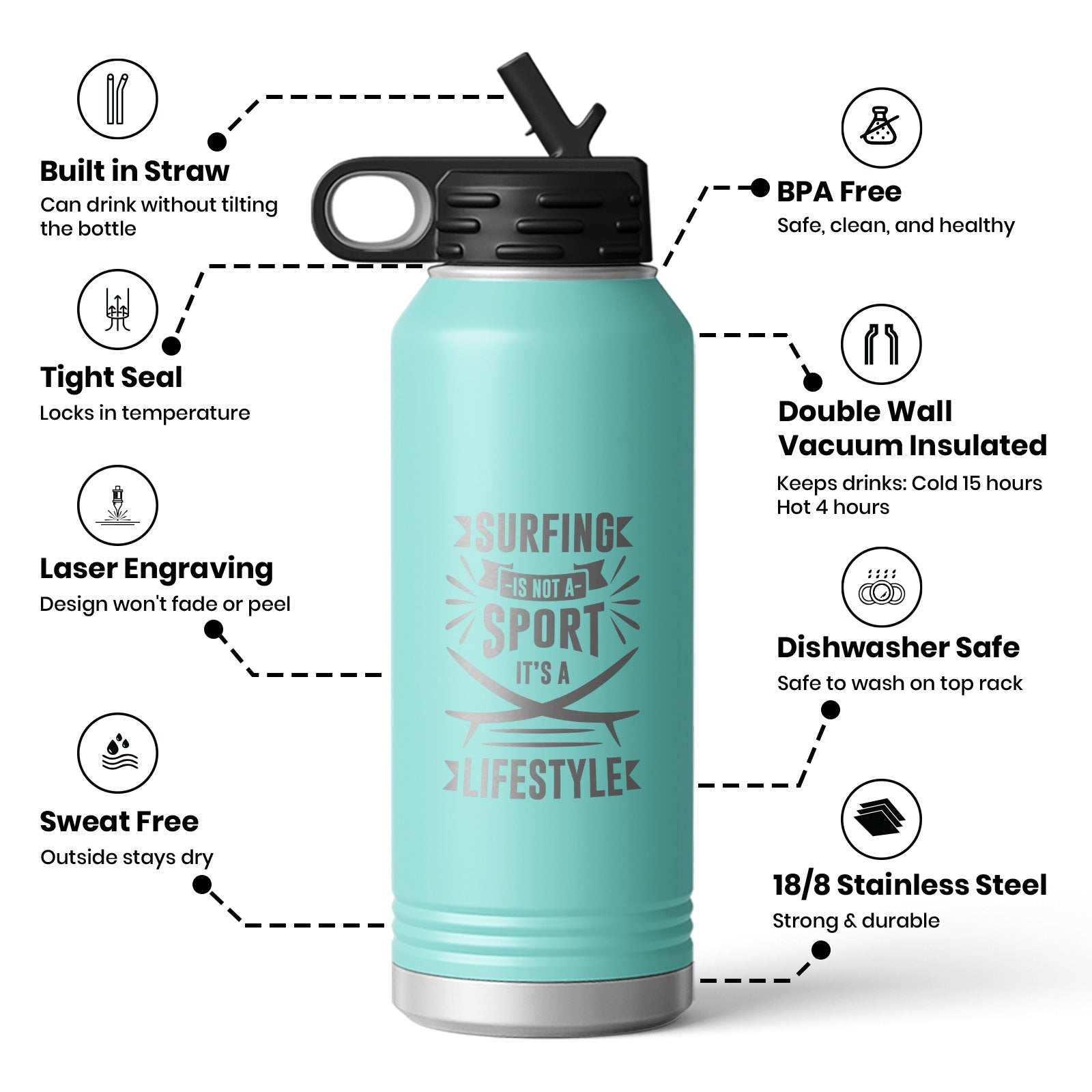 The Surfing is my one true life. water bottle is a must-have for those whose life revolves around surf. With a design that embodies the surfing spirit, this bottle is perfect for any time is surf time. Stay hydrated in style!