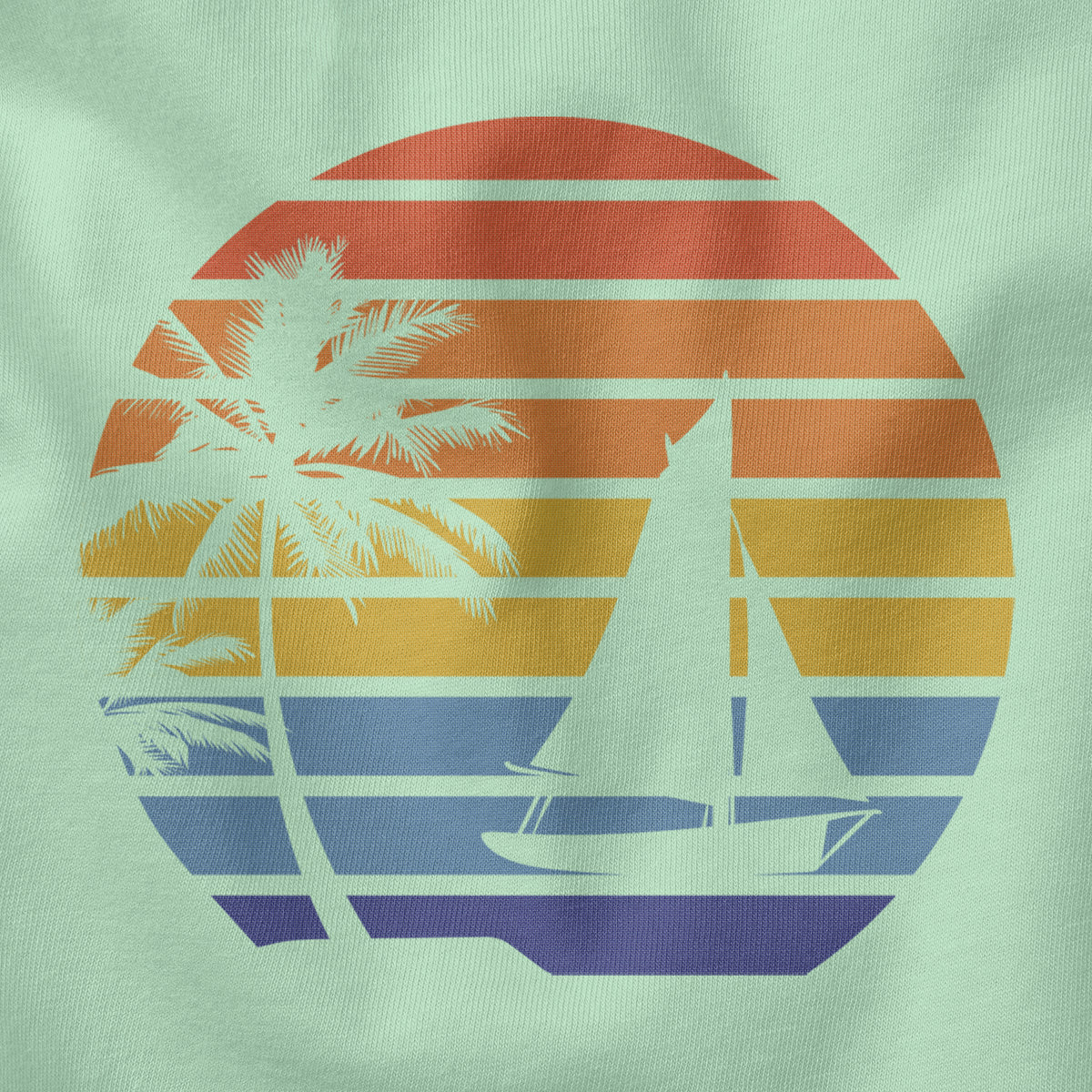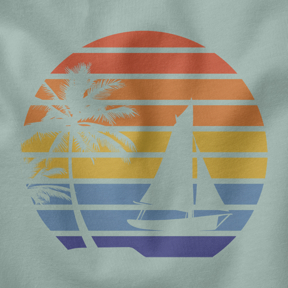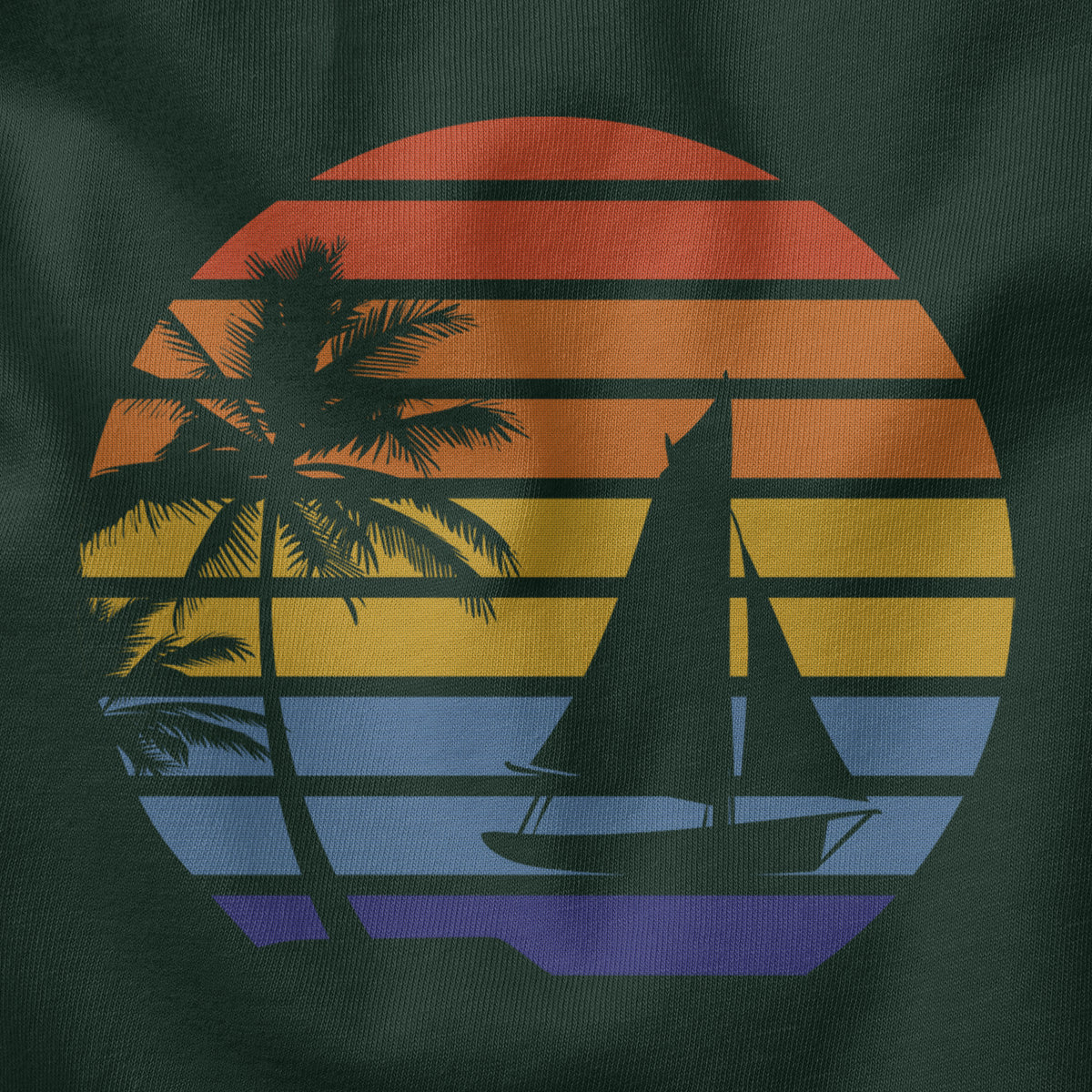 Sailboat ride with beach sunset Adult Cotton Tee T-Shirt embodies sunset sailing vibes with warm evening on water. Enjoy golden sunset view in style and comfort. Perfect for those seeking sunset boat journey.