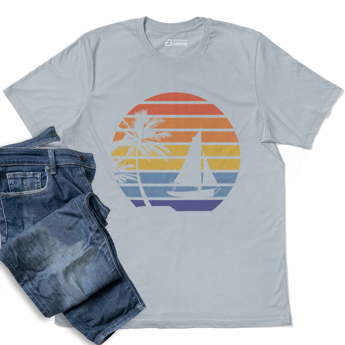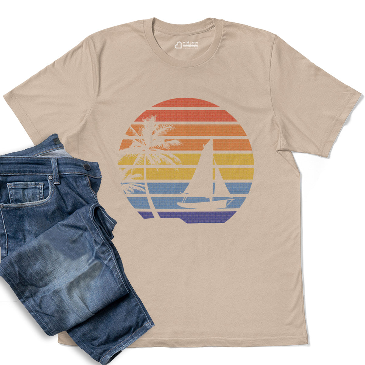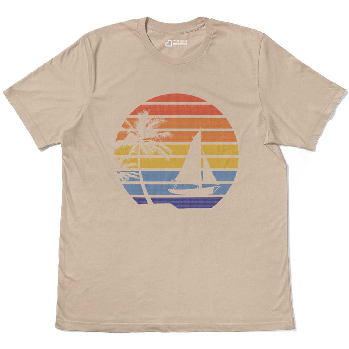 Beach Sunset Sailboat Ride Adult Cotton Tee T-Shirt $34.99