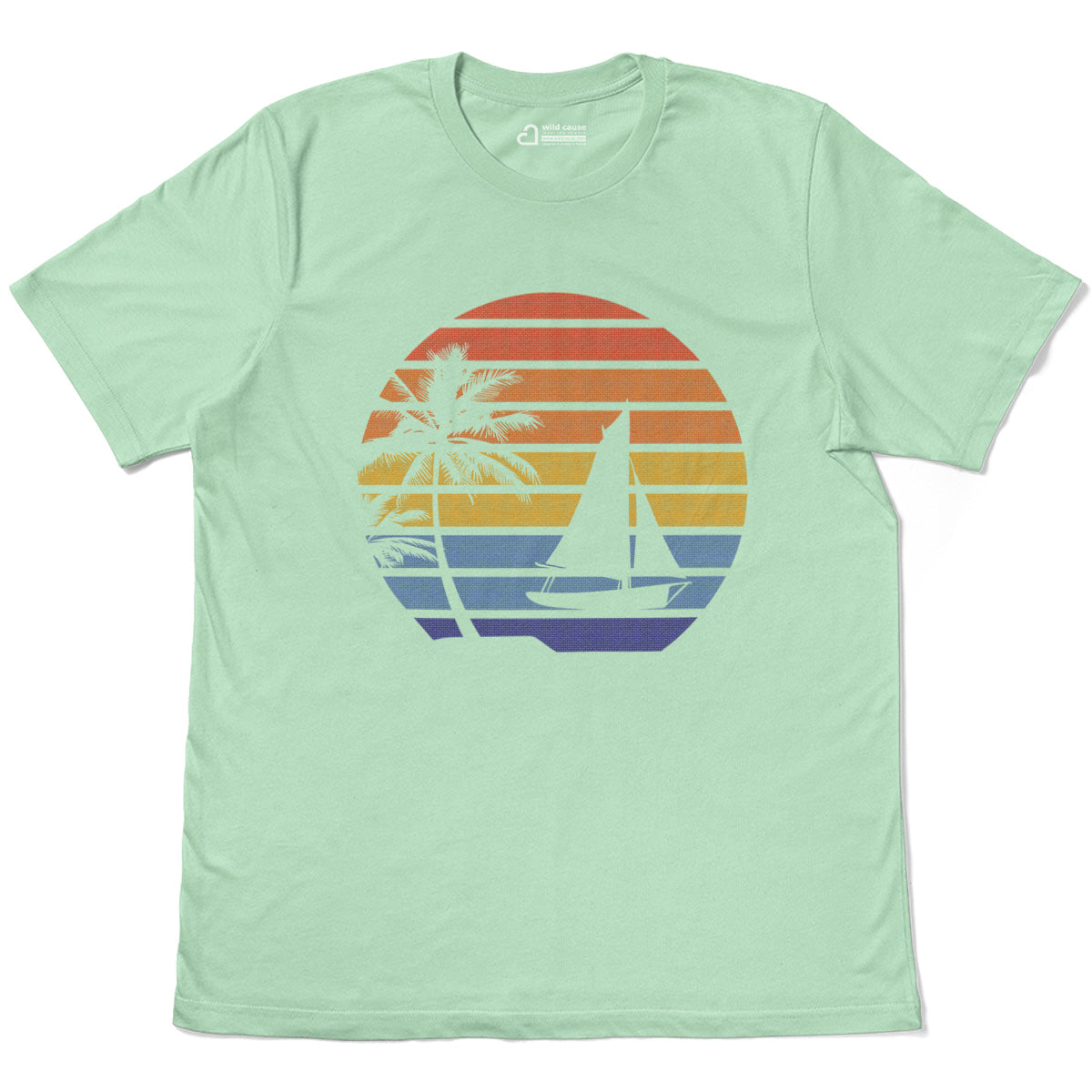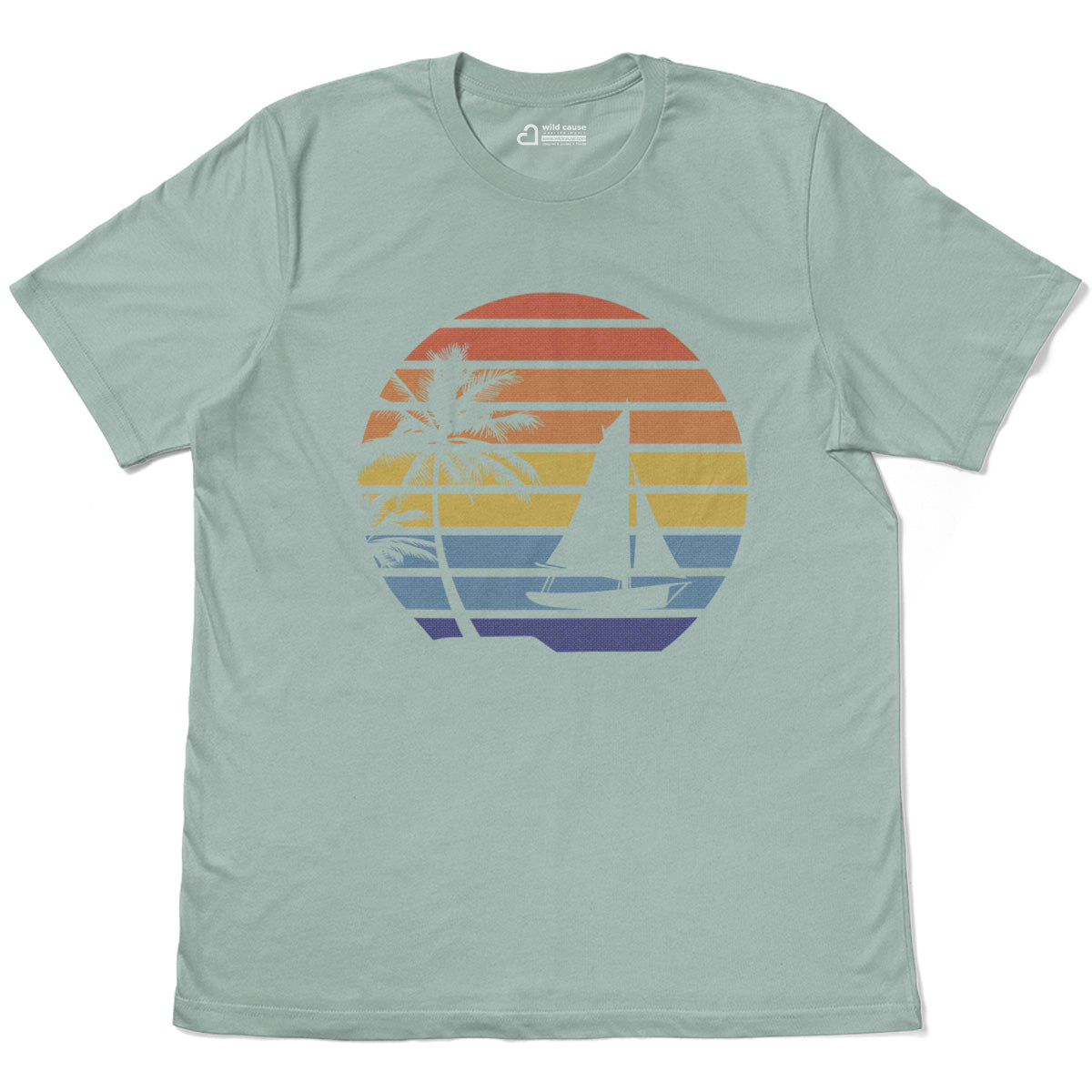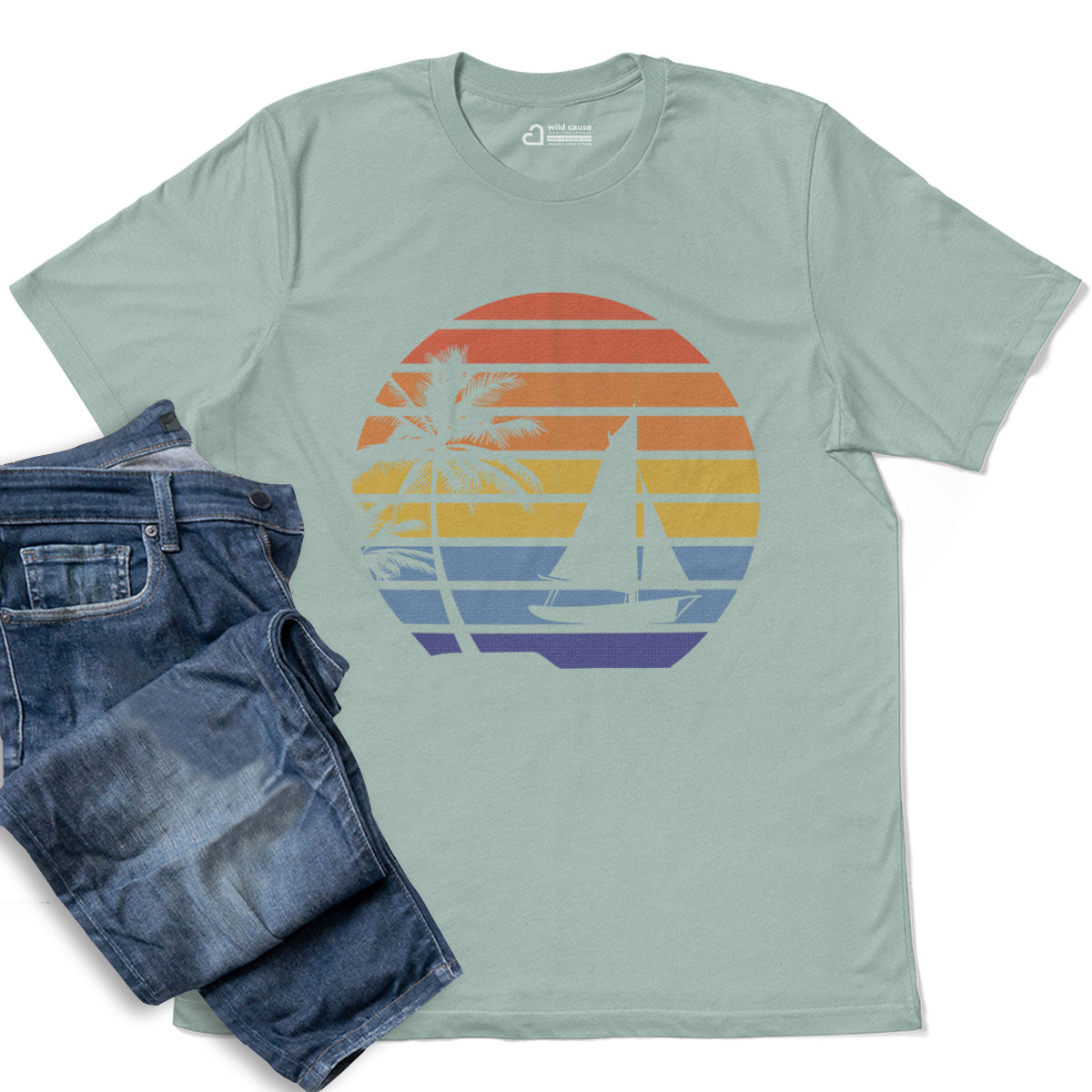 Beach Sunset Sailboat Ride Adult Cotton Tee T-Shirt $34.99