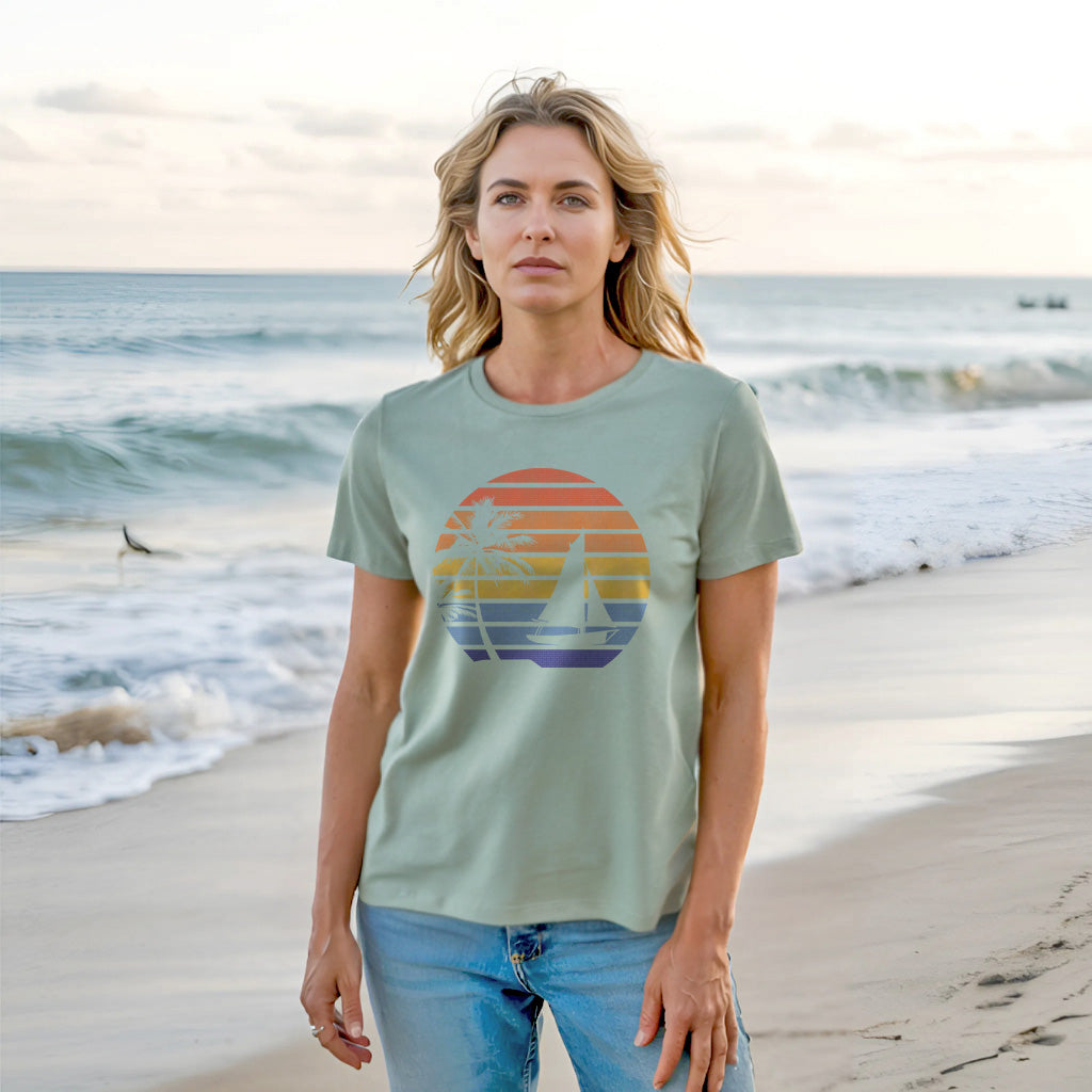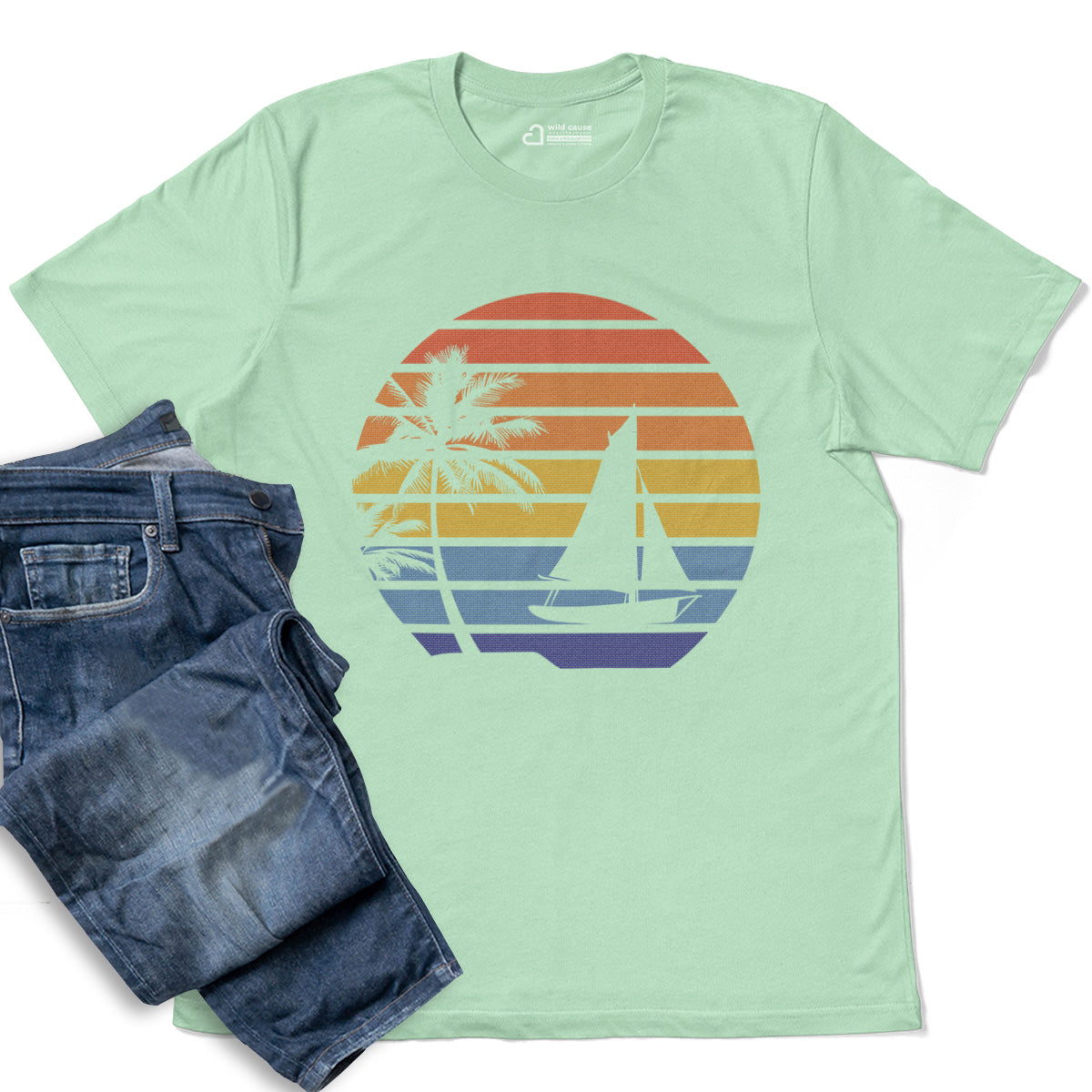 Beach Sunset Sailboat Ride Adult Cotton Tee T-Shirt