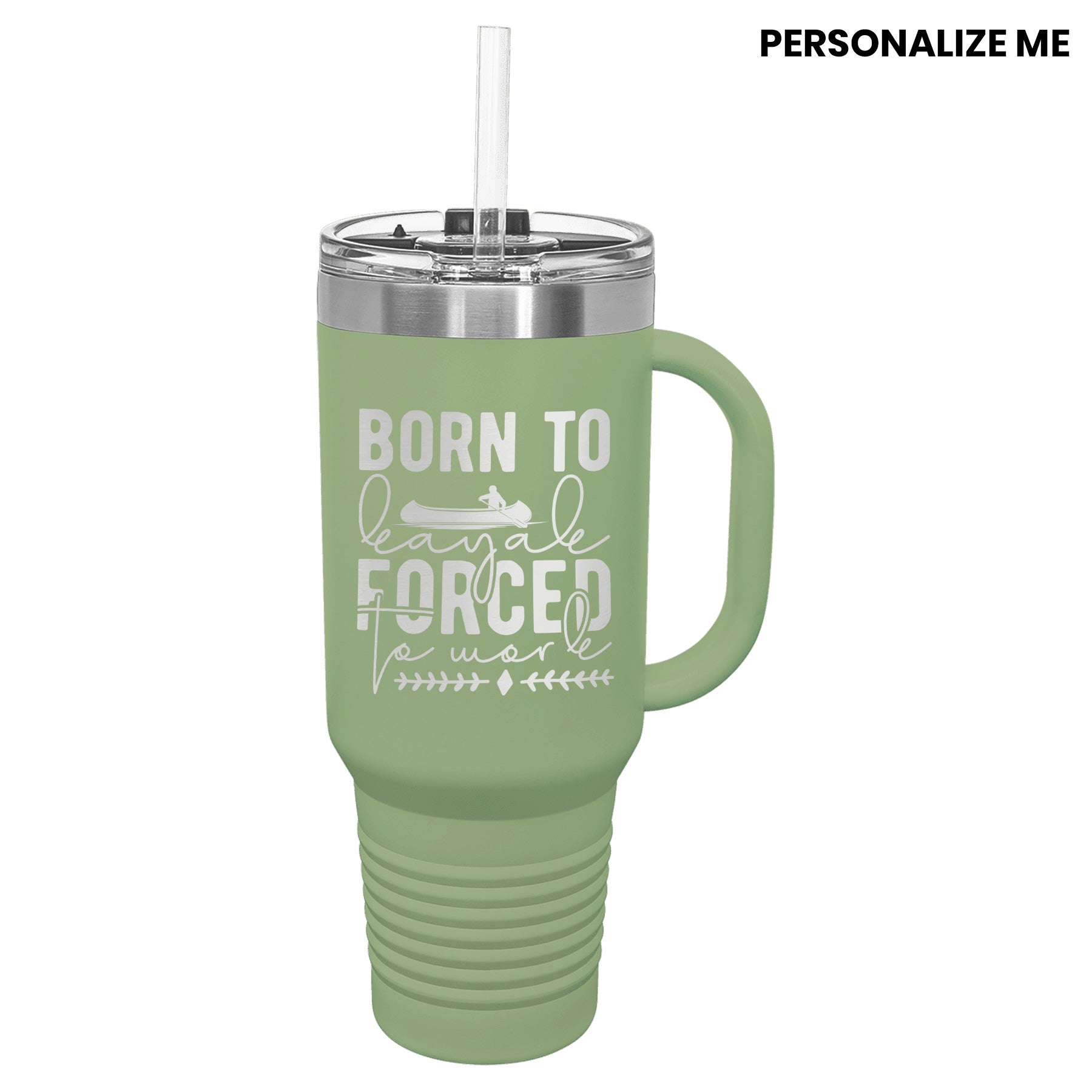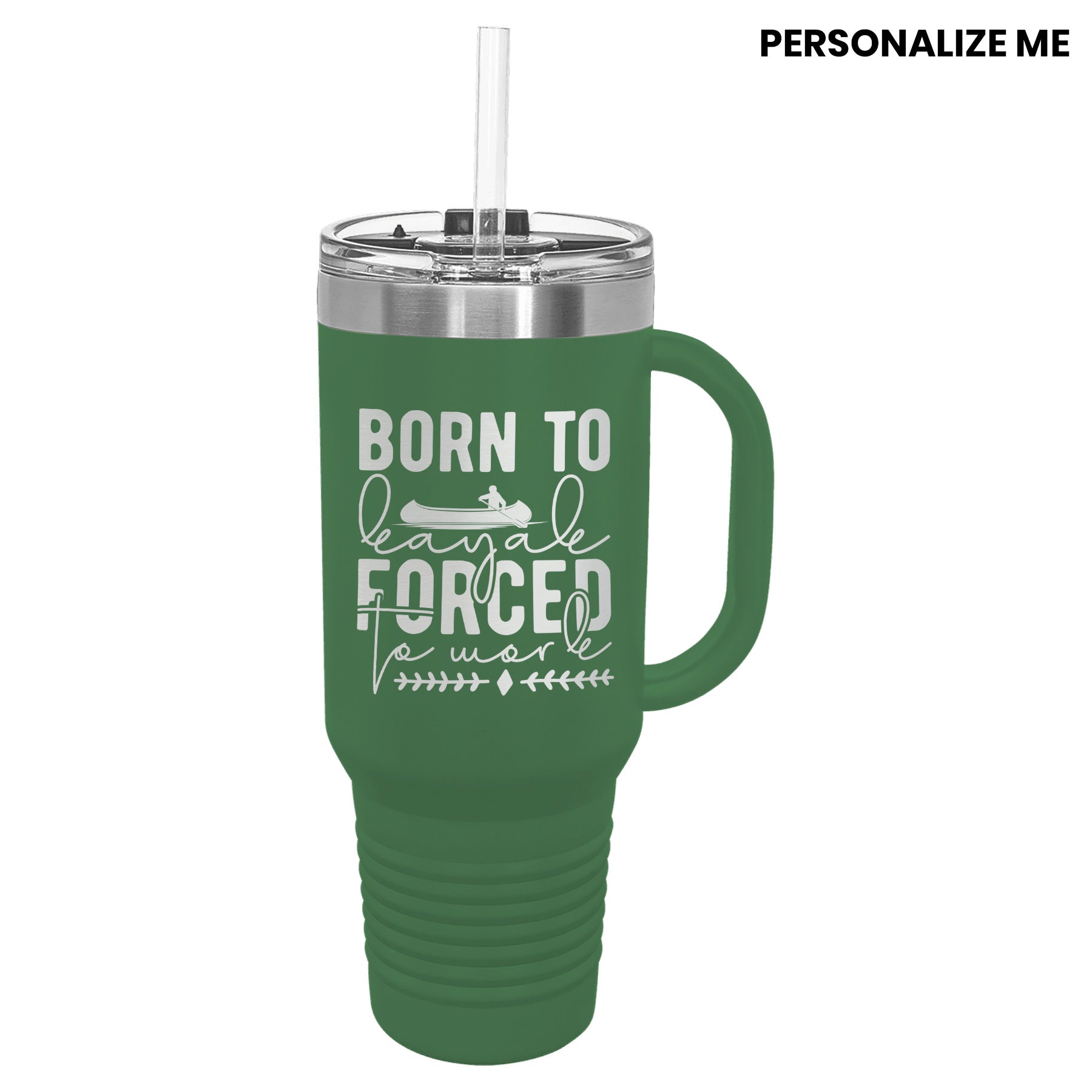 Born To Kayak Forced To Work Vibes Tumbler with Handle