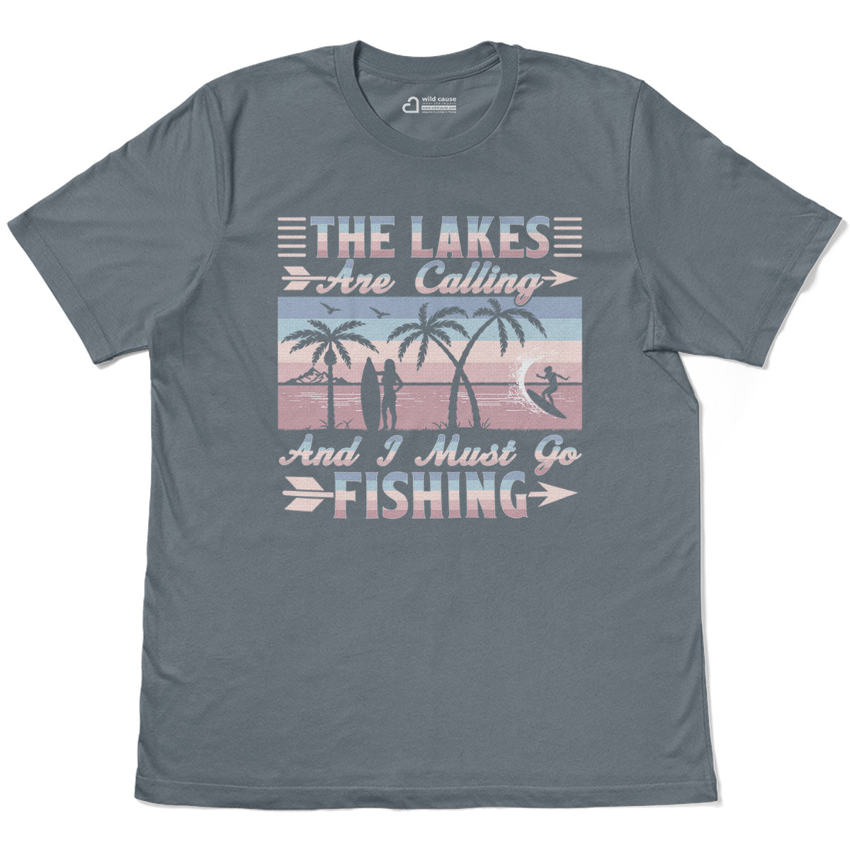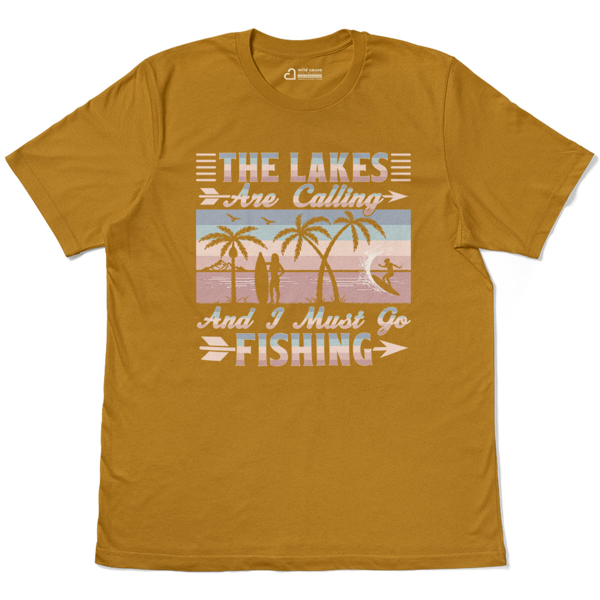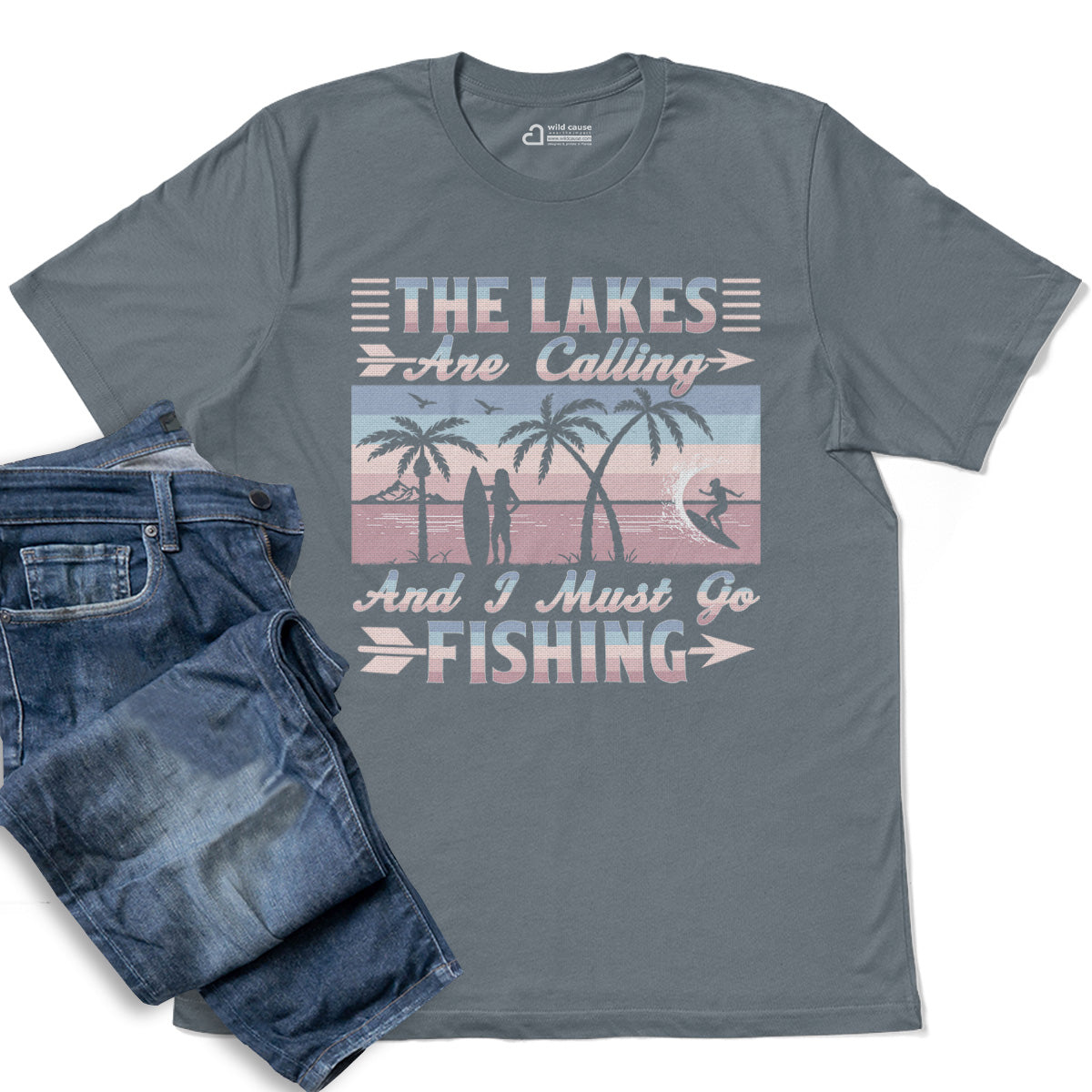Lake Are Calling I Must GO Seashore Fishing Outdoor Fun Adult Cotton Tee T-Shirt