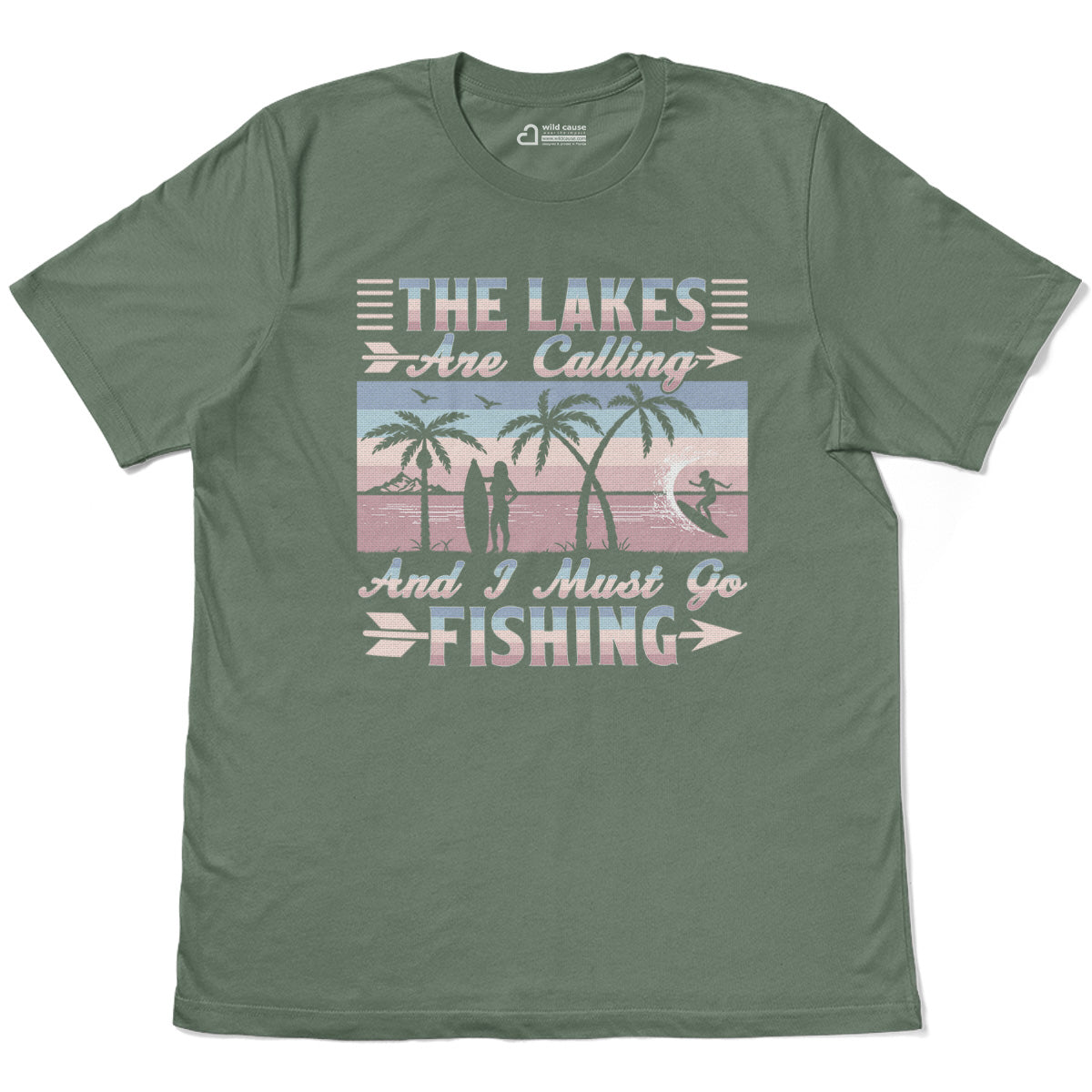 Lake Are Calling I Must GO Seashore Fishing Outdoor Fun Adult Cotton Tee T-Shirt $34.99