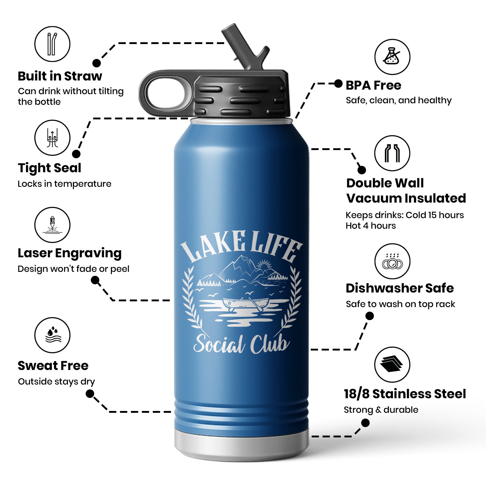 Lake Life Social Club Gathering By The Dock Water Bottle Mug