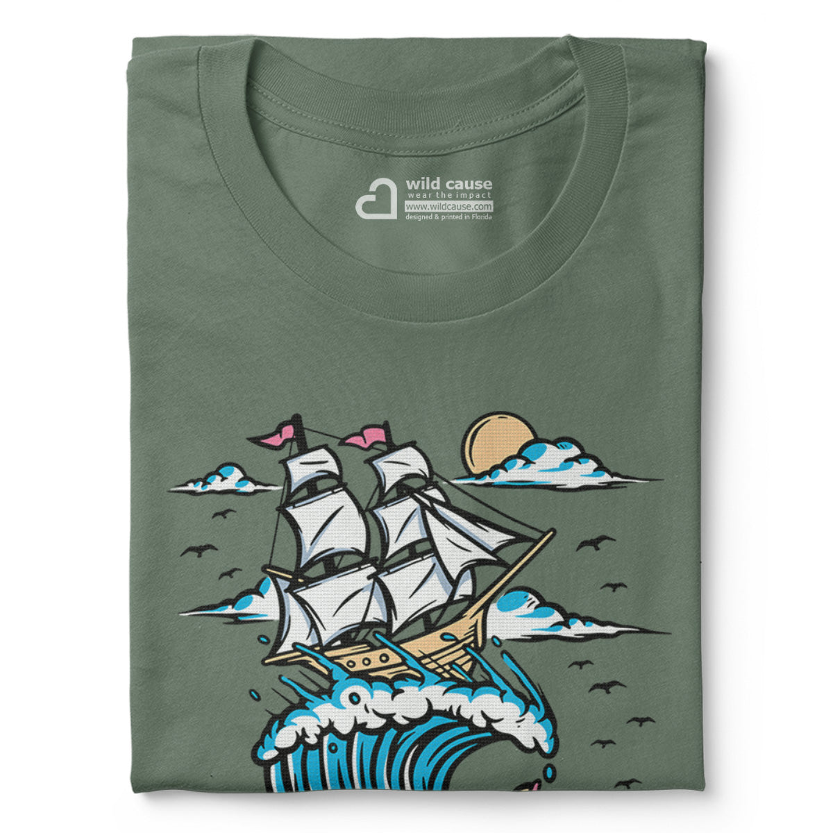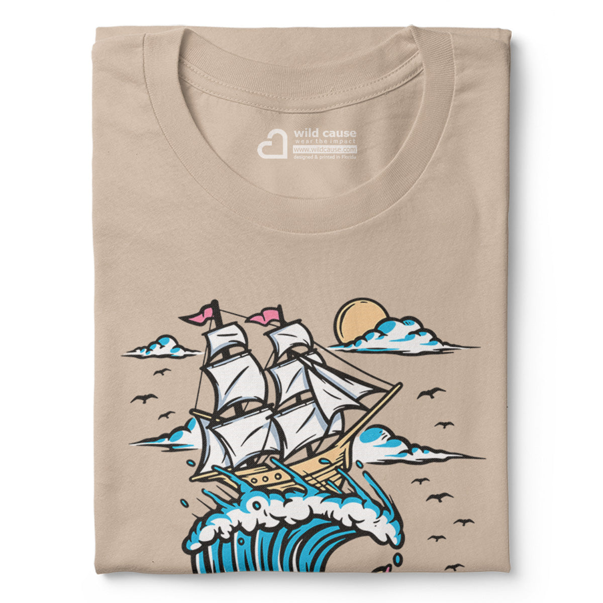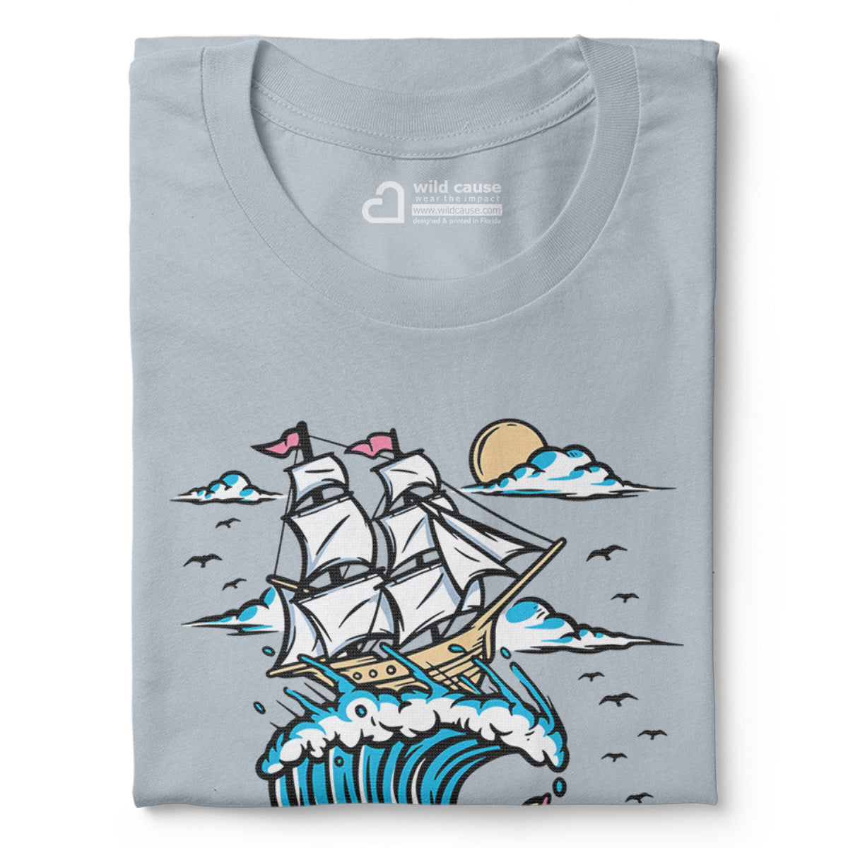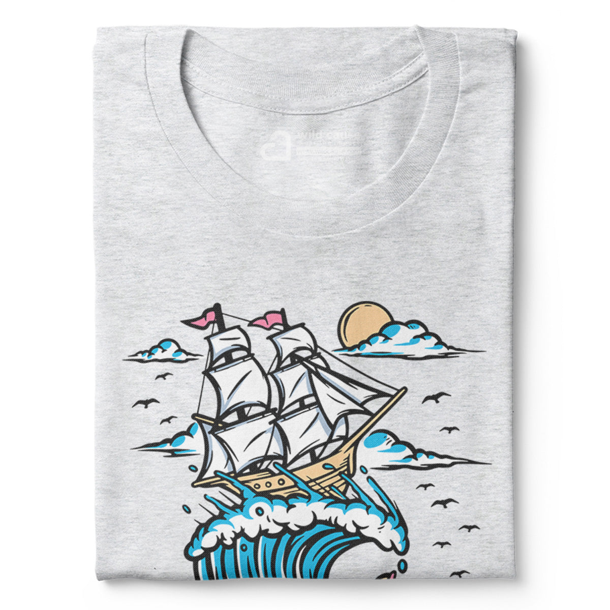 The Sailing ship rides ocean waves freely Adult Cotton Tee T-Shirt captures the adventure of ship sailing on waves. Made from soft, breathable fabric, it is perfect for breezy ocean sailing. This design showcases sailing through waves, letting the waves carry the ship effortlessly.