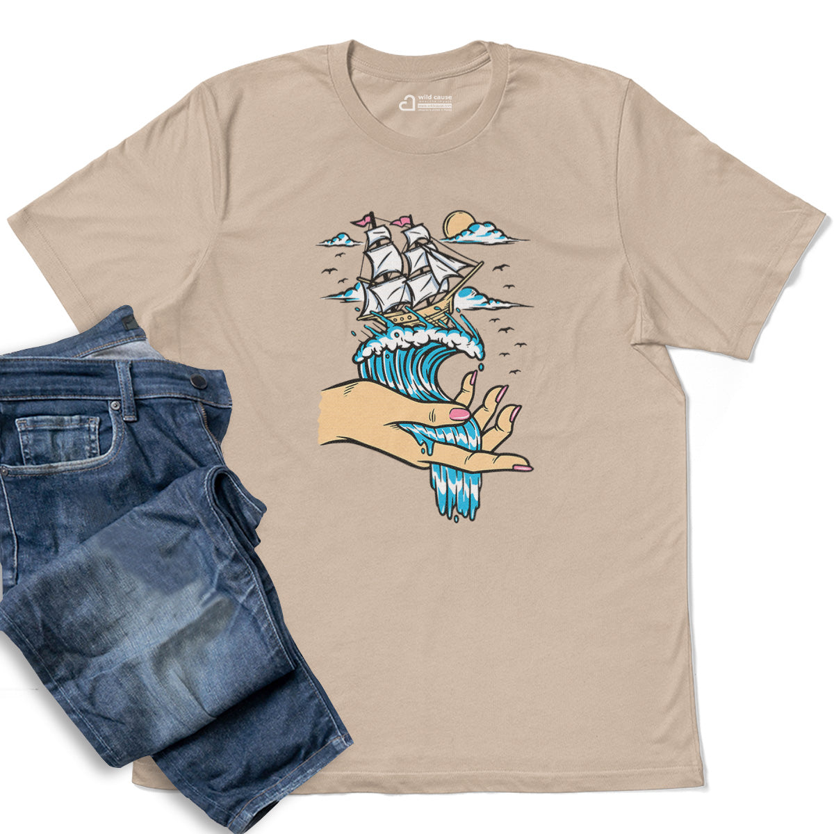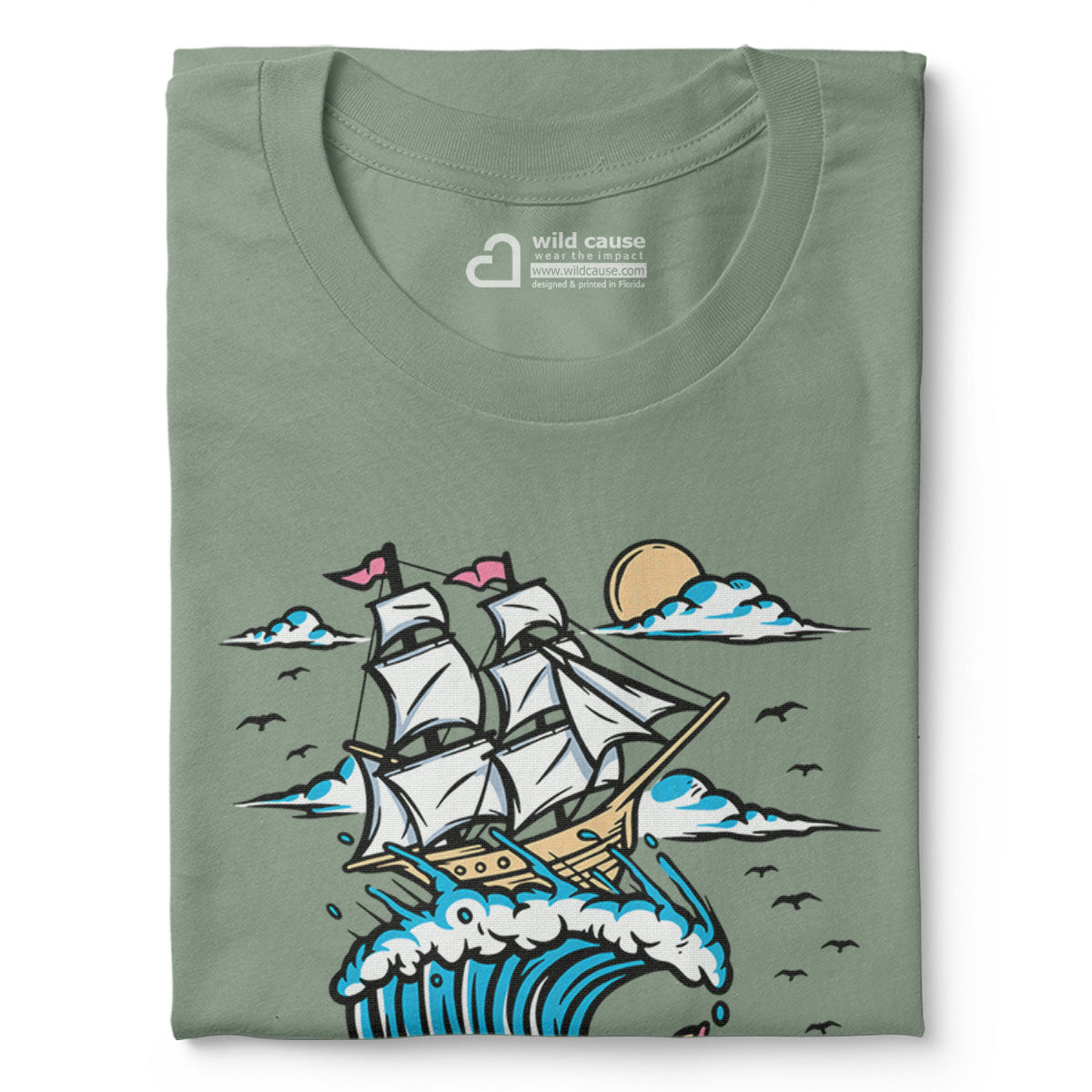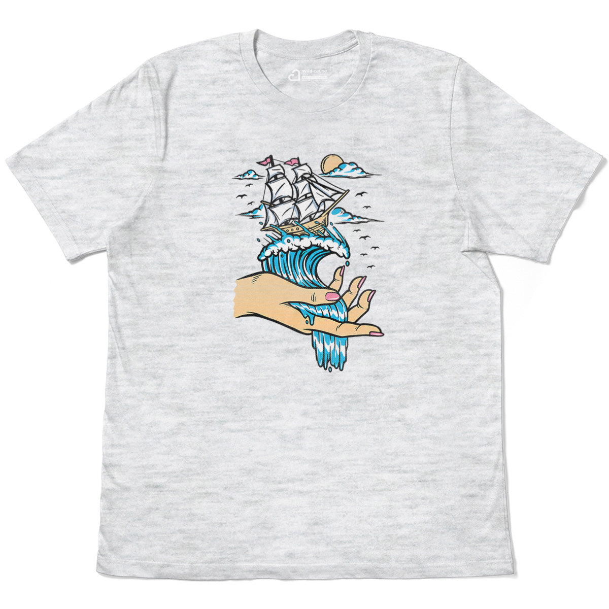 The Sailing ship rides ocean waves freely Adult Cotton Tee T-Shirt captures the adventure of ship sailing on waves. Made from soft, breathable fabric, it is perfect for breezy ocean sailing. This design showcases sailing through waves, letting the waves carry the ship effortlessly.
