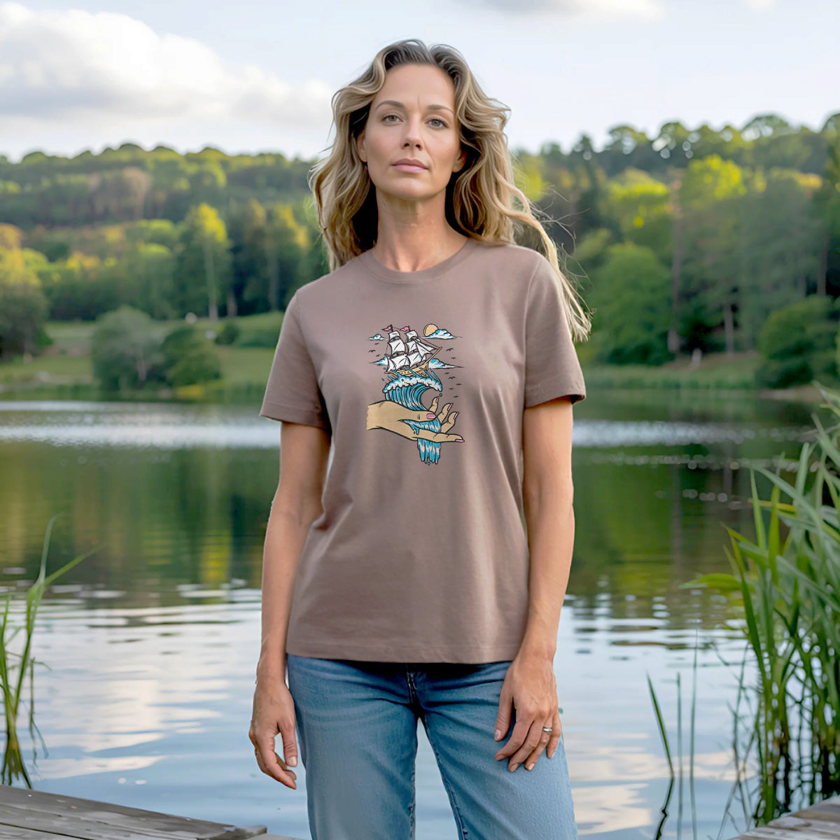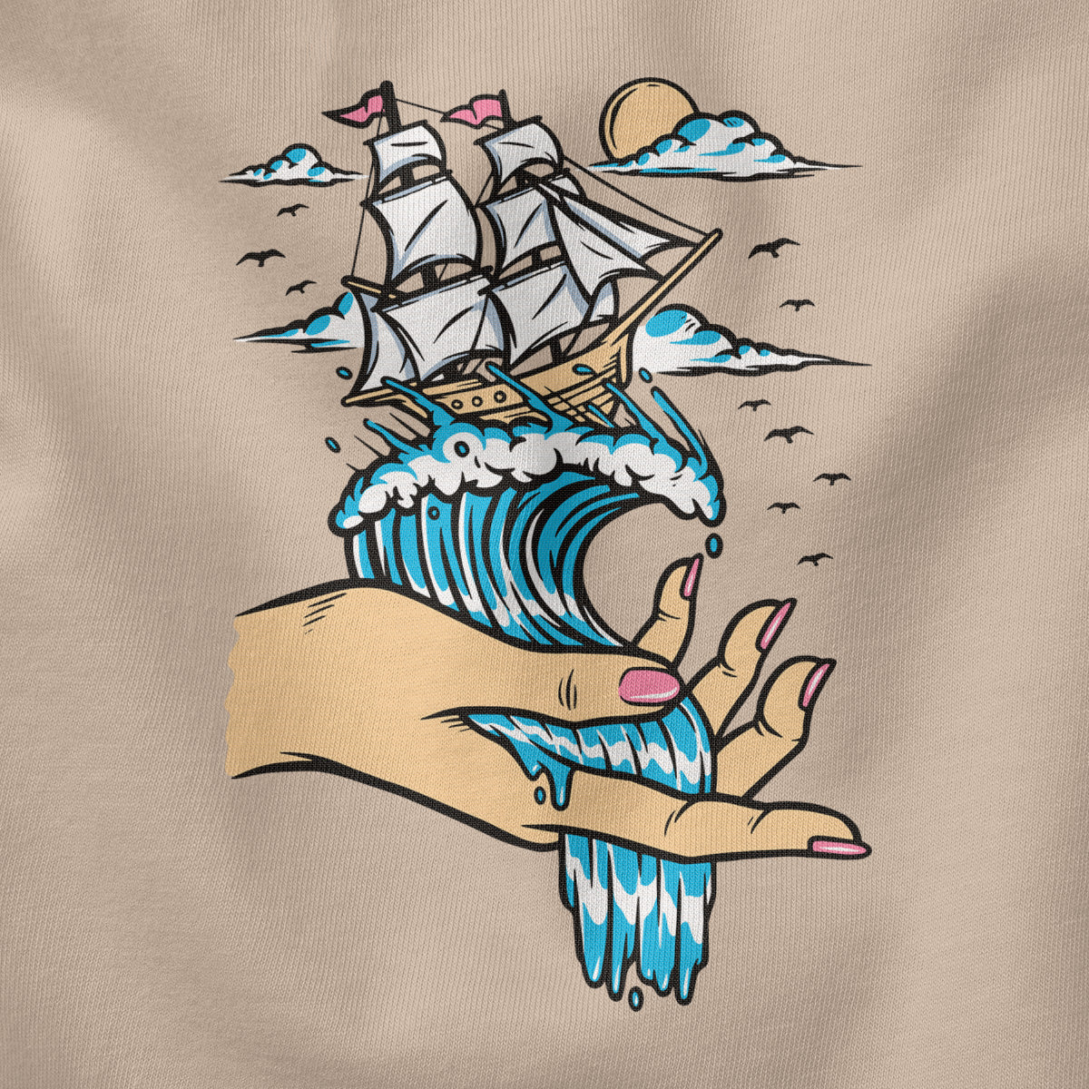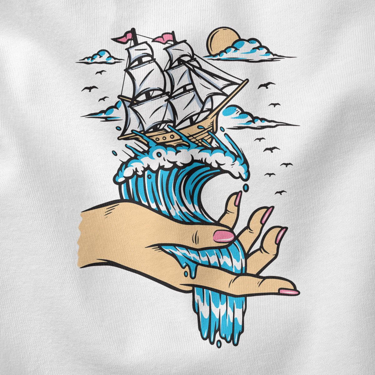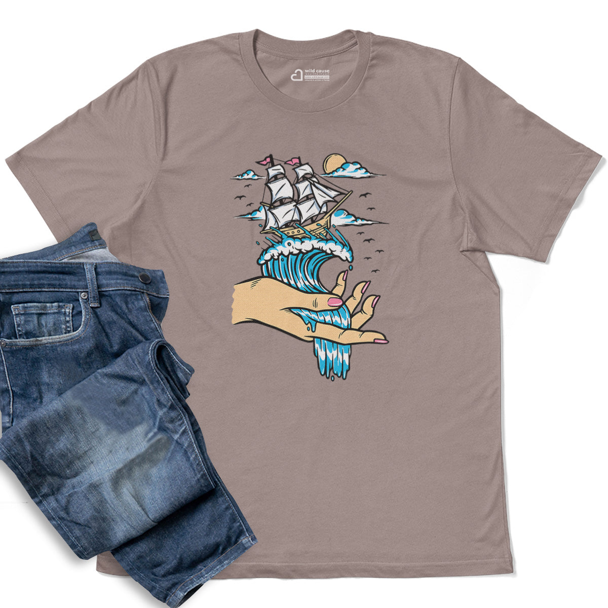 The Sailing ship rides ocean waves freely Adult Cotton Tee T-Shirt captures the adventure of ship sailing on waves. Made from soft, breathable fabric, it is perfect for breezy ocean sailing. This design showcases sailing through waves, letting the waves carry the ship effortlessly.
