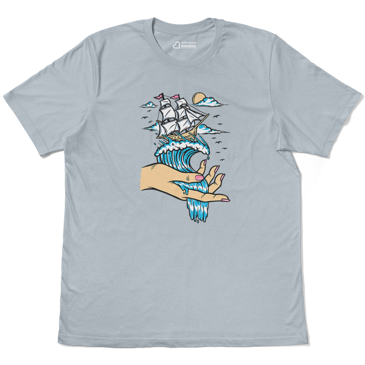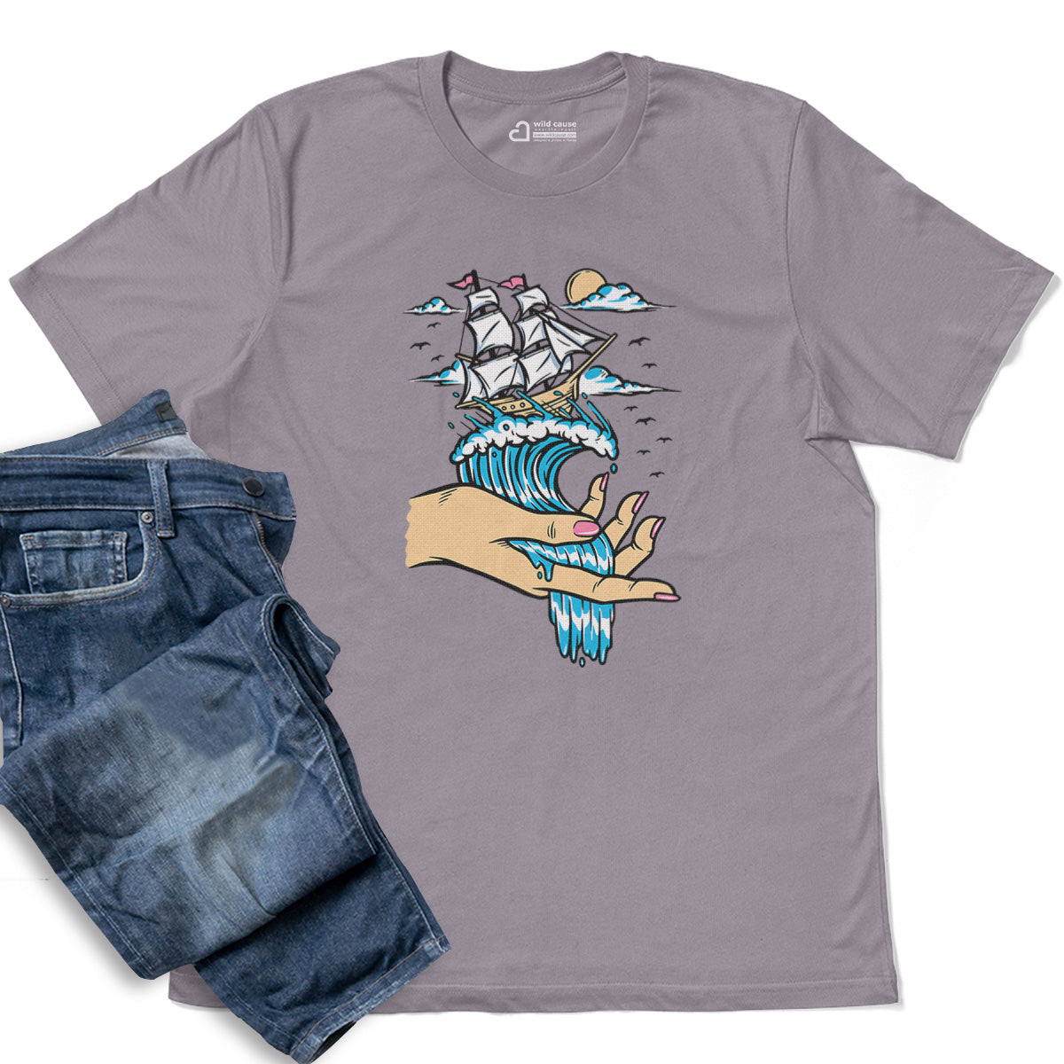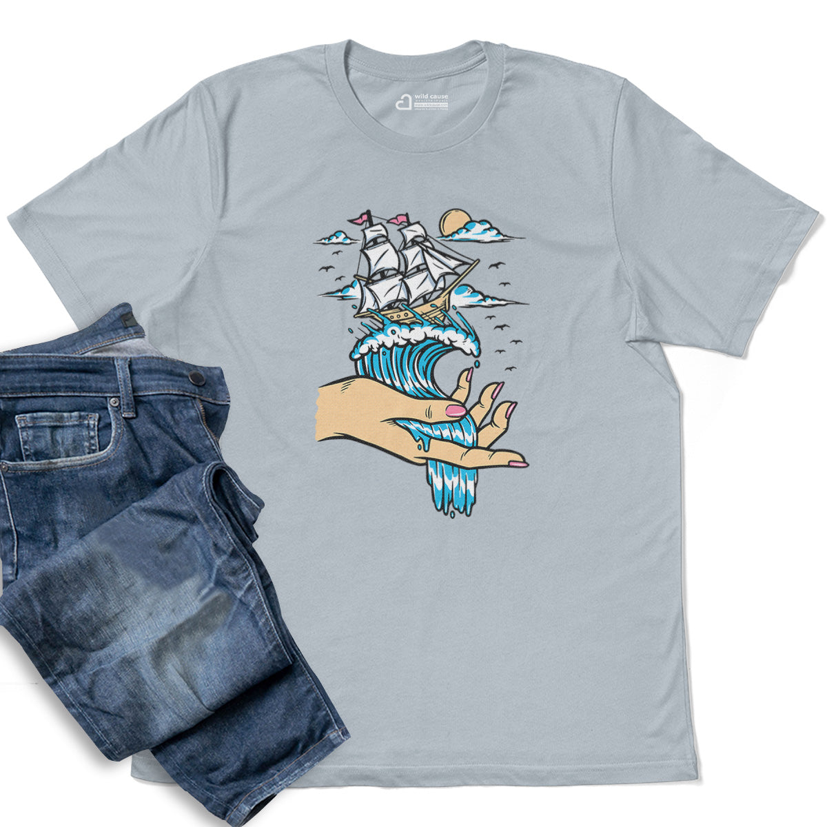Ocean Magic Sailing Ship Ride In Water Waves Adult Cotton Tee T-Shirt
