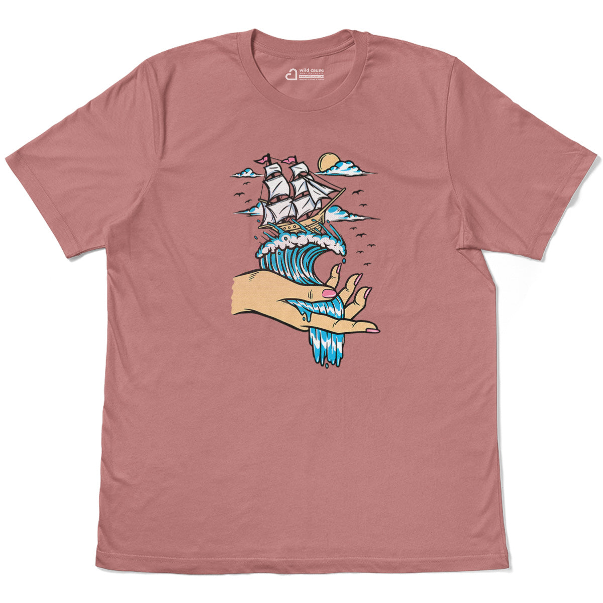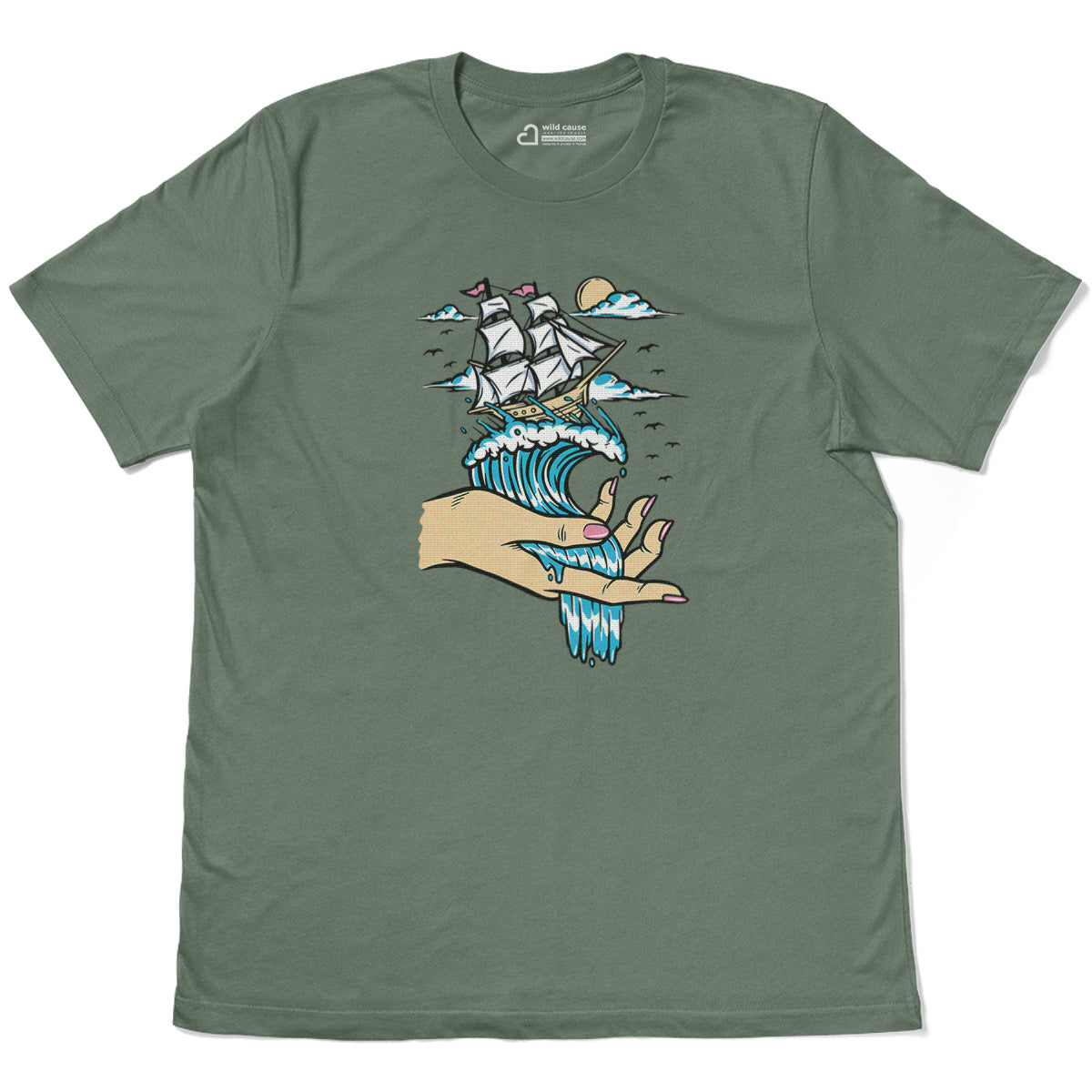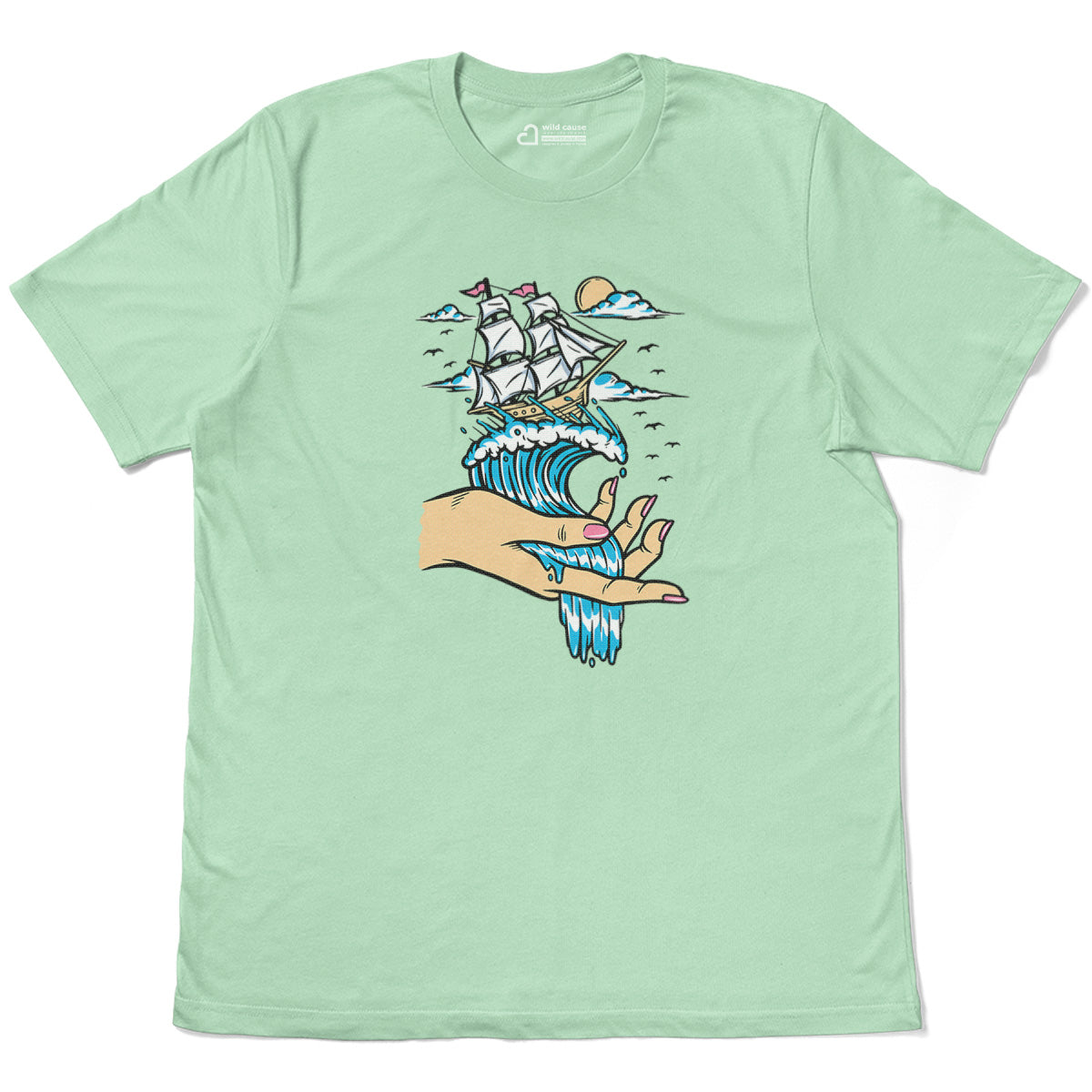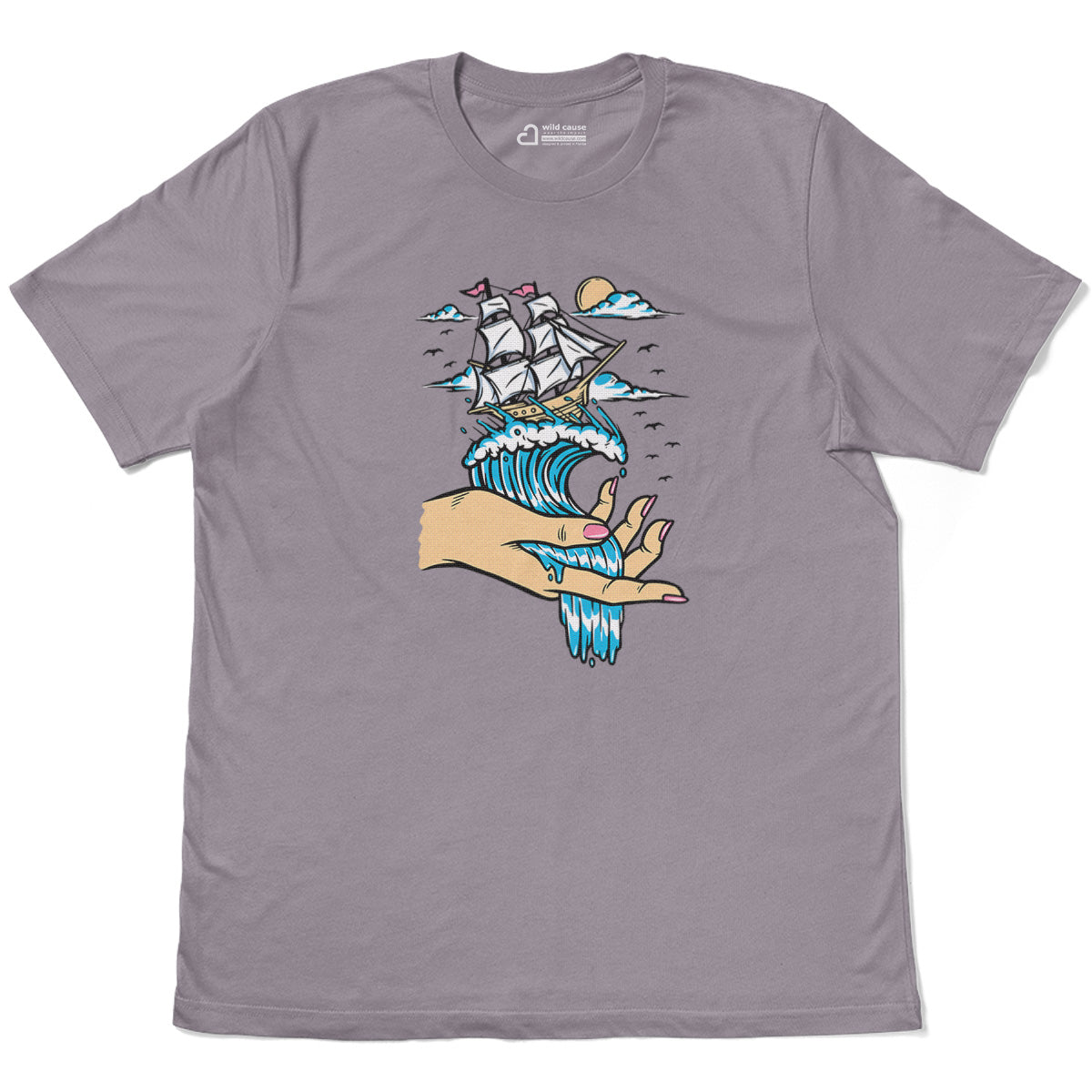 Ocean Magic Sailing Ship Ride In Water Waves Adult Cotton Tee T-Shirt