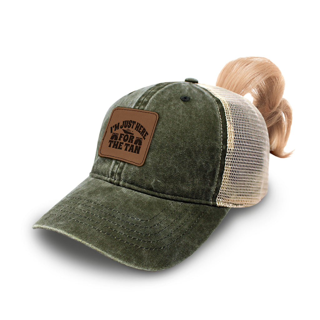 Relaxing Beachside I'm Here Just For Tan Ponytail Cap Hat