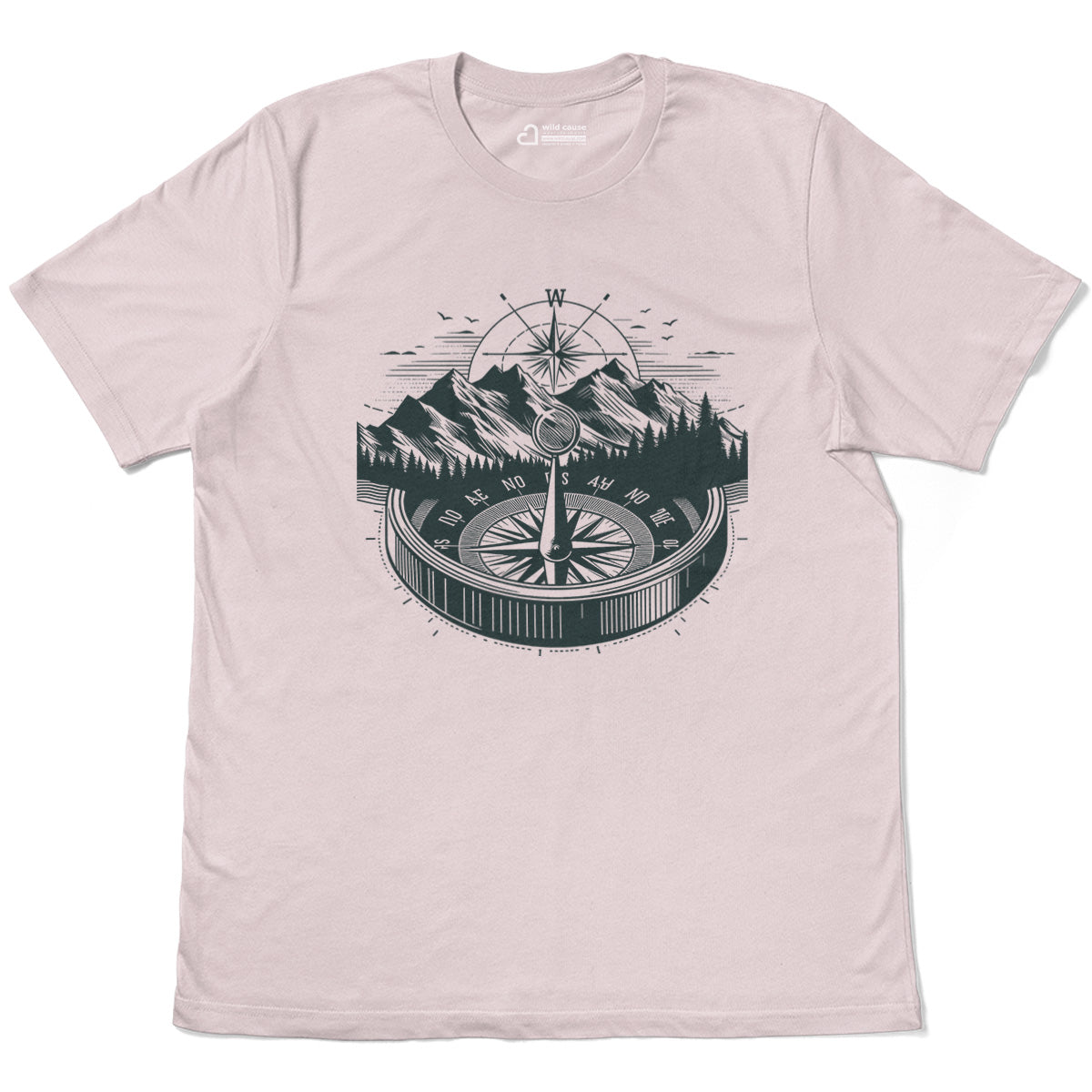 Compass and Mountains Outdoor Adult Cotton Tee T-Shirt