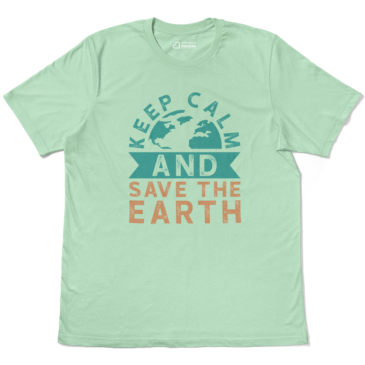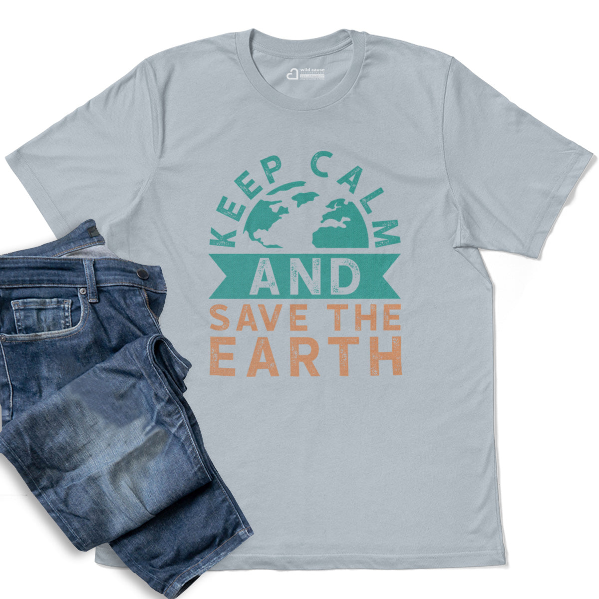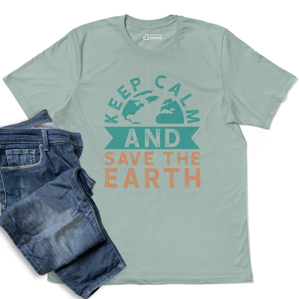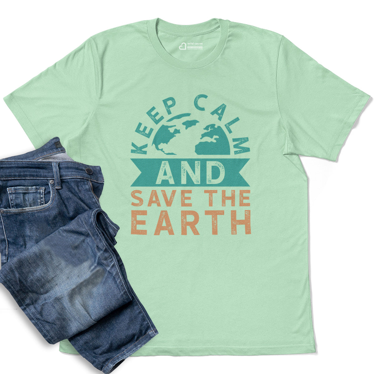 Keep Calm Save Earth Conservation Theme Adult Cotton Tee T-Shirt
