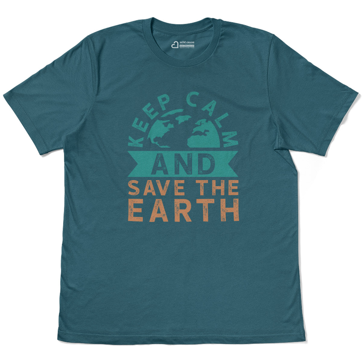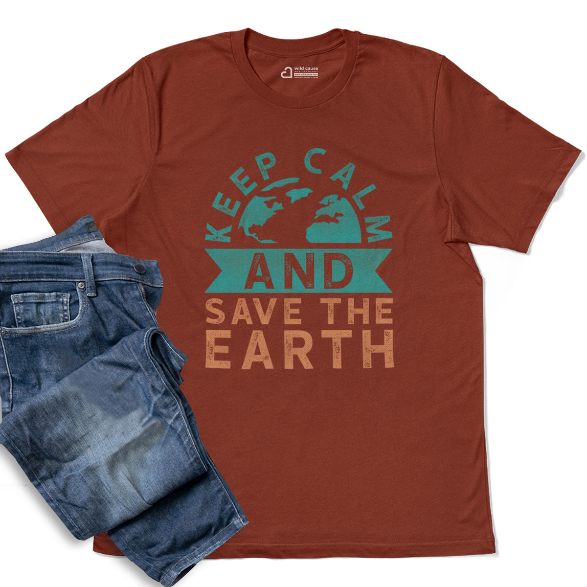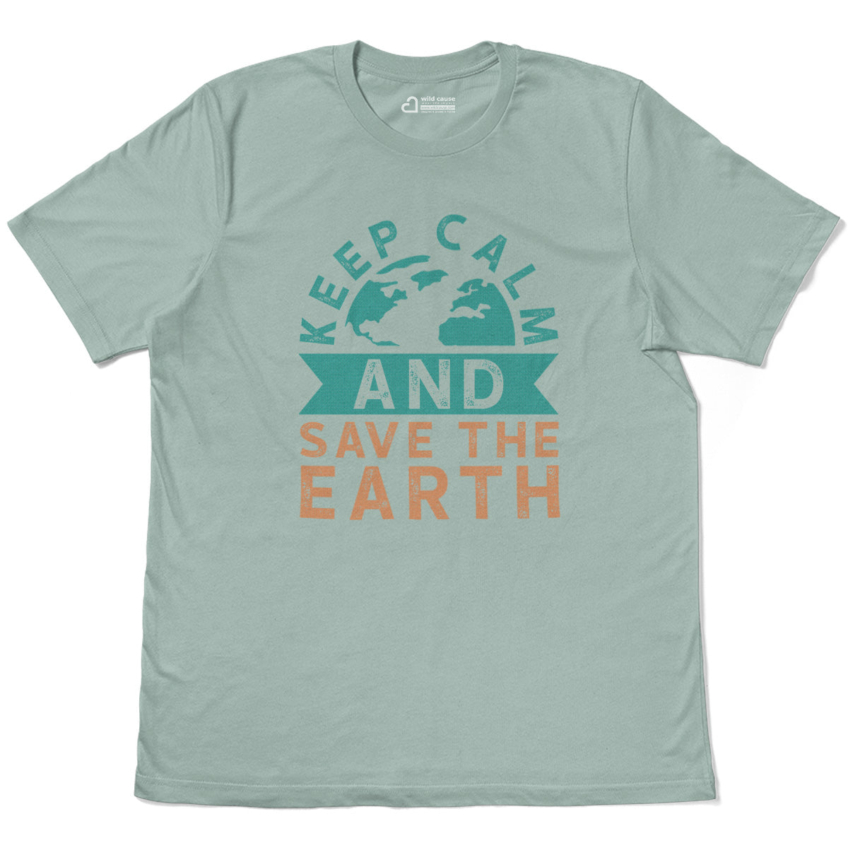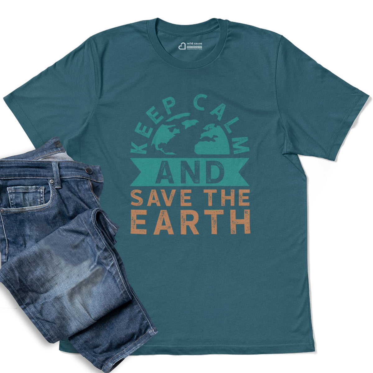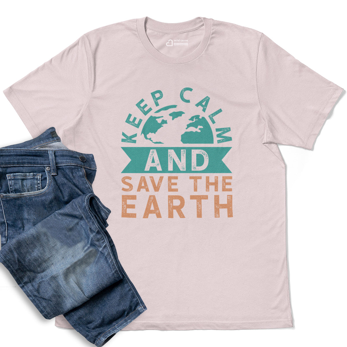 Keep Calm Save Earth Conservation Theme Adult Cotton Tee T-Shirt