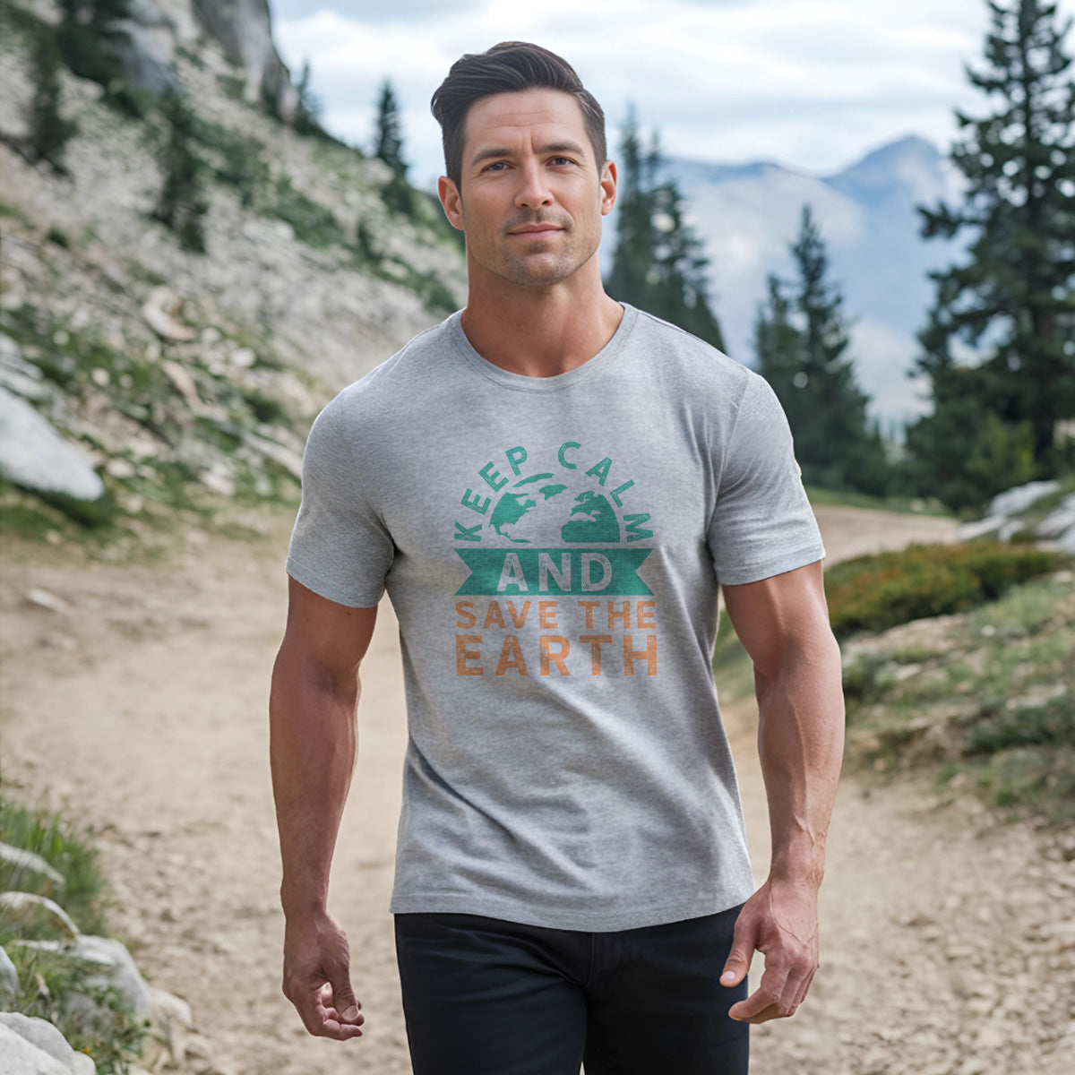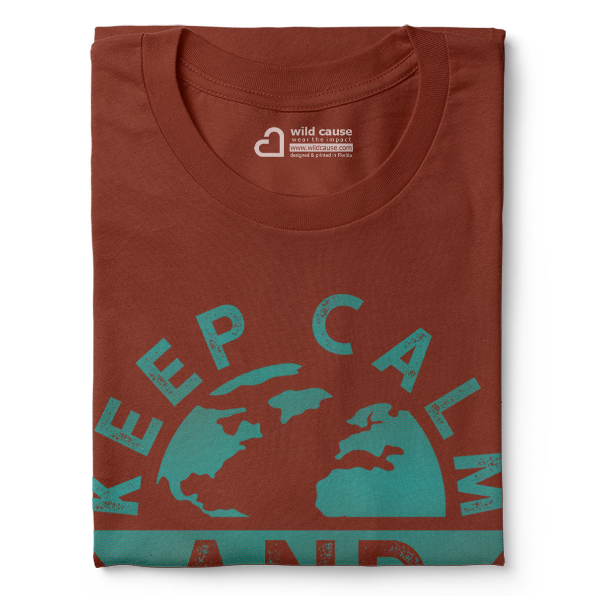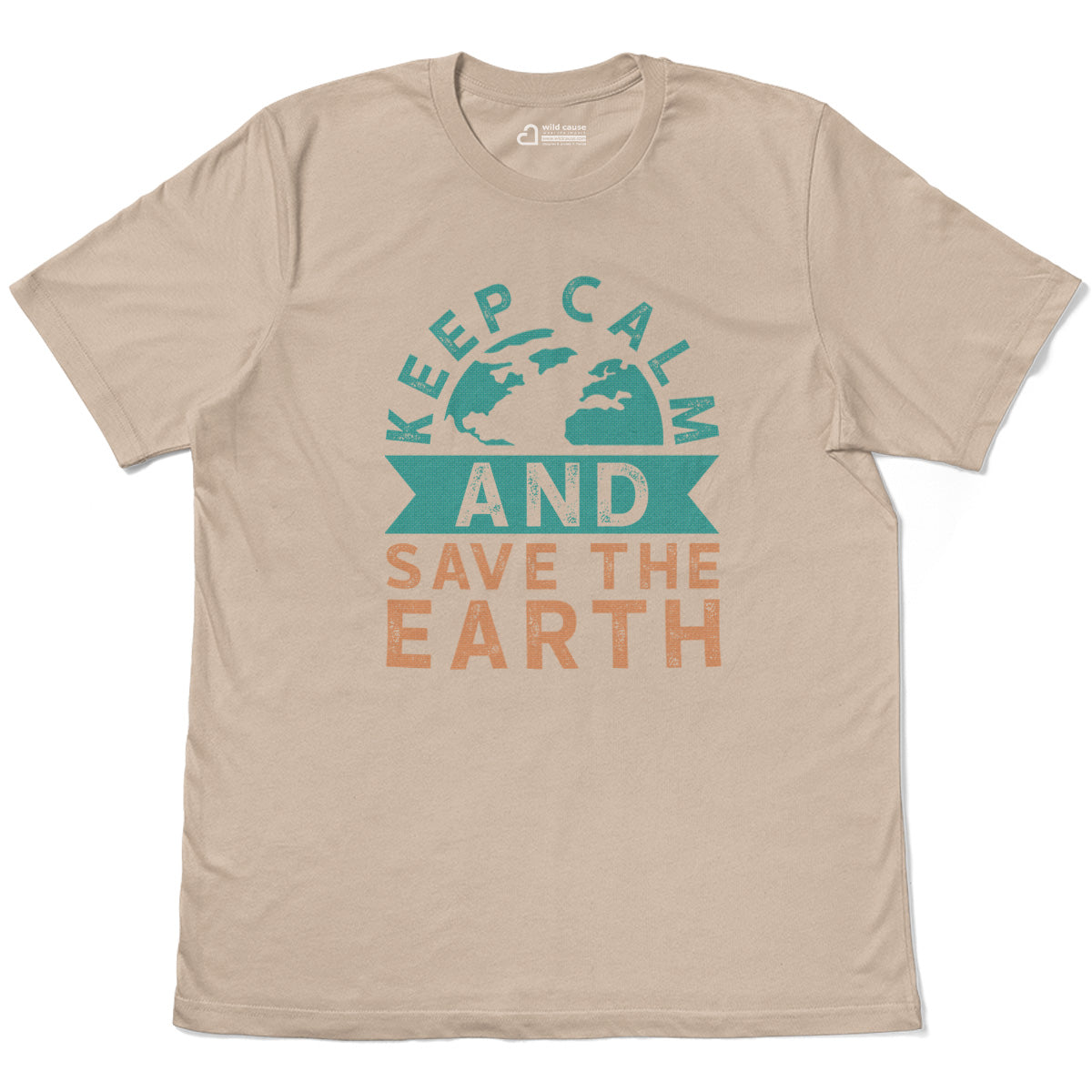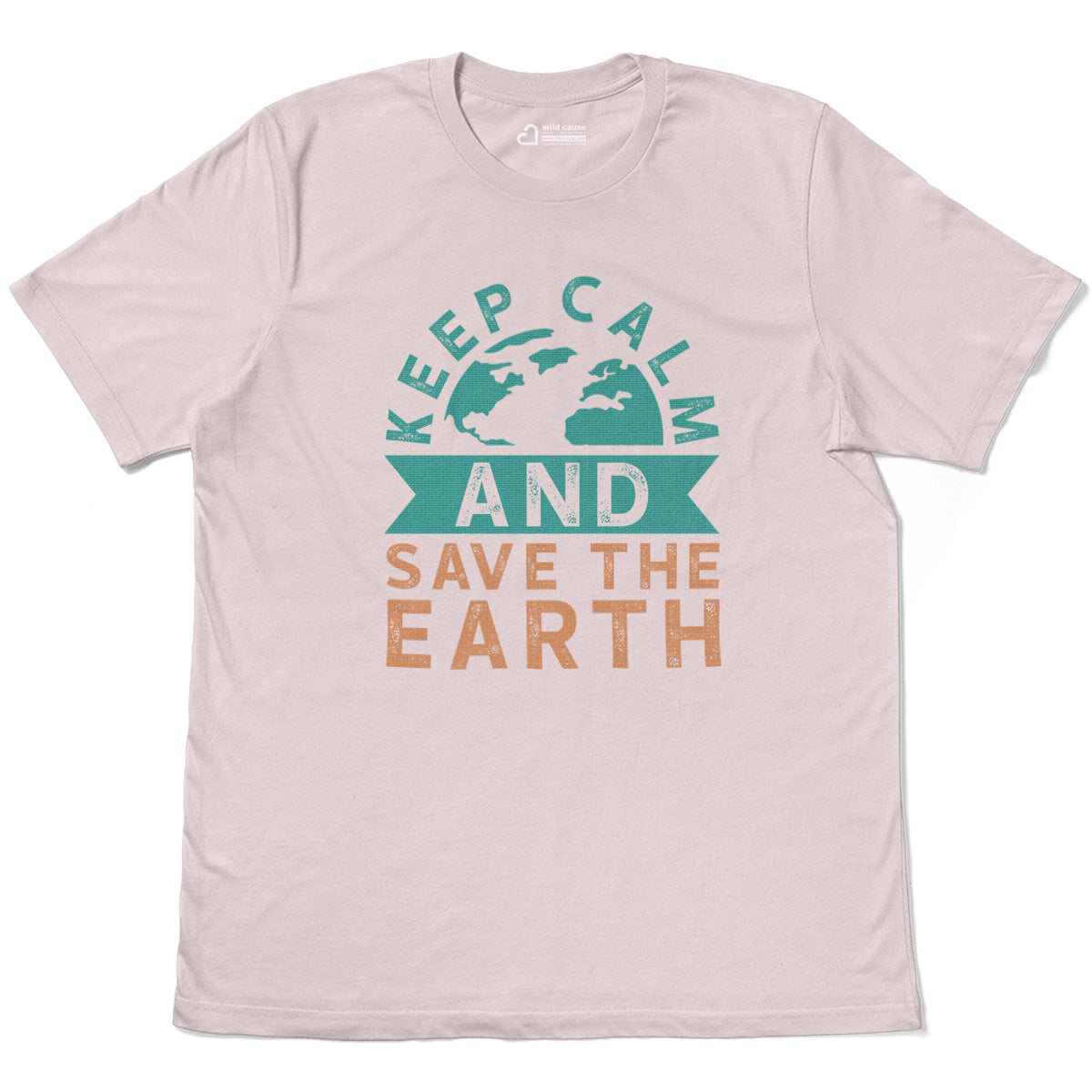 Keep Calm Save Earth Conservation Theme Adult Cotton Tee T-Shirt