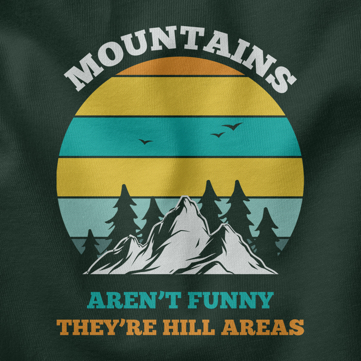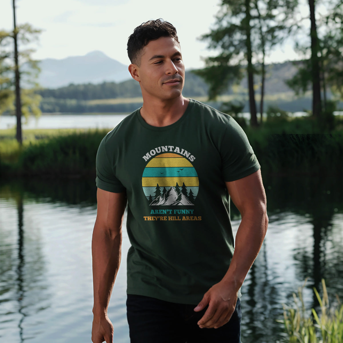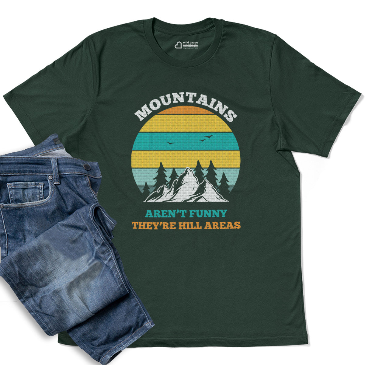 The Mountains, not just funny hill areas Adult Cotton Tee T-Shirt is a playful take on the peaks are no laughing matter concept. Made from high-quality cotton, this tee highlights the fact that mountains stand tall and aren't just jokes.