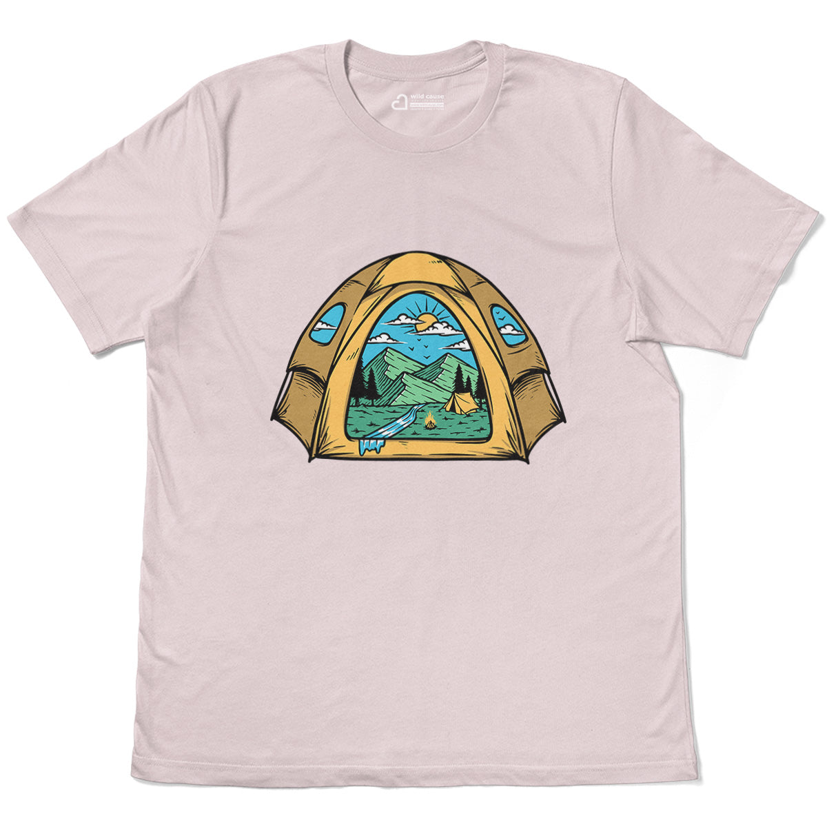 Tent View Mountain Camping Adult Cotton Tee T-Shirt