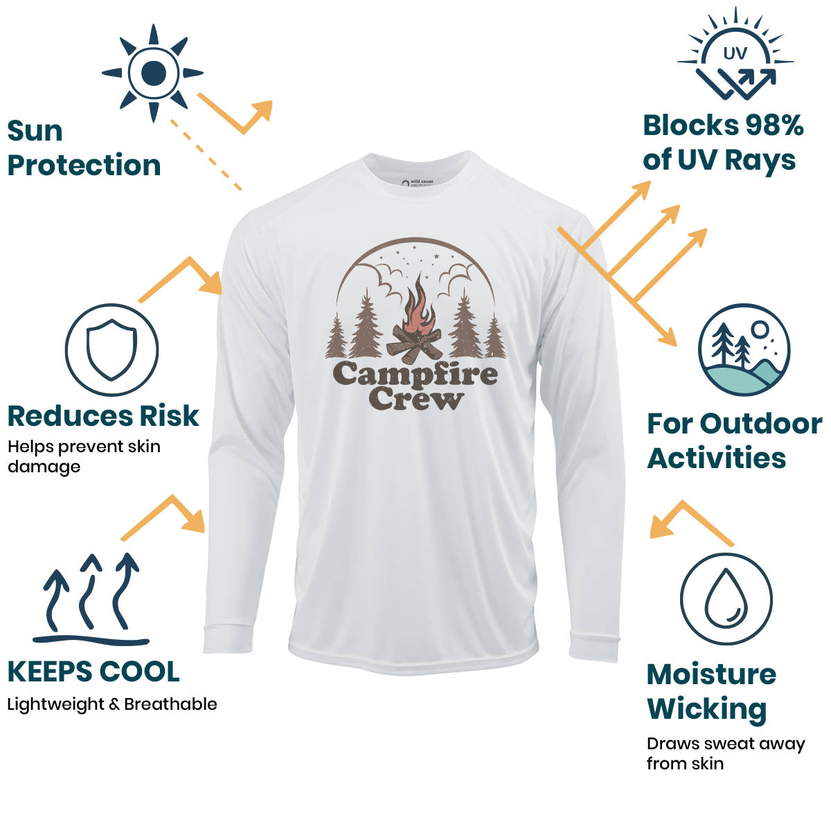 Stay protected from the sun in style with the Campfire Crew Sun Protection UV Performance Shirt UPF 50+. Whether you're out camping or enjoying bonfire nights, this shirt is perfect for fireside gatherings and fire under the stars.