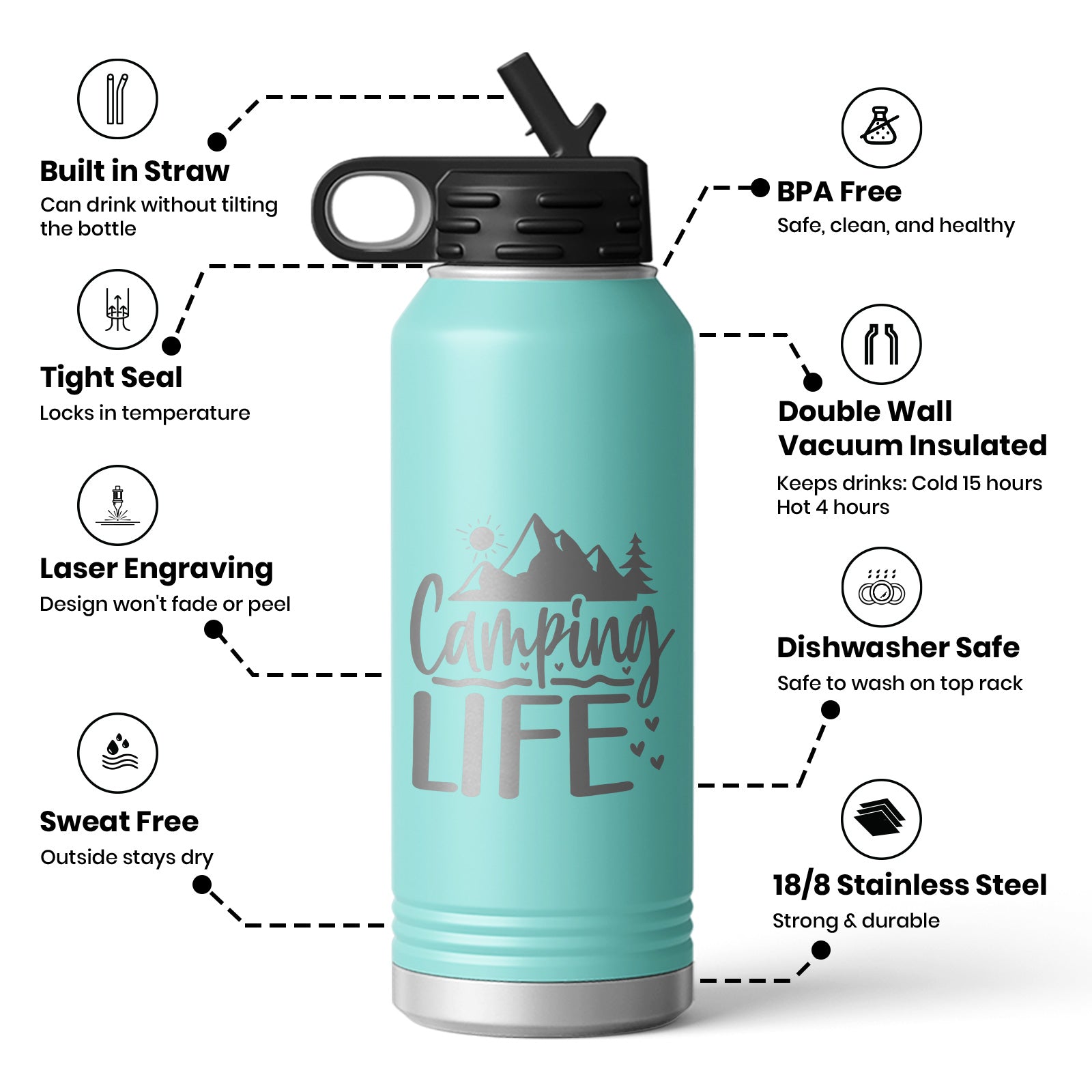 Camping Life Adventure Trip Water Bottle Mug